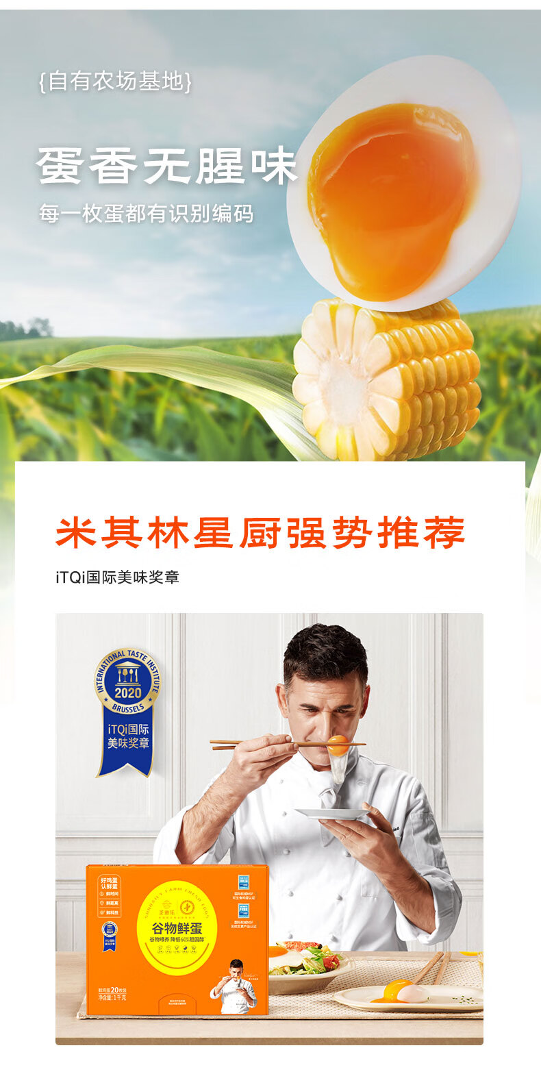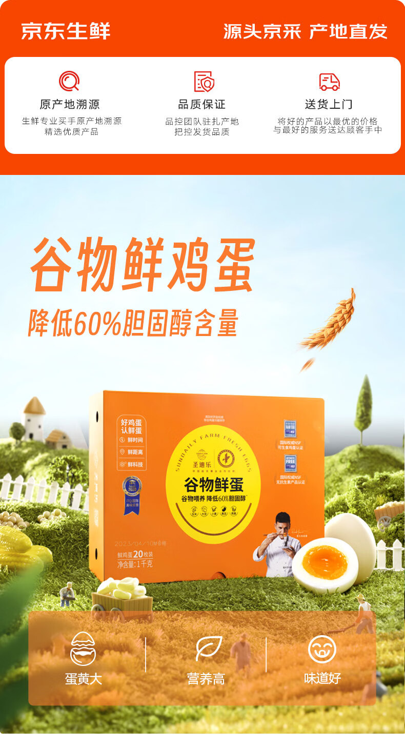 圣迪乐村 减胆固醇鲜鸡蛋20枚净重2斤礼盒装 无抗生素谷物喂养源头直发