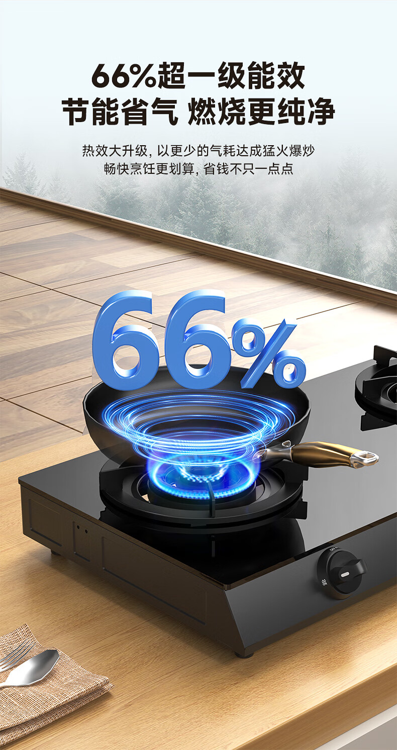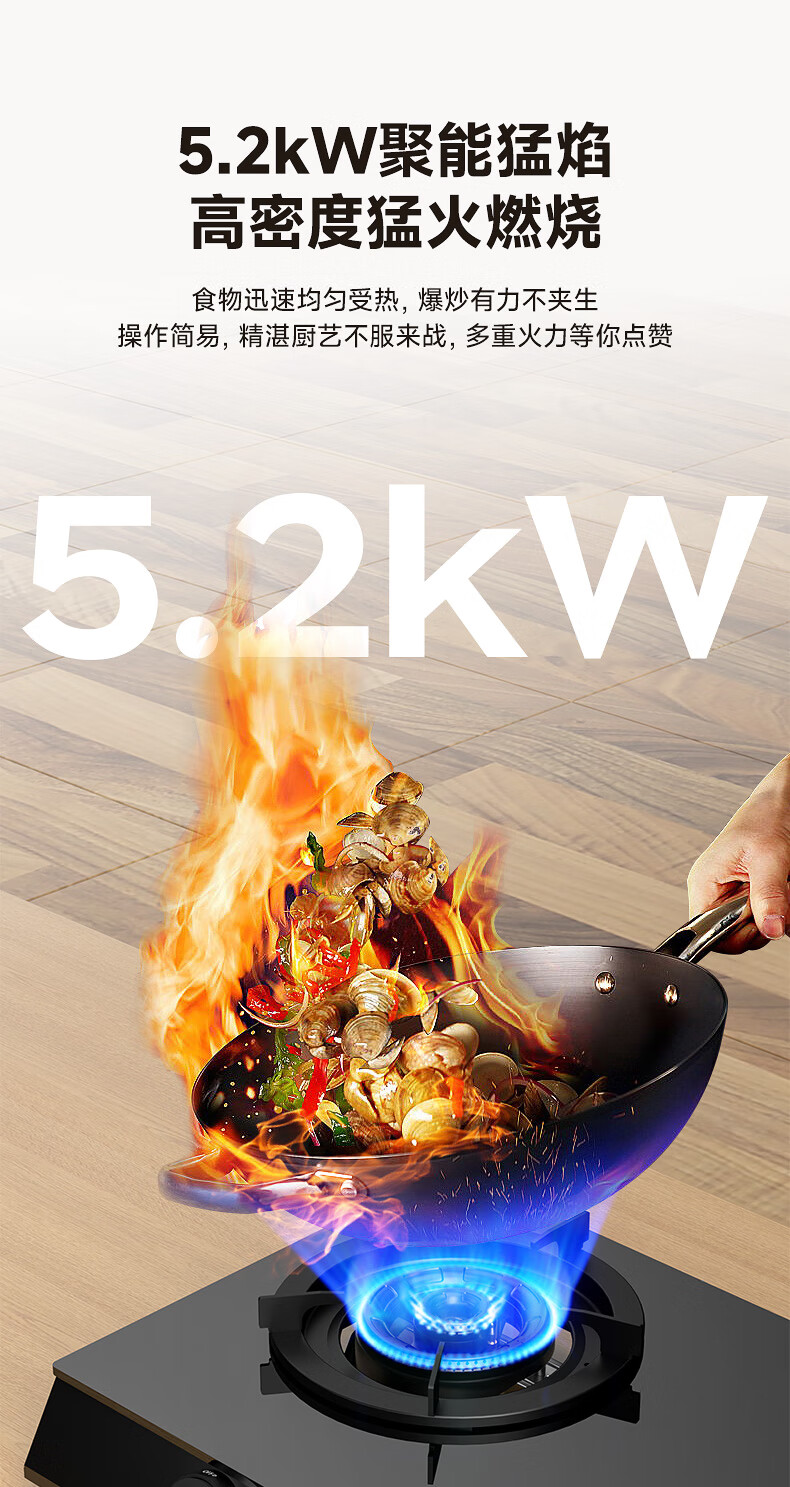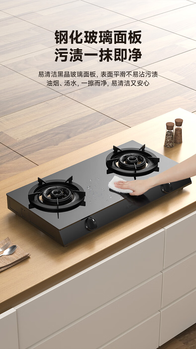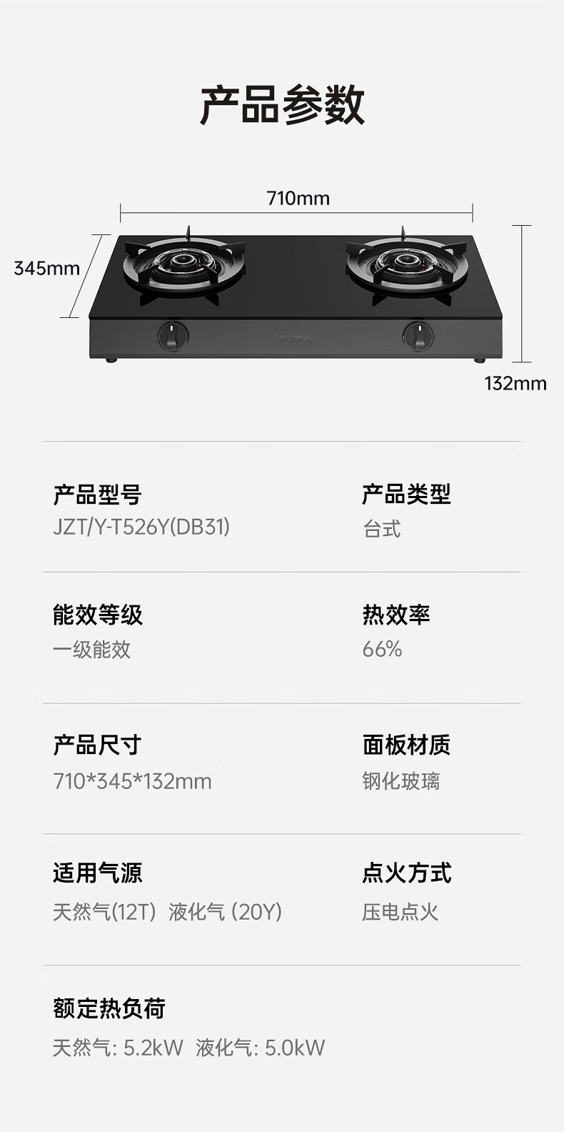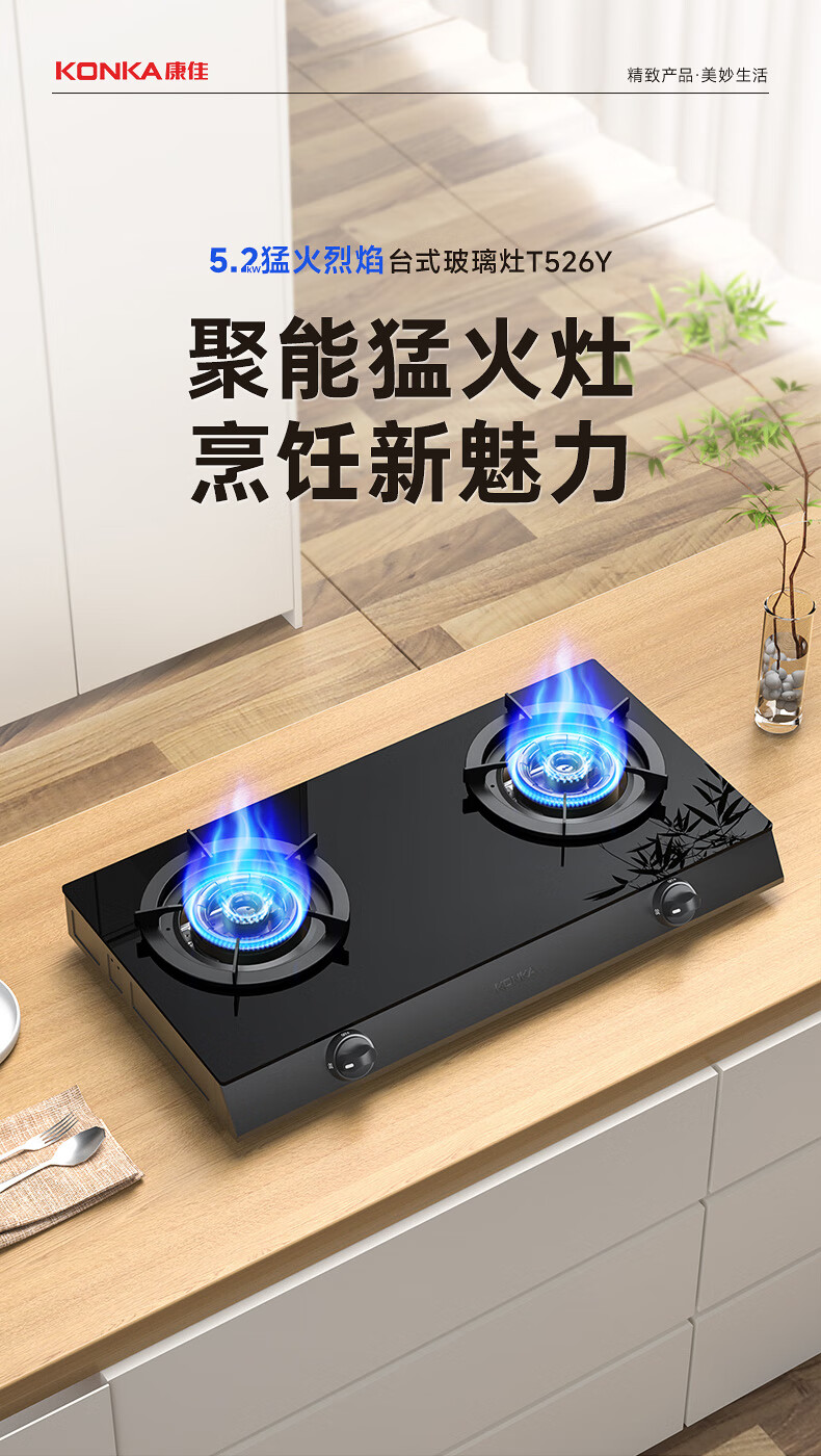 康佳(KONKA)燃气灶天然气双灶家用 5.2KW大火力煤气灶双灶 超一级能效66%热效率 台式黑晶玻璃猛火 T526Y 【升级防爆玻璃面板】 天然气5.2kW