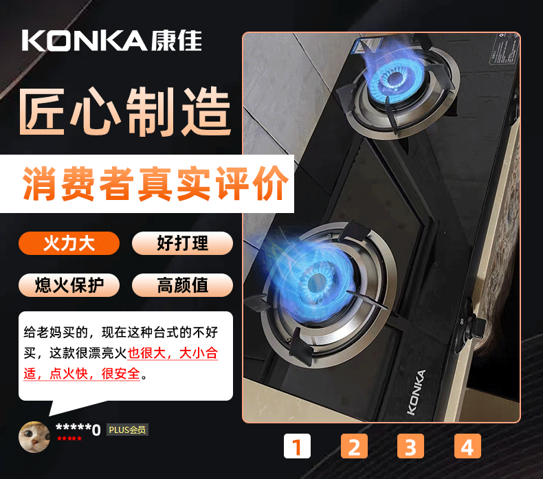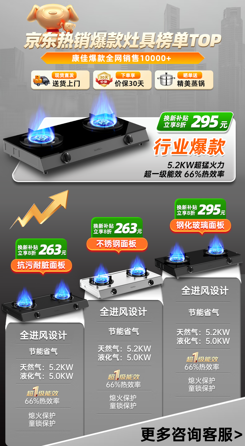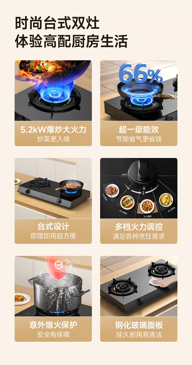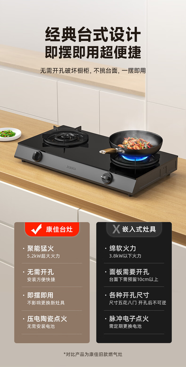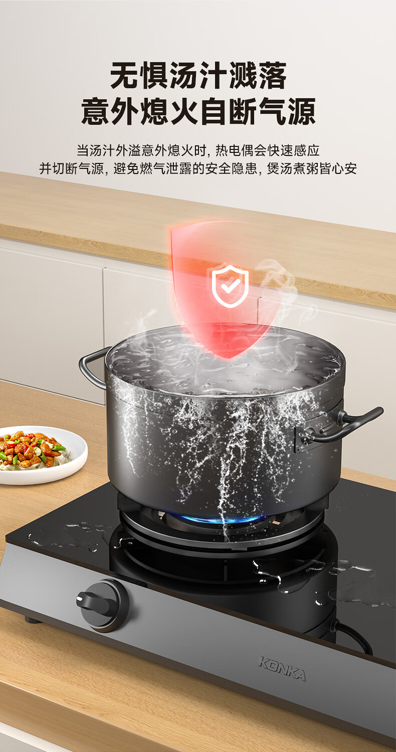 康佳(KONKA)燃气灶天然气双灶家用 5.2KW大火力煤气灶双灶 超一级能效66%热效率 台式黑晶玻璃猛火 T526Y 【升级防爆玻璃面板】 天然气5.2kW