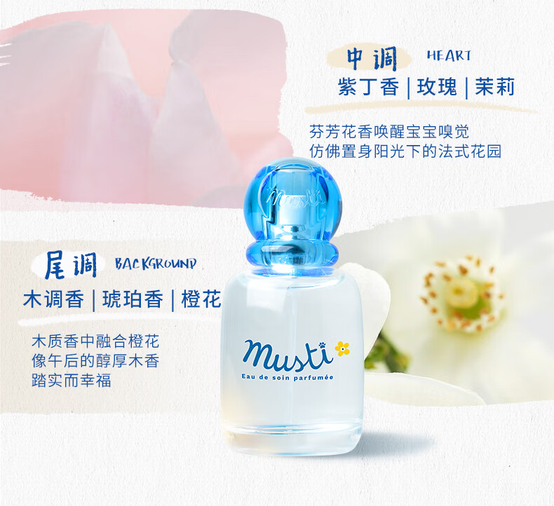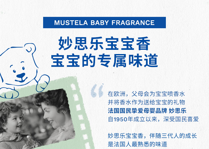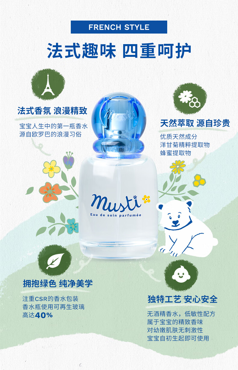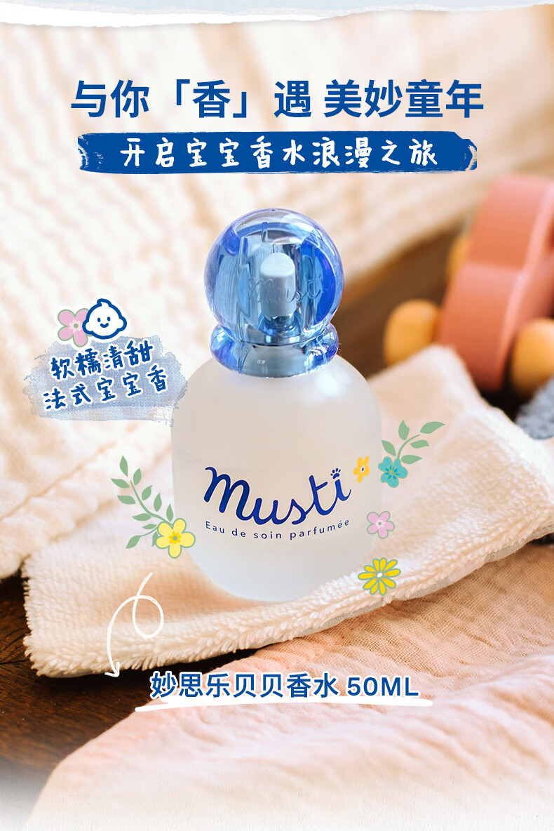 妙思乐(MUSTELA)法国进口 贝贝儿童香水50ml低敏无酒精 法式宝宝香