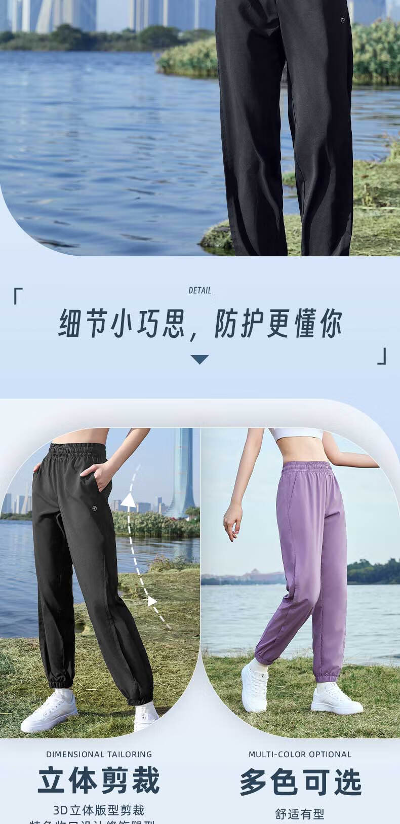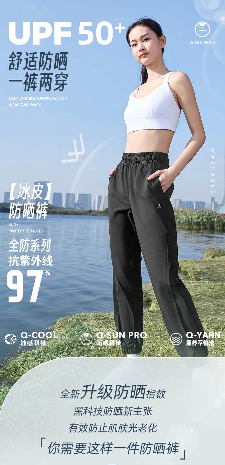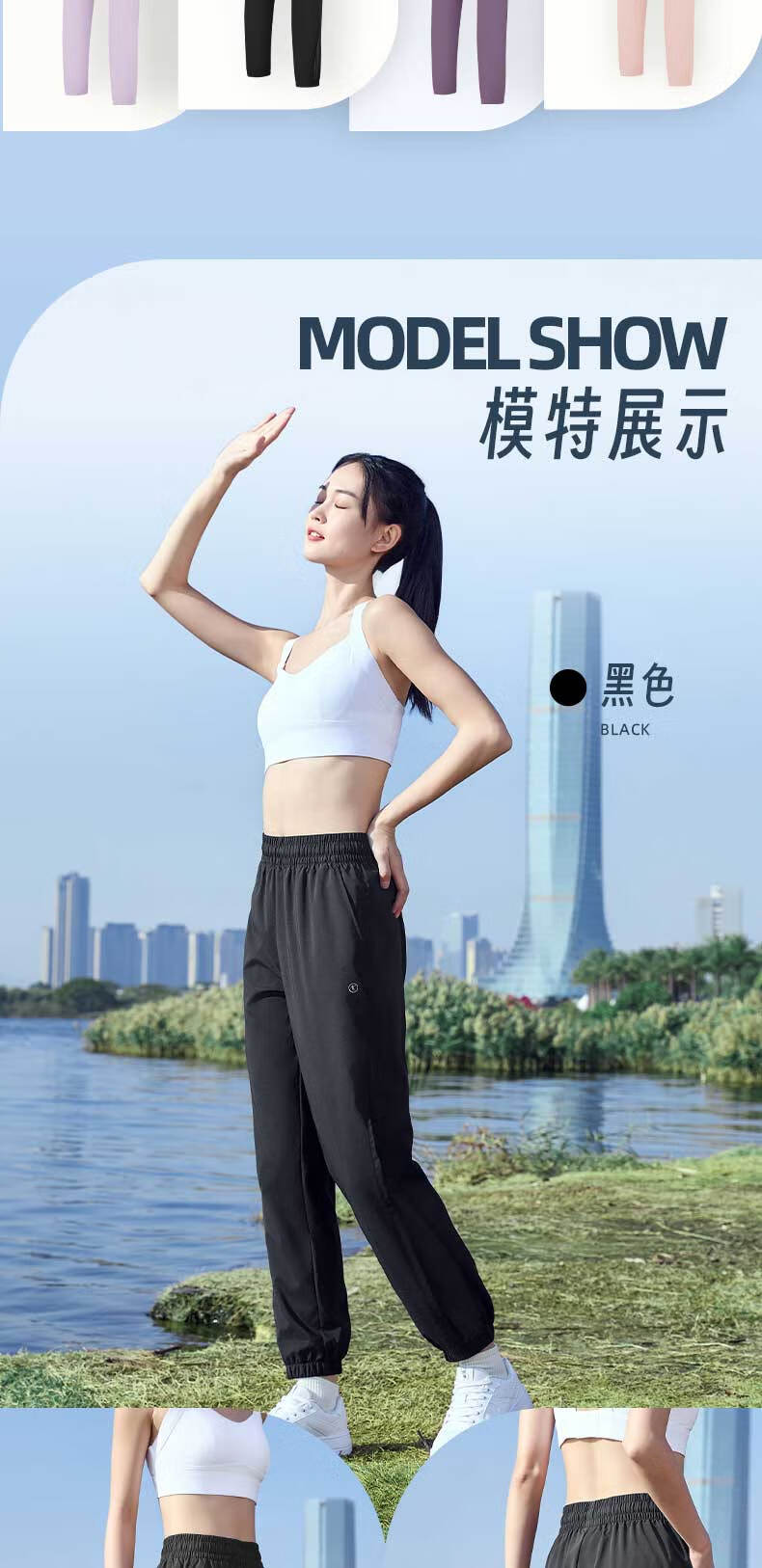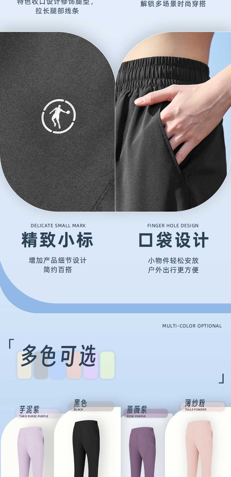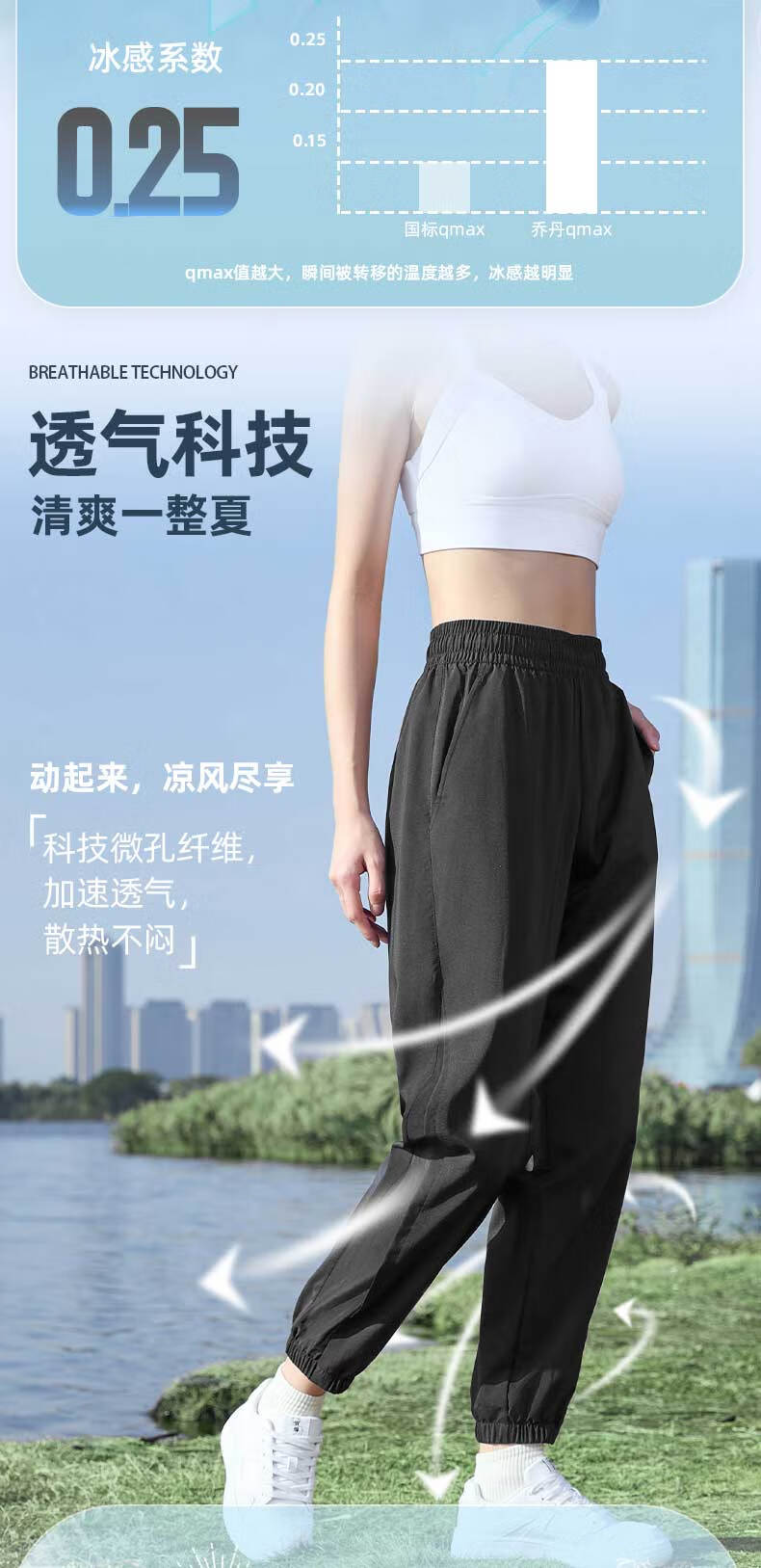 乔丹运动裤女裤休闲裤子女夏季透气速干冰丝防晒束脚跑步长裤 芋泥紫 2XL 180