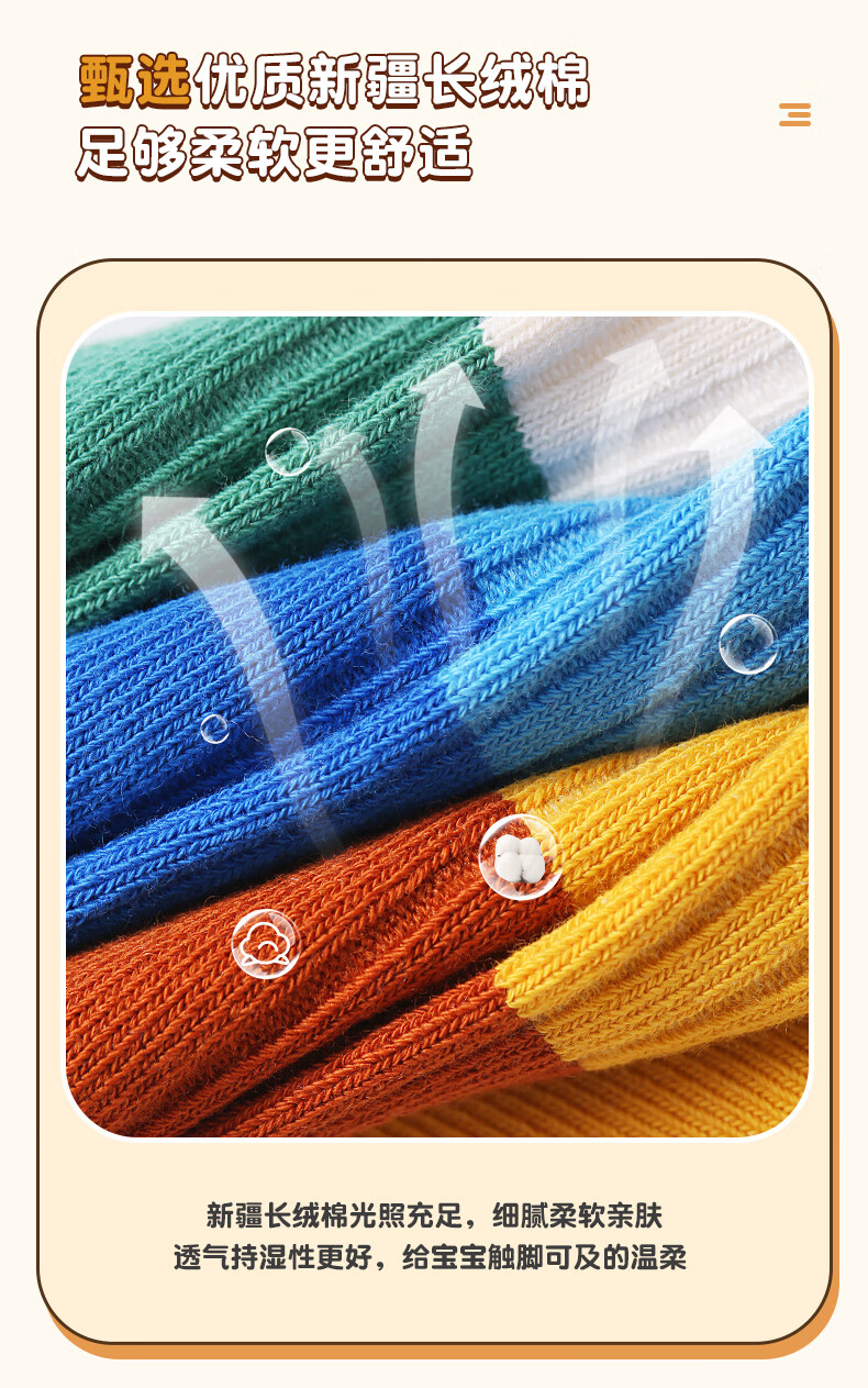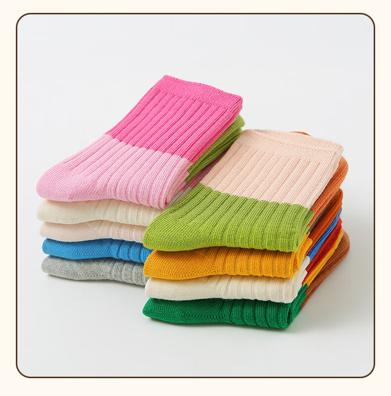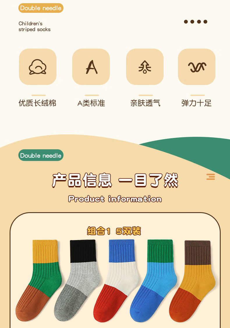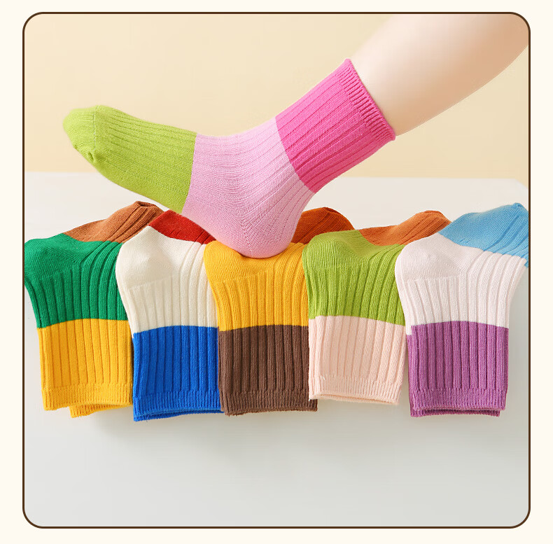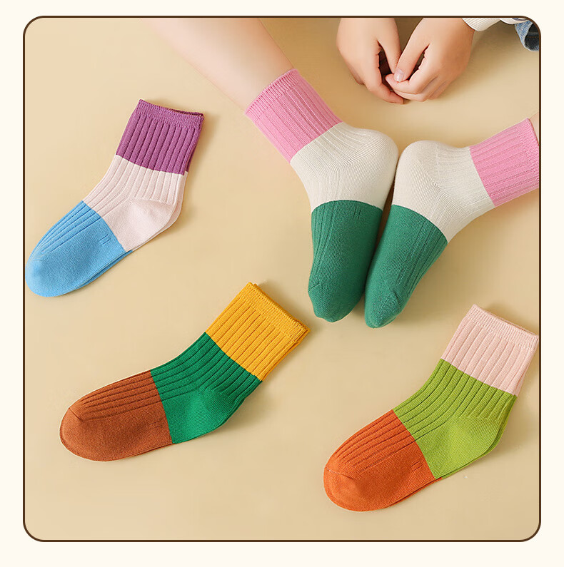 六指鼠双针儿童袜子春秋冬季男童女童宝宝精梳棉小孩中大童时尚条纹中筒 92A(双针三原色)男 5双 均码 建议4-6周岁(袜标6-9岁)