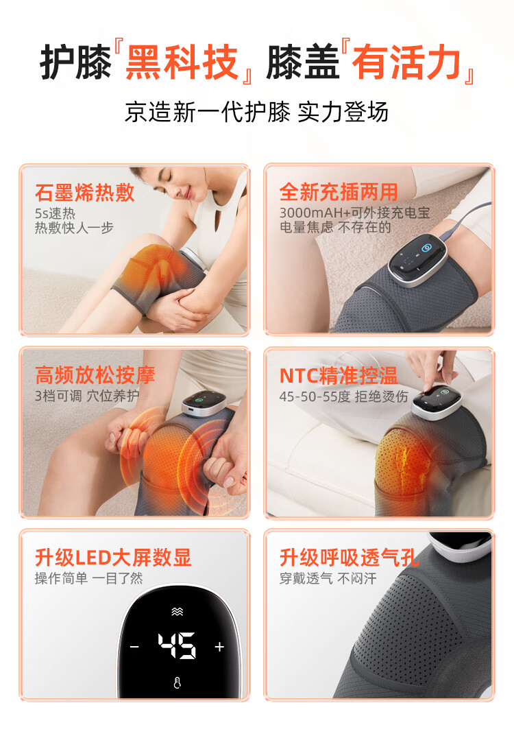 京东京造 膝盖热敷理疗仪护膝按摩器电加热保暖关节炎老寒腿爸妈生日礼物
