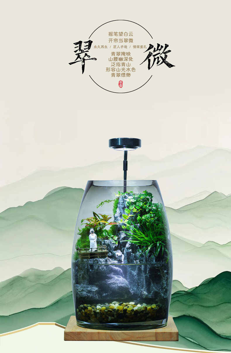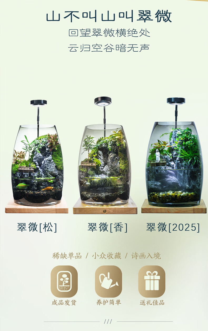 丘辰苔藓微景观养鱼生态瓶diy办公室内桌面绿植摆件花卉盆栽生日礼物 翠微2025款-店长推荐