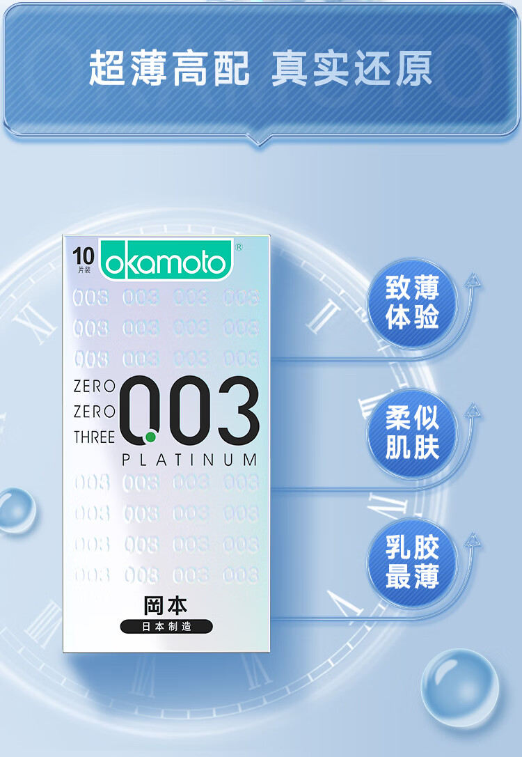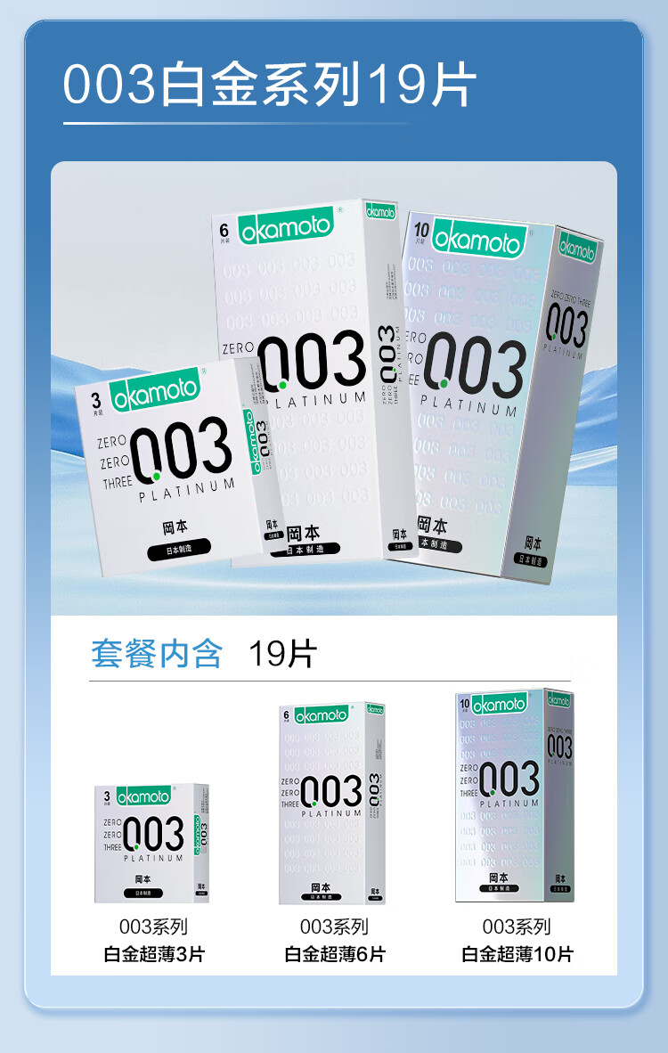 冈本(OKAMOTO)避孕套 003超薄系列男女用进口安全套套成人计生用品 【经典热销】蓝金超润滑10片