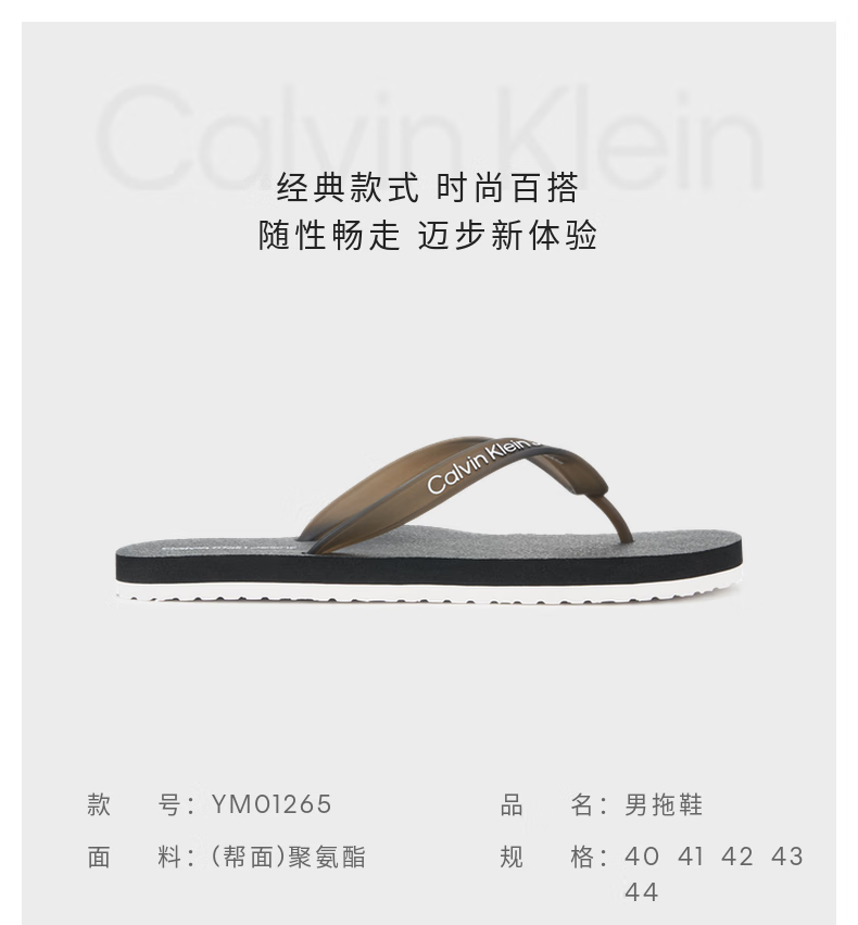 Calvin KleinJeans【圣诞礼物】25男休闲ck字母海边沙滩泳池居家人字拖凉拖鞋 0GM-太空黑 44
