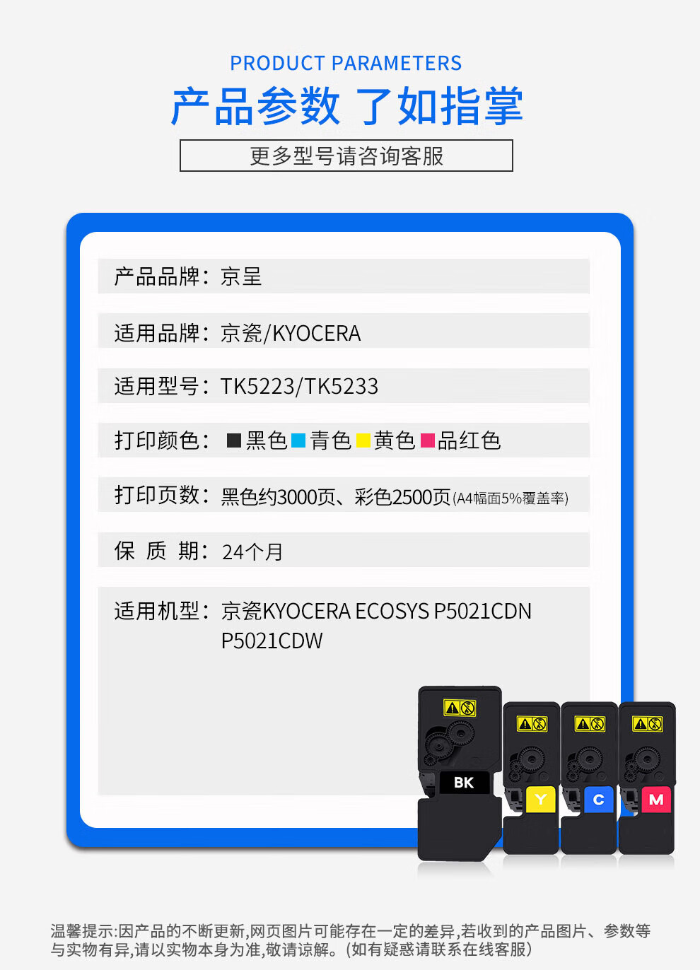 京呈适用京瓷ecosys P5021cdn墨盒P5021cdw墨粉TK5223粉盒5233BK碳粉彩色打印机 TK5233K黑色(带芯片)大容量