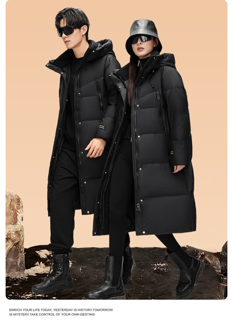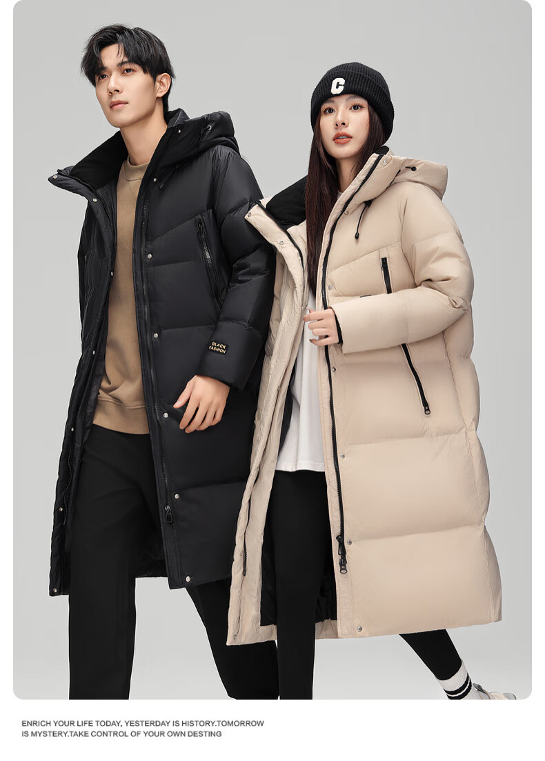鸭鸭(YAYA)奢金羽绒服男女长款2025冬季新款极寒保暖过膝加厚零下20度外套 黑色 L (建议130-145斤)