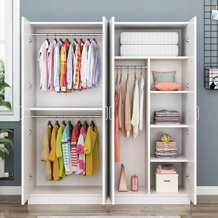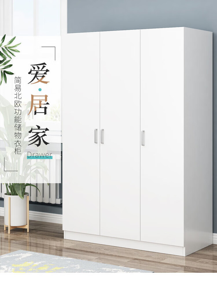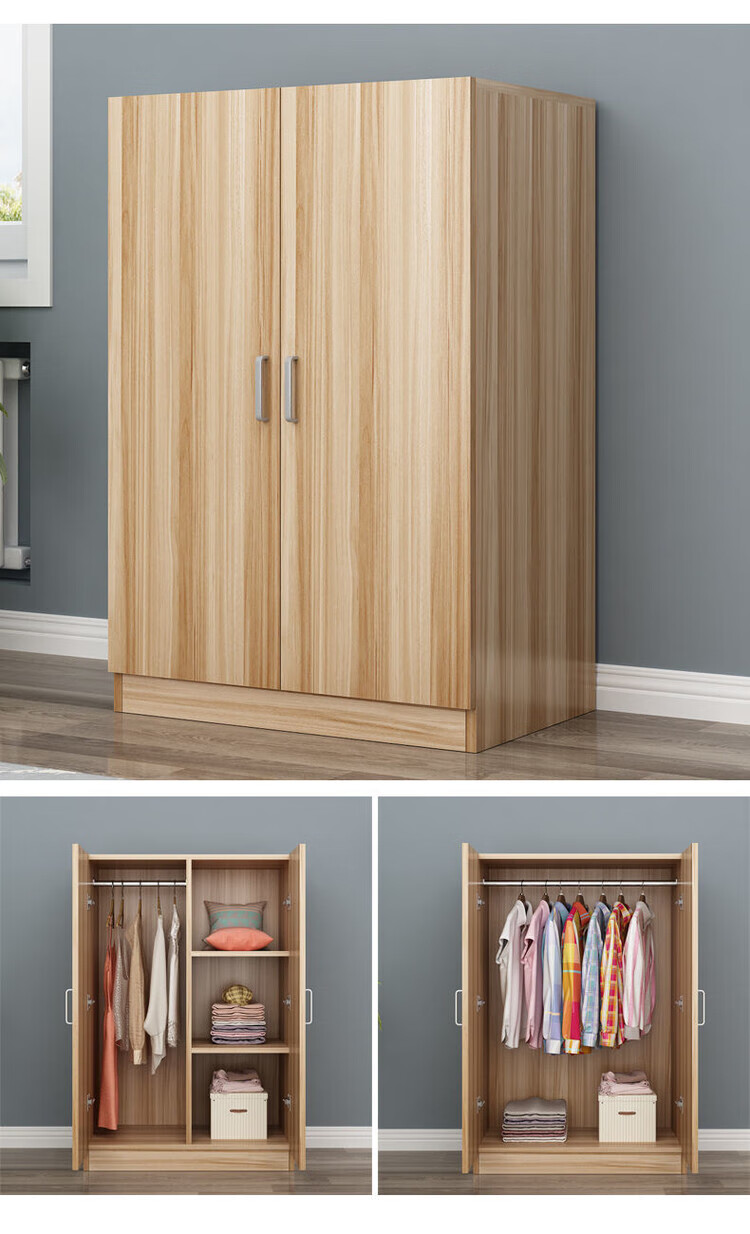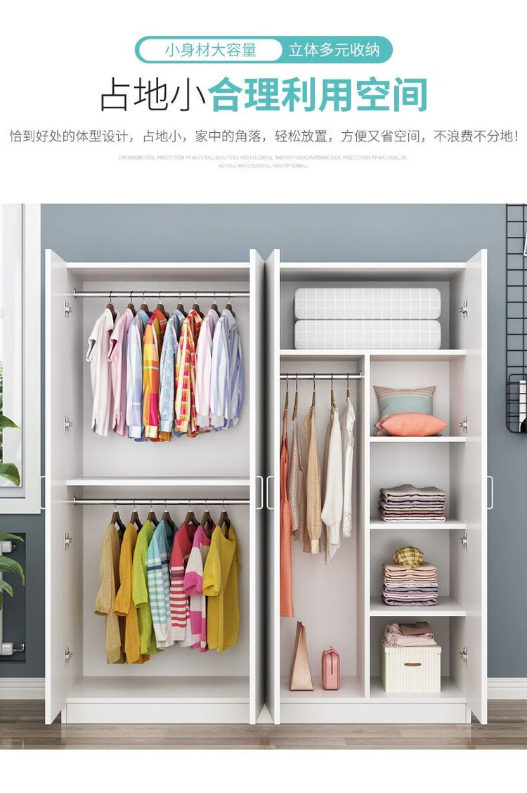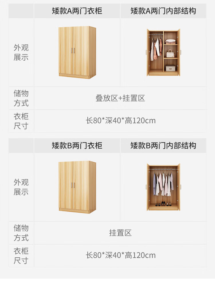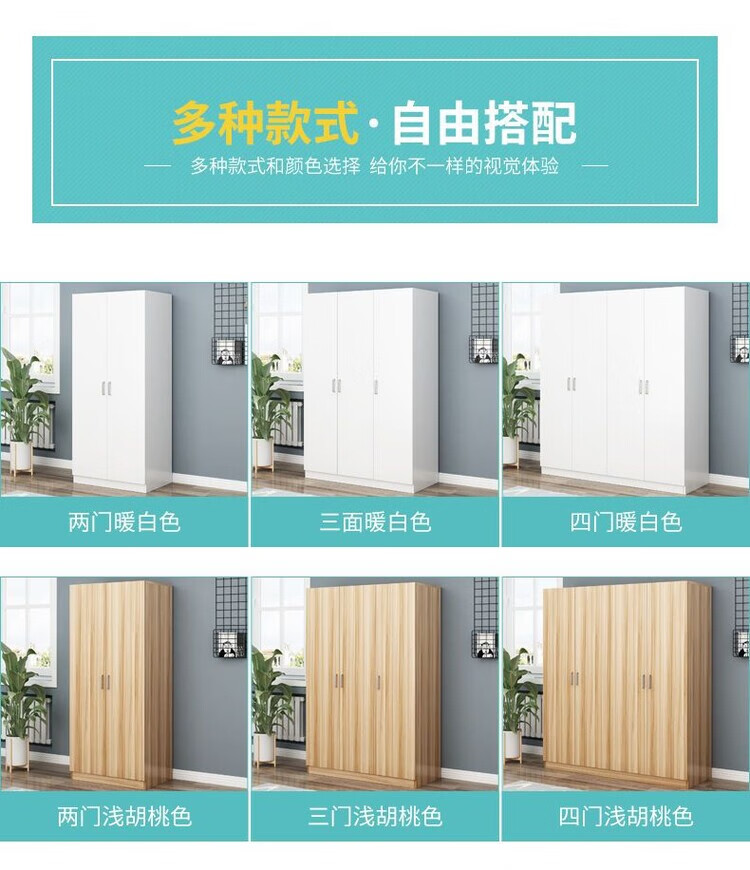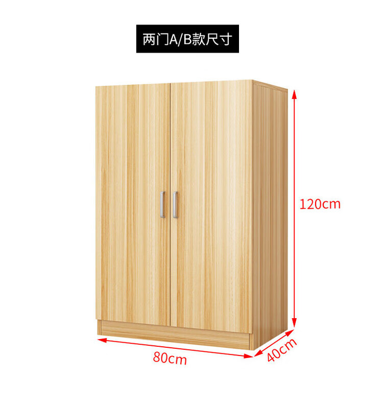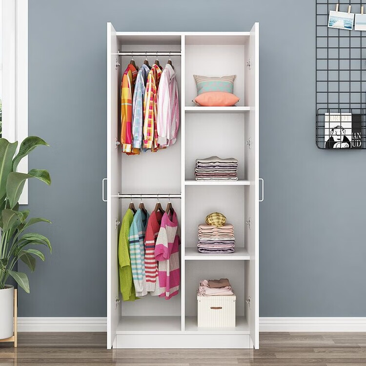 豪利邦家用大衣柜现代经济型实木质板式卧室出租房简易收纳儿童组装衣橱 白色 二门特价120高80宽40深