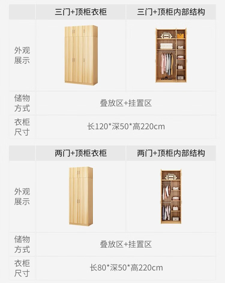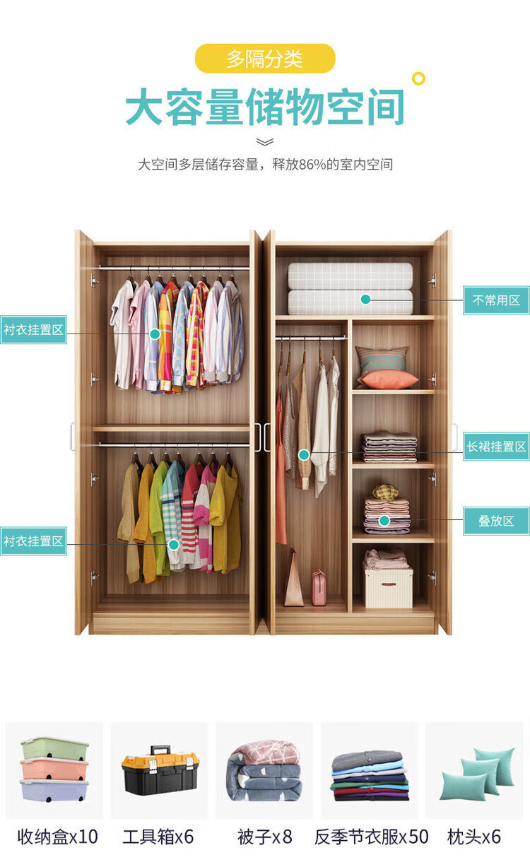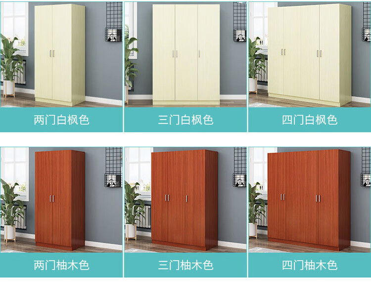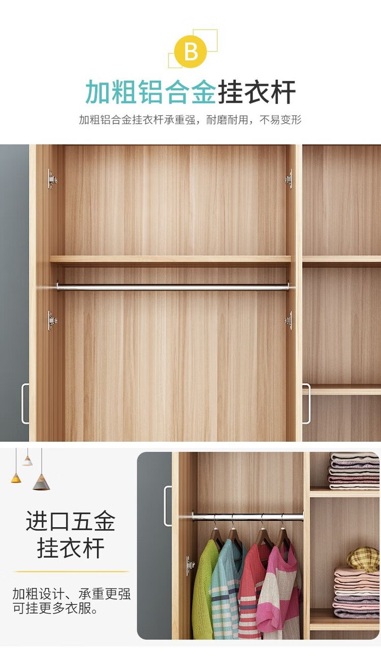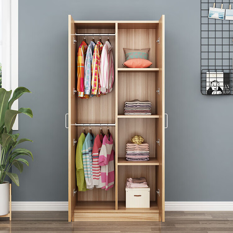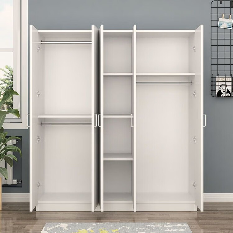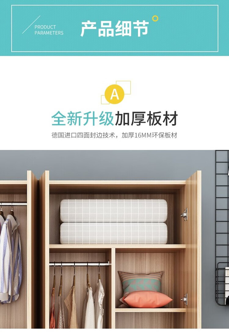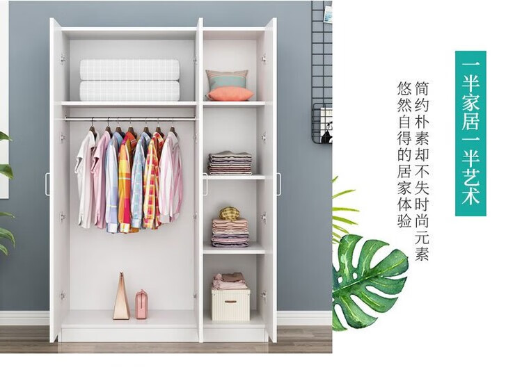 豪利邦家用大衣柜现代经济型实木质板式卧室出租房简易收纳儿童组装衣橱 白色 二门特价120高80宽40深