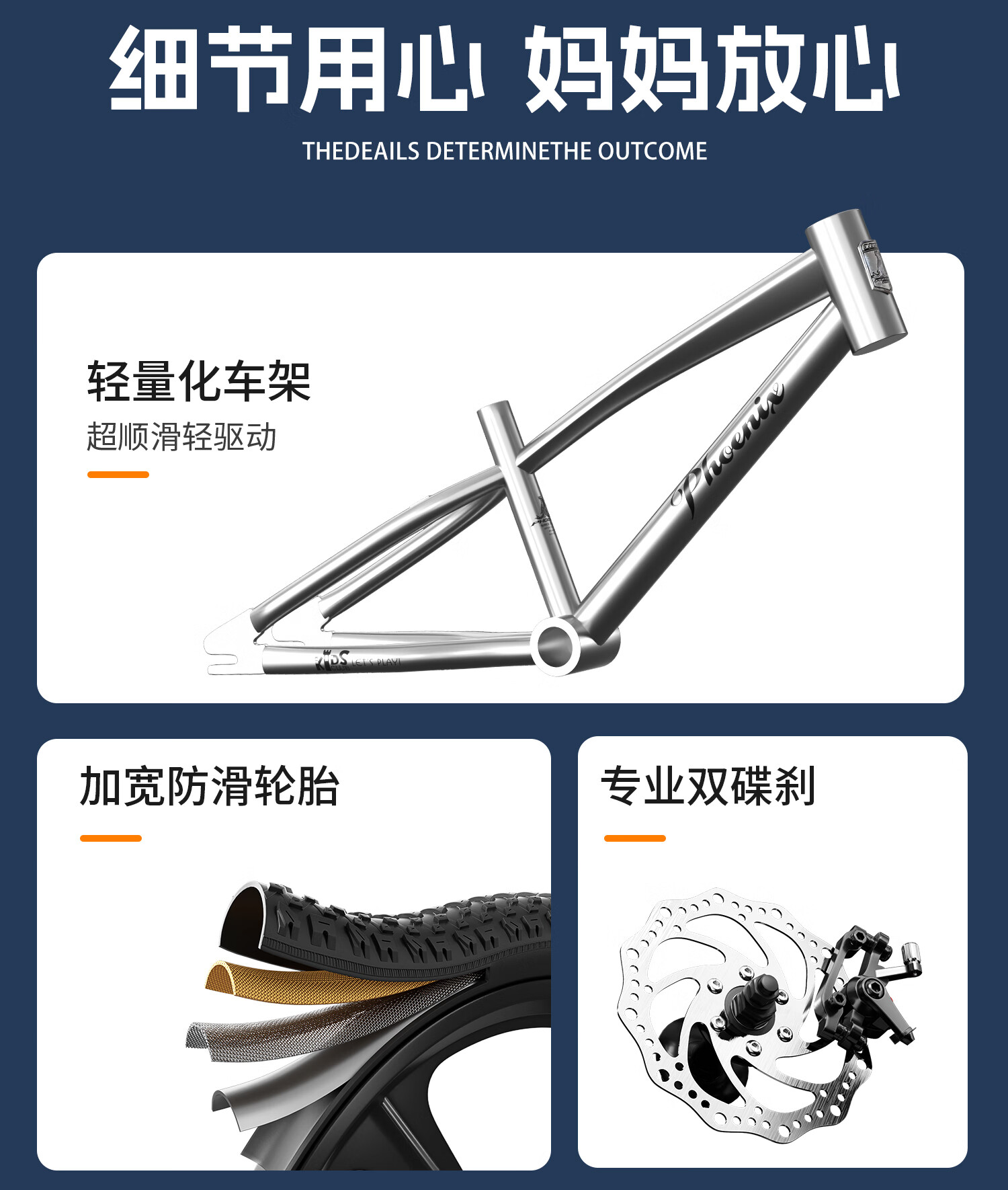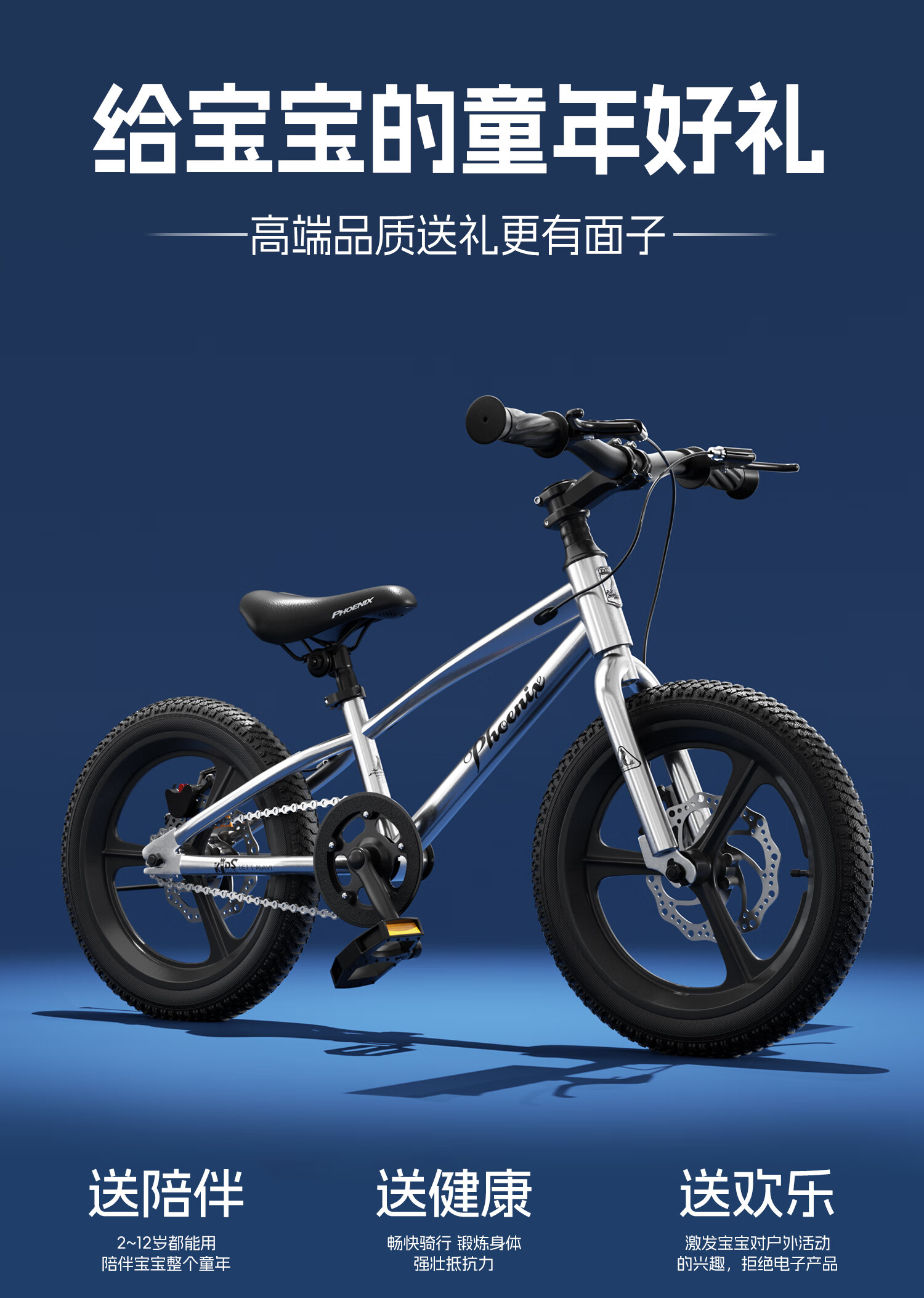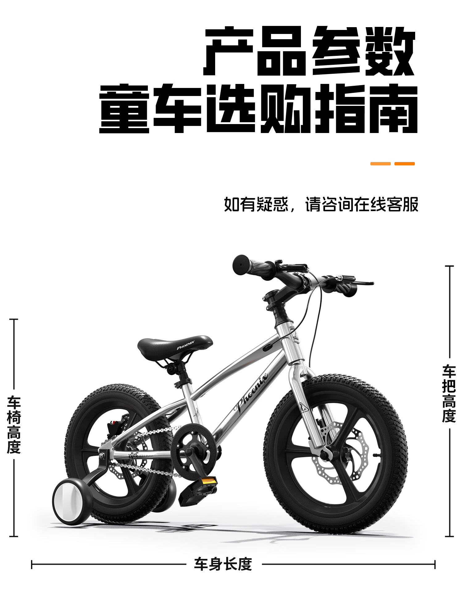 凤凰儿童自行车男女小孩山地车3-5-6-8-10-12-16岁学生碟刹脚踏车礼物 *推荐【高配-辐条轮】钛金银+大礼包 16寸【带辅助轮+脚撑】
