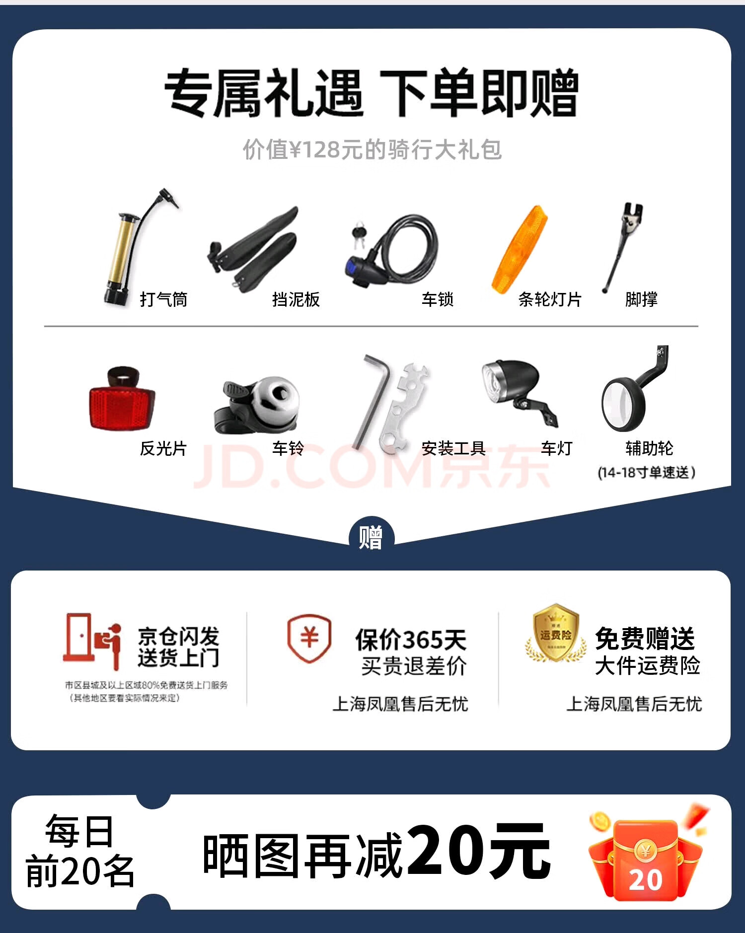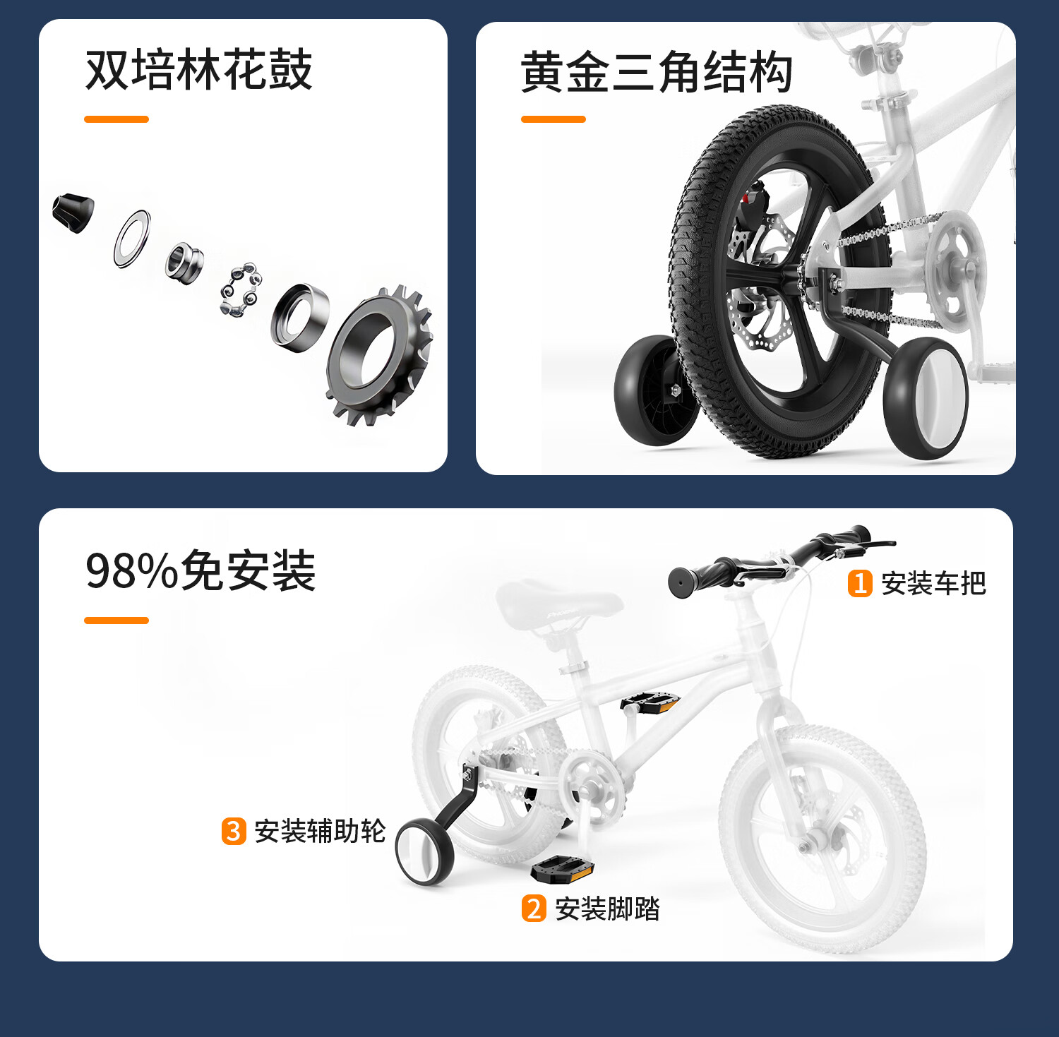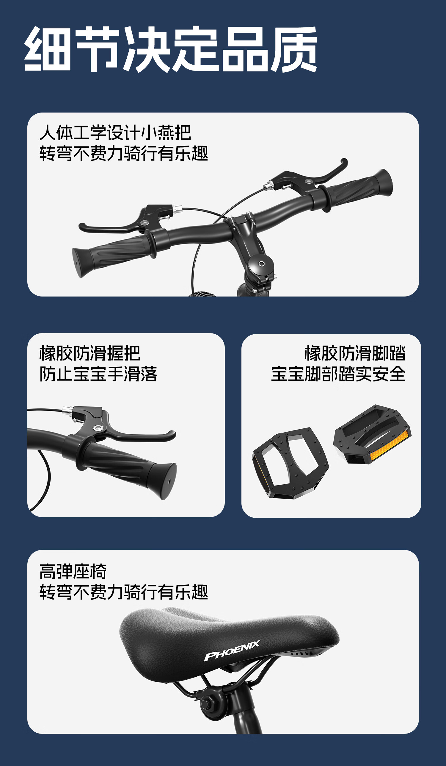 凤凰儿童自行车男女小孩山地车3-5-6-8-10-12-16岁学生碟刹脚踏车礼物 *推荐【高配-辐条轮】钛金银+大礼包 16寸【带辅助轮+脚撑】
