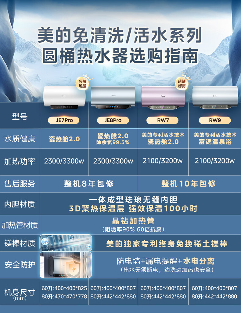 美的(Midea)阻垢免清洗电热水器60升家用3300W变频速热镁棒免更换以旧换新国家补贴20%热水器F6033-JE7Pro(HE)