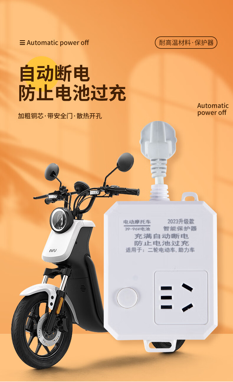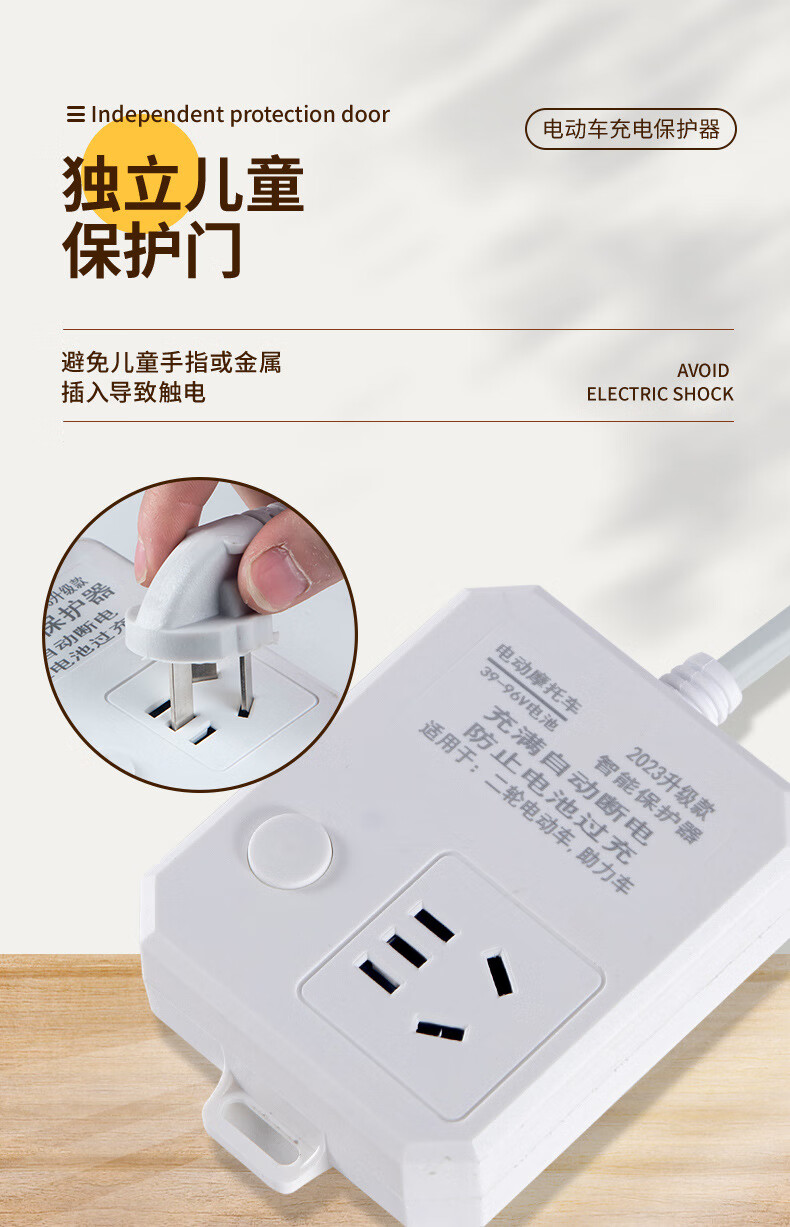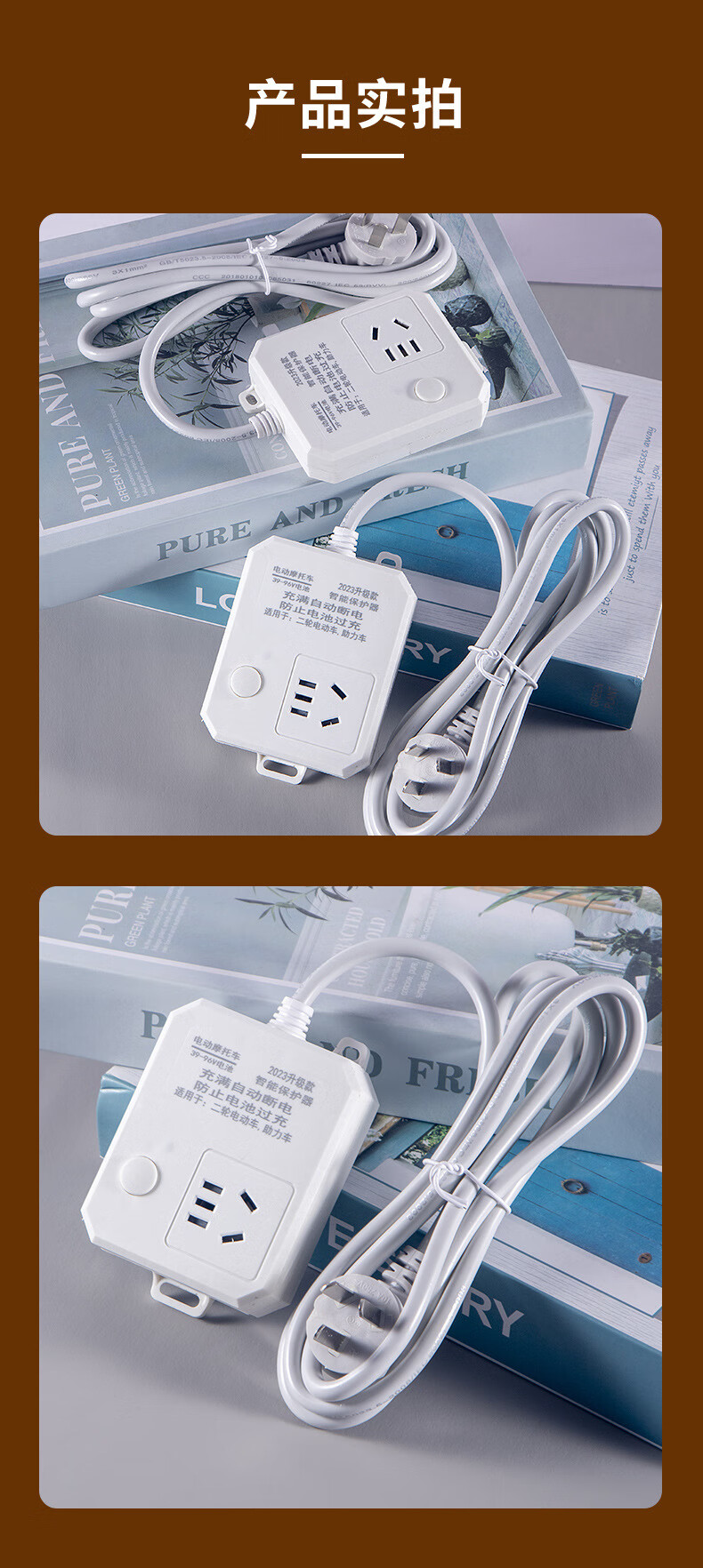 雅奇(YAQI)电动车充电器插座充满自动断电保护器电瓶车精准充电延长线断电器 电动车自动断电5孔-2.8米