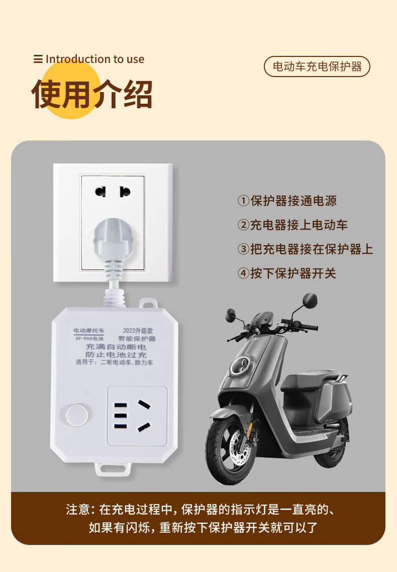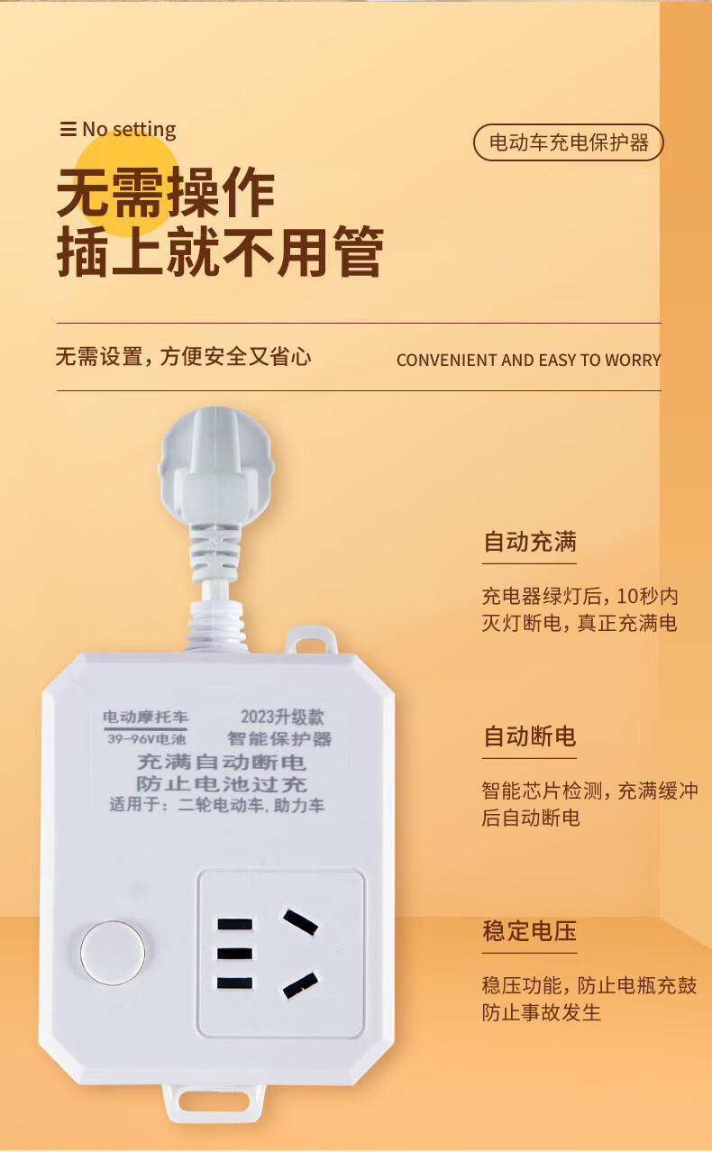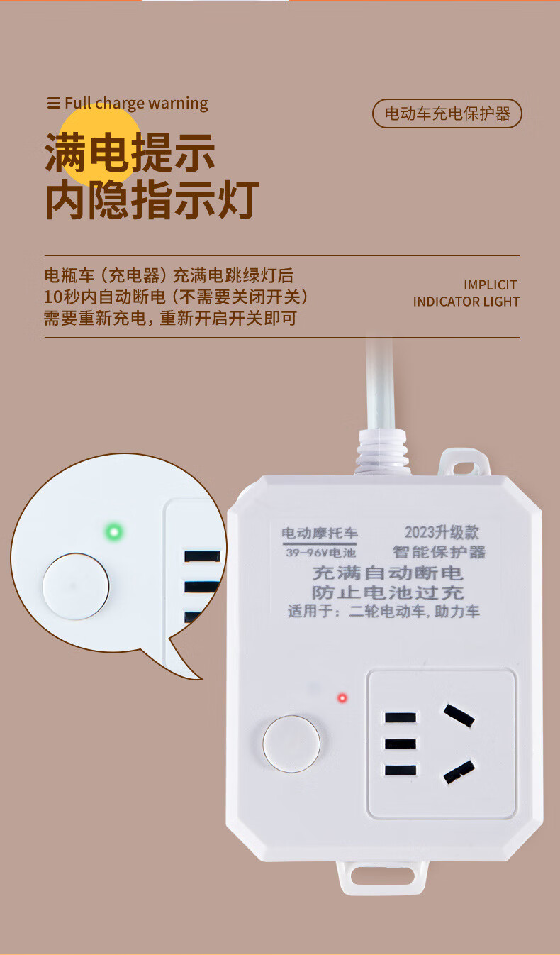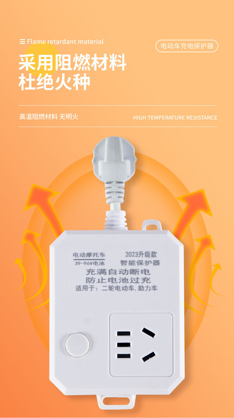 雅奇(YAQI)电动车充电器插座充满自动断电保护器电瓶车精准充电延长线断电器 电动车自动断电5孔-2.8米