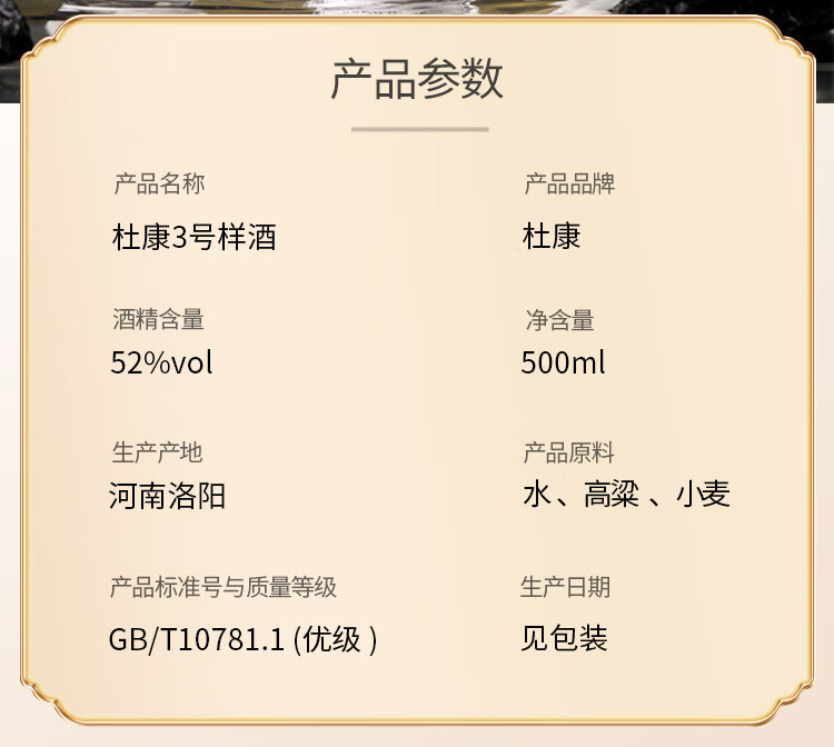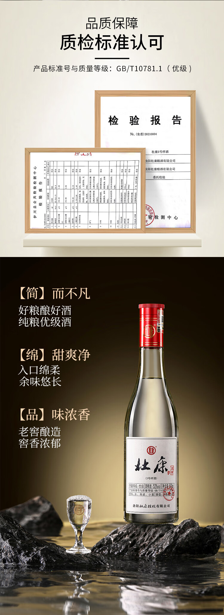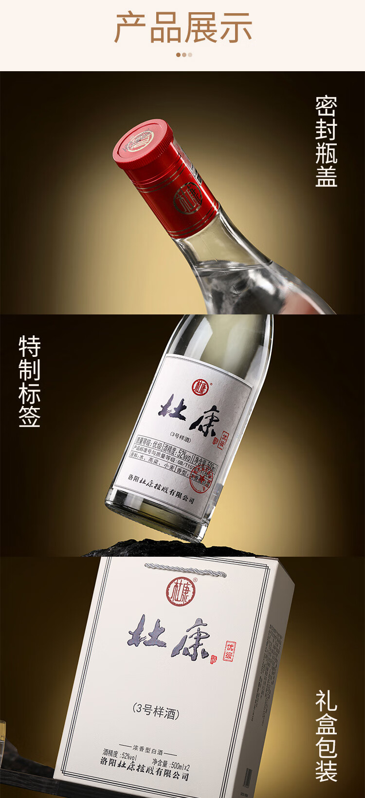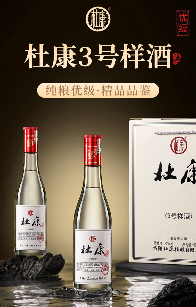 杜康【官方】3号样酒浓香型白酒2瓶装52度纯粮食酒口粮酒节日送礼 52度 500mL 6瓶 整箱礼盒