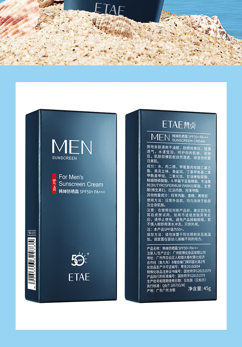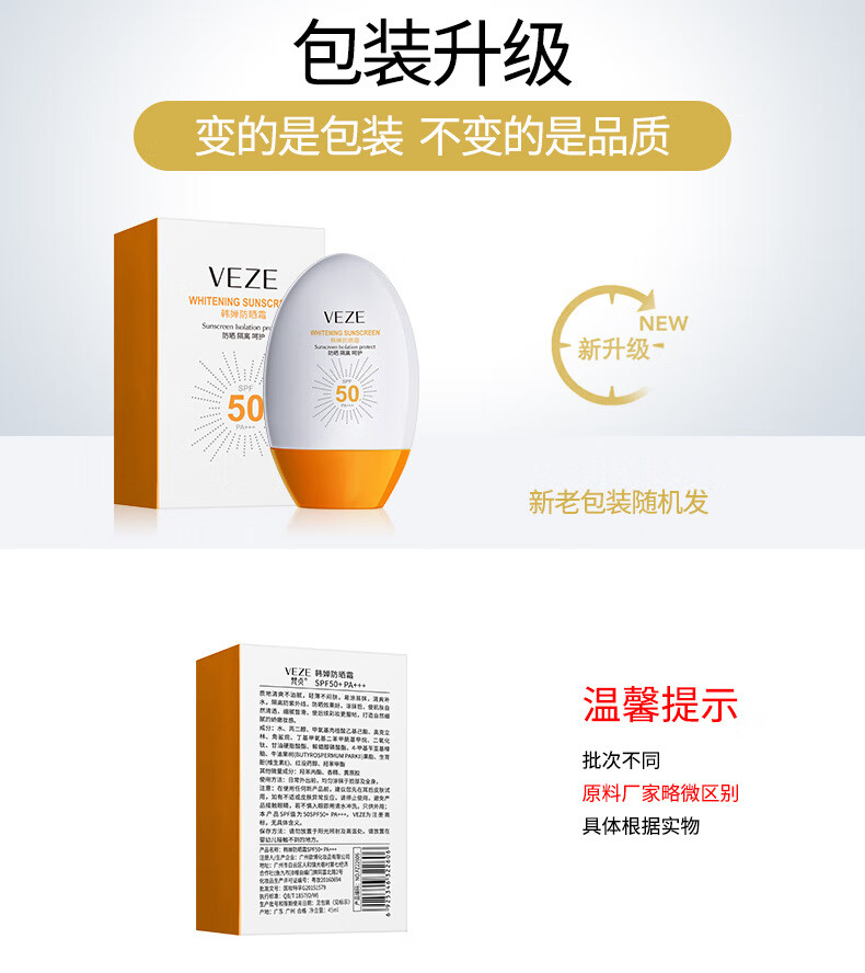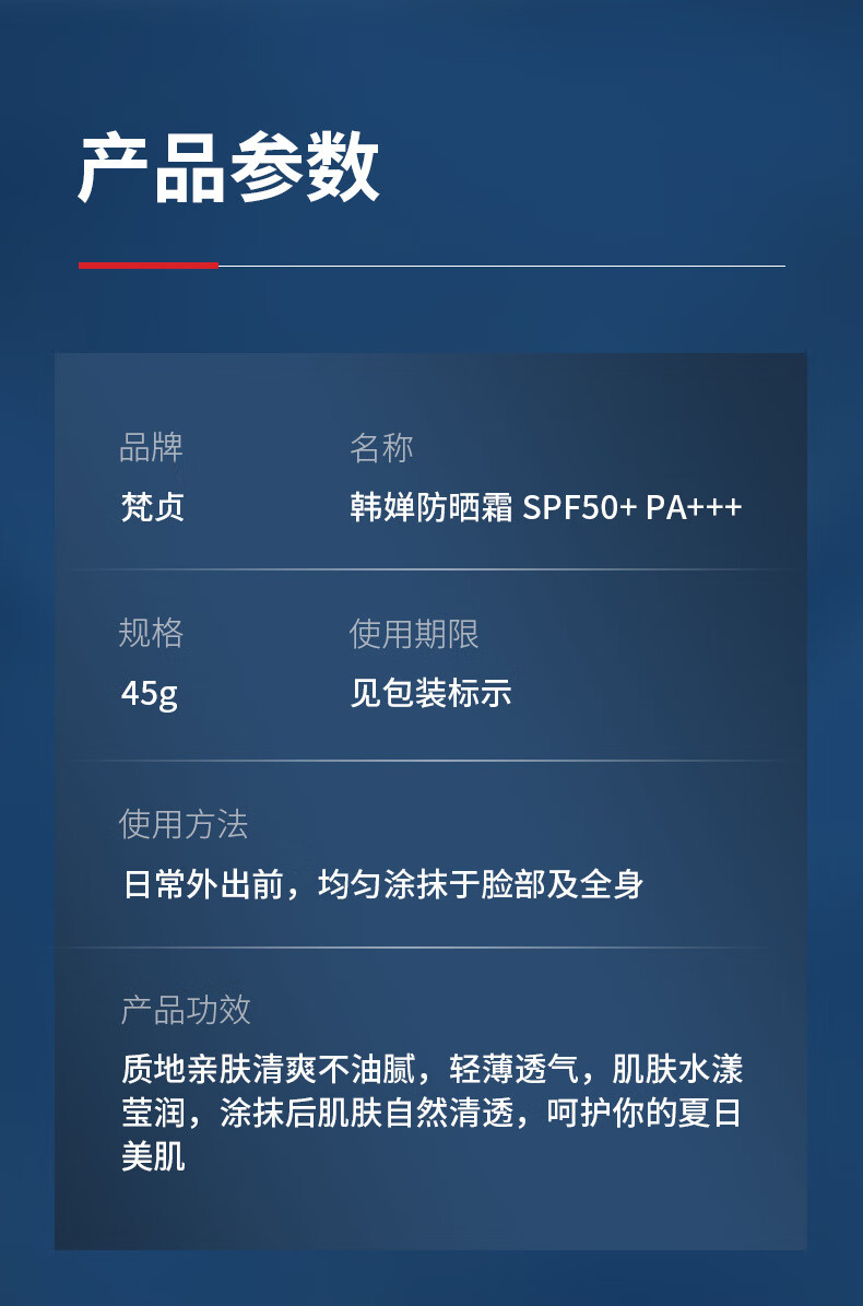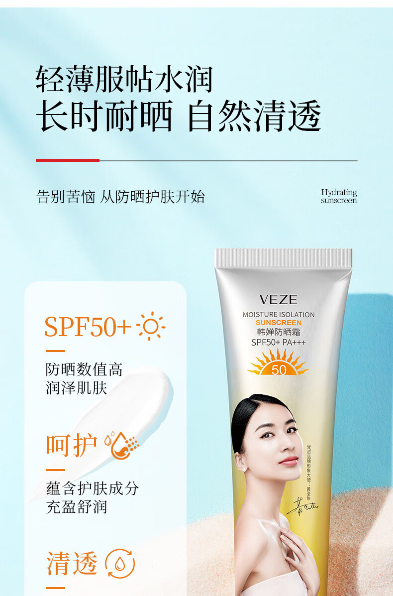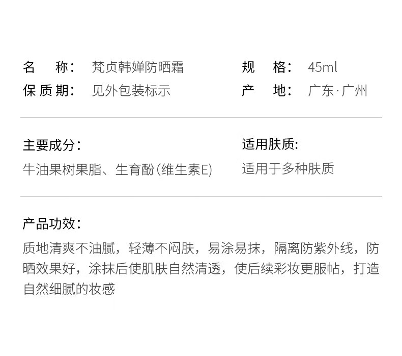 【精选】防晒霜SPF50+隔离紫外线户外夏季防晒乳不油腻厂家 防晒霜45ml(梵贞) SPF50+PA+++