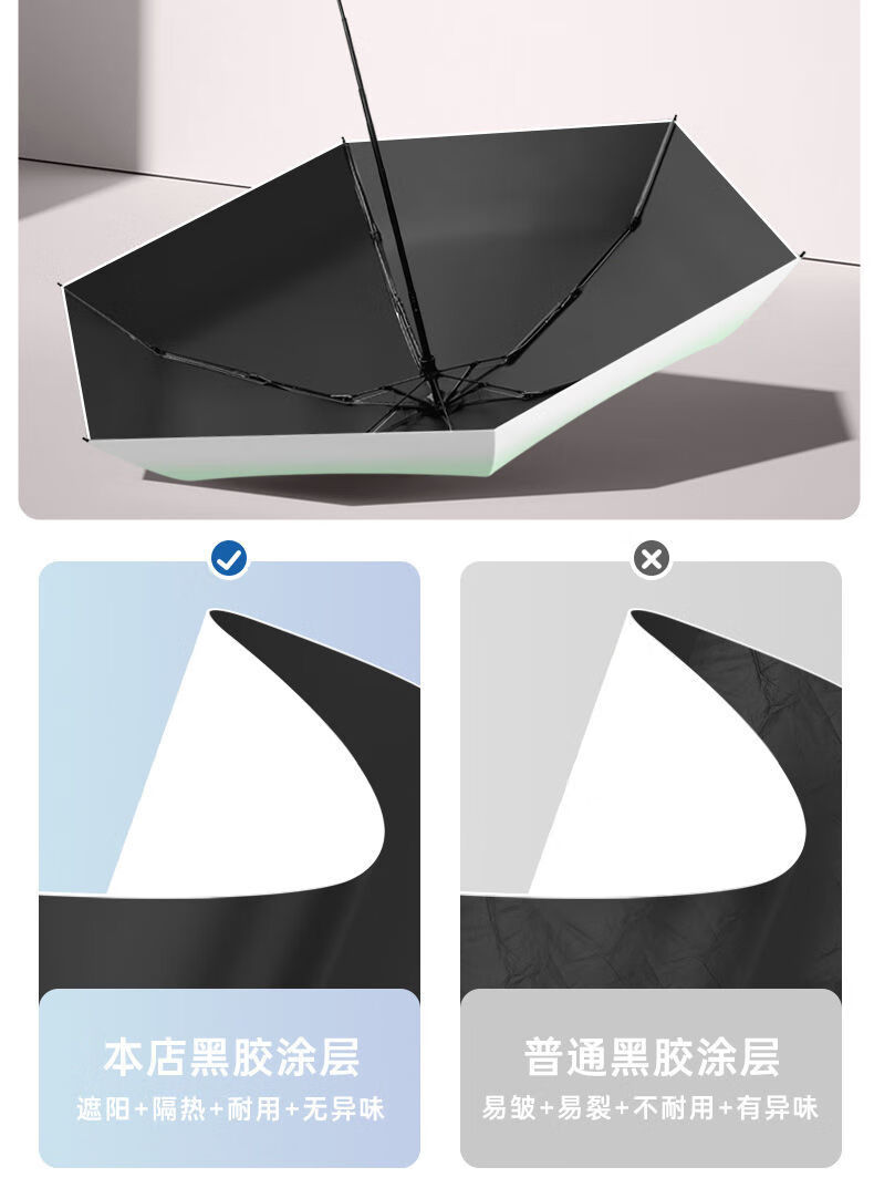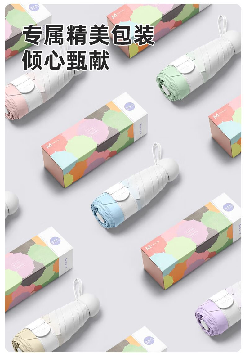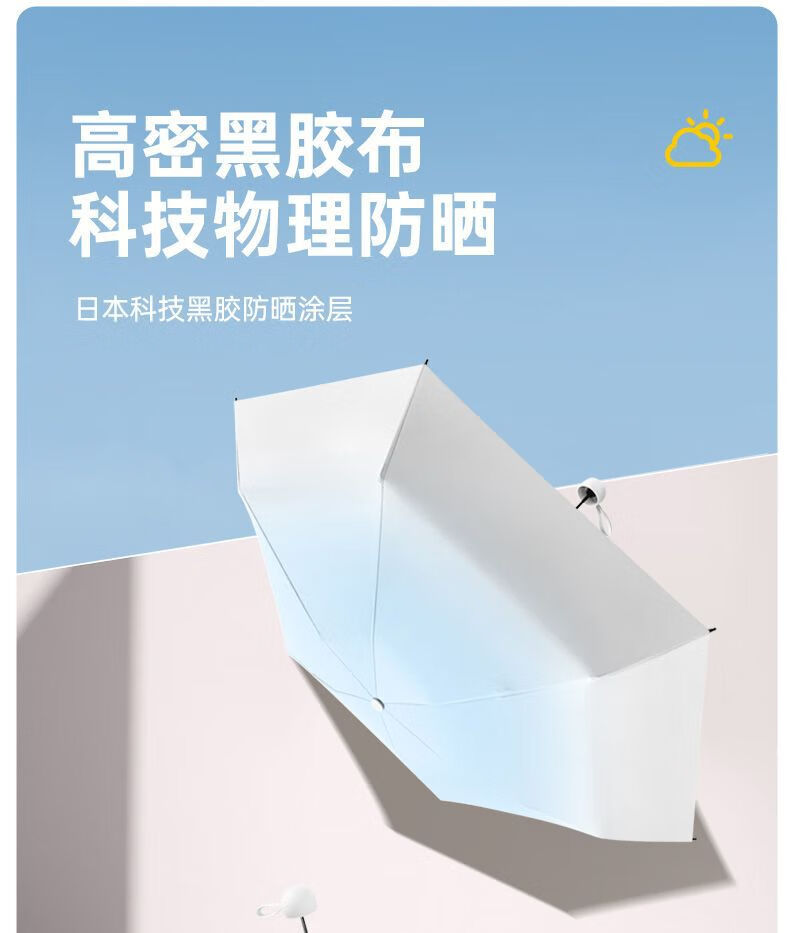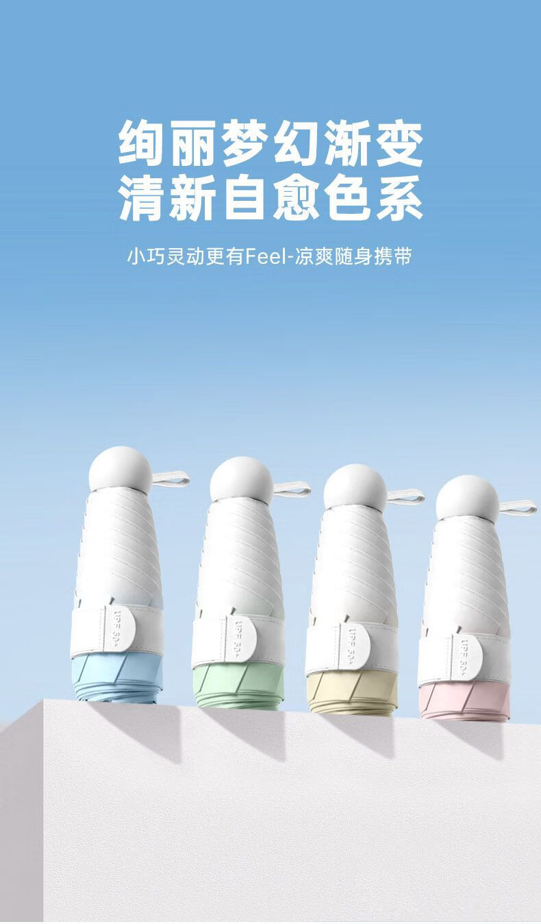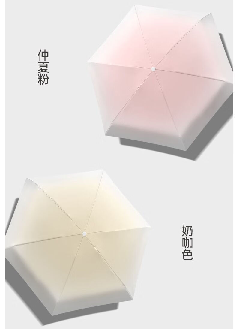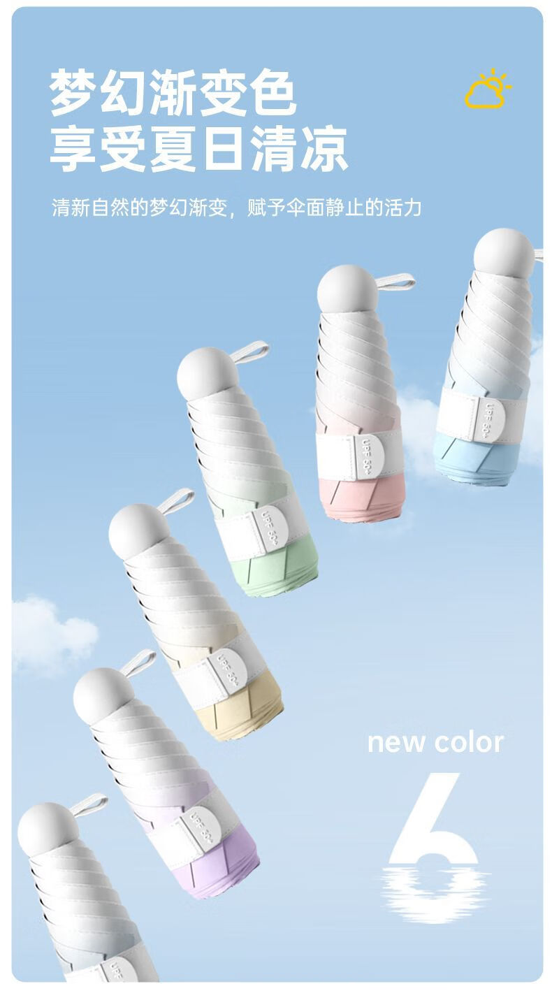 【优选好物】迷你五折叠超轻小巧便携渐变太阳伞女防晒遮阳晴雨伞 五折6骨黑胶渐变色-樱花粉 无规格