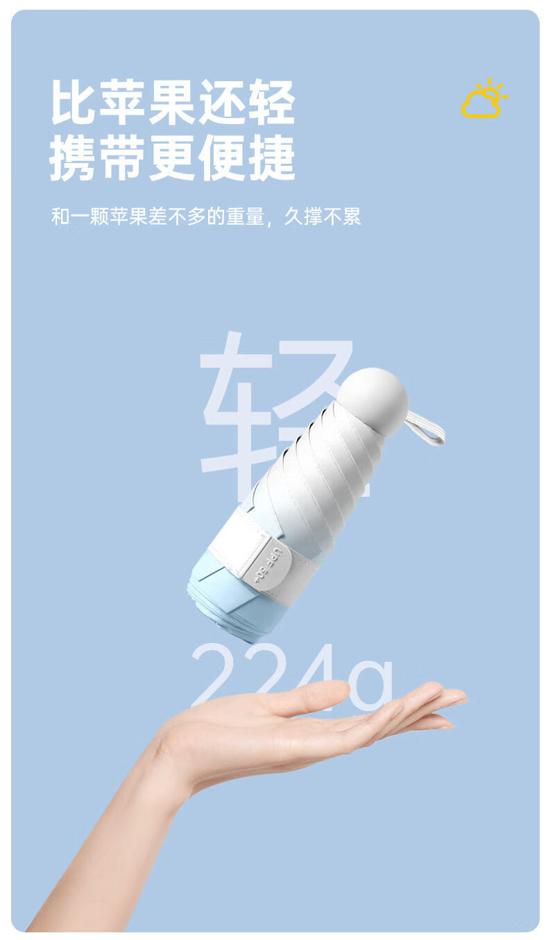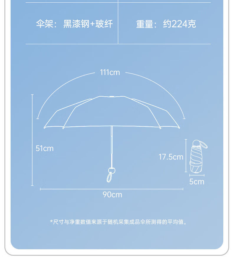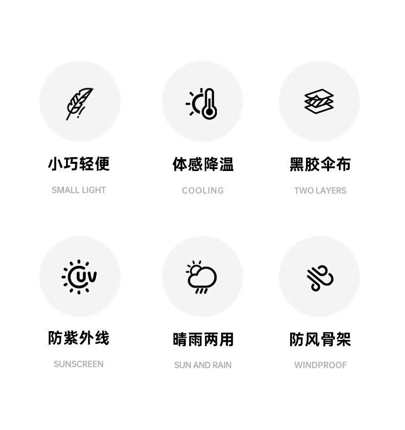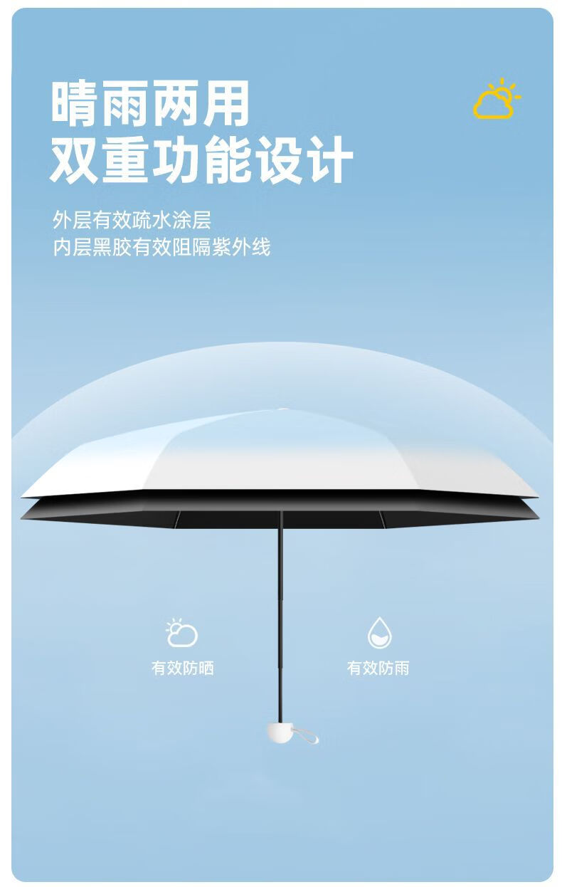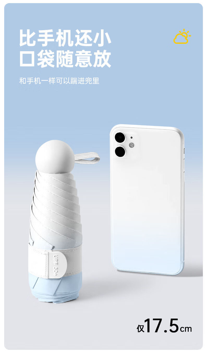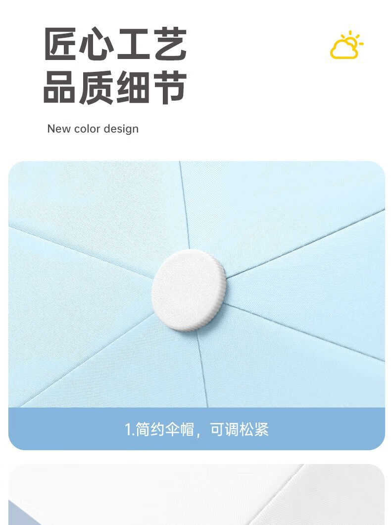 【优选好物】迷你五折叠超轻小巧便携渐变太阳伞女防晒遮阳晴雨伞 五折6骨黑胶渐变色-樱花粉 无规格