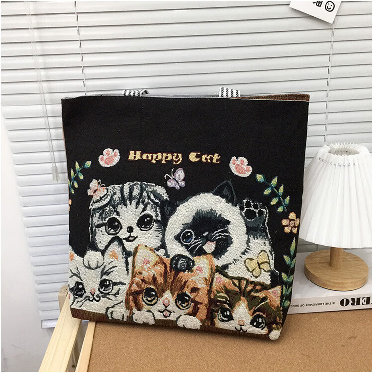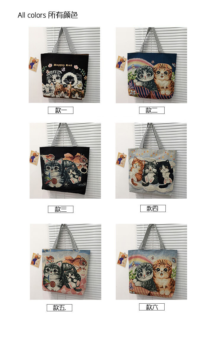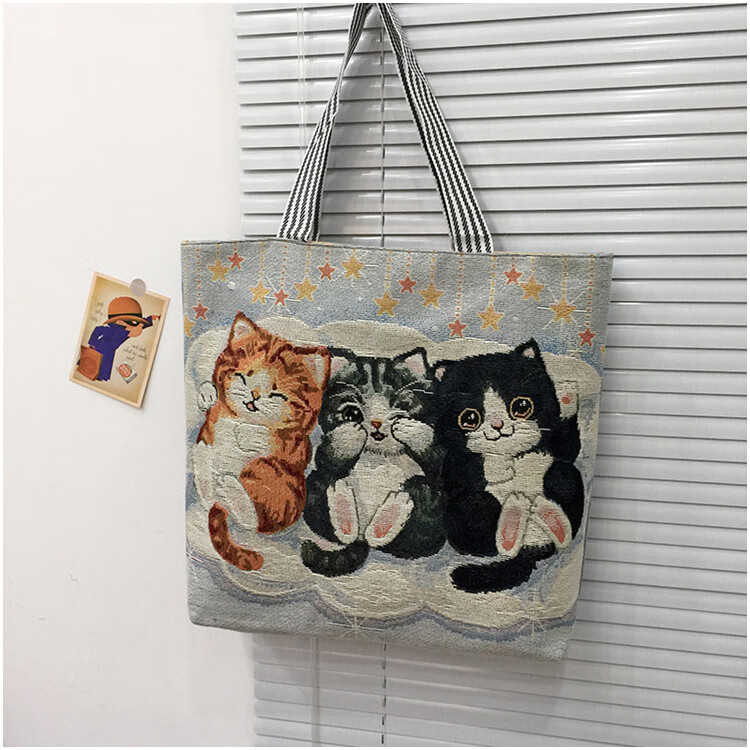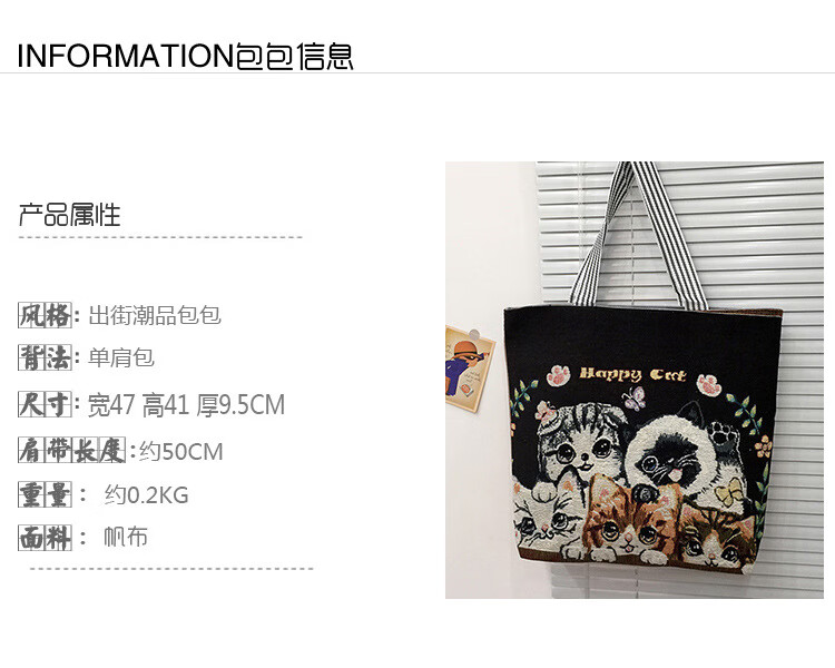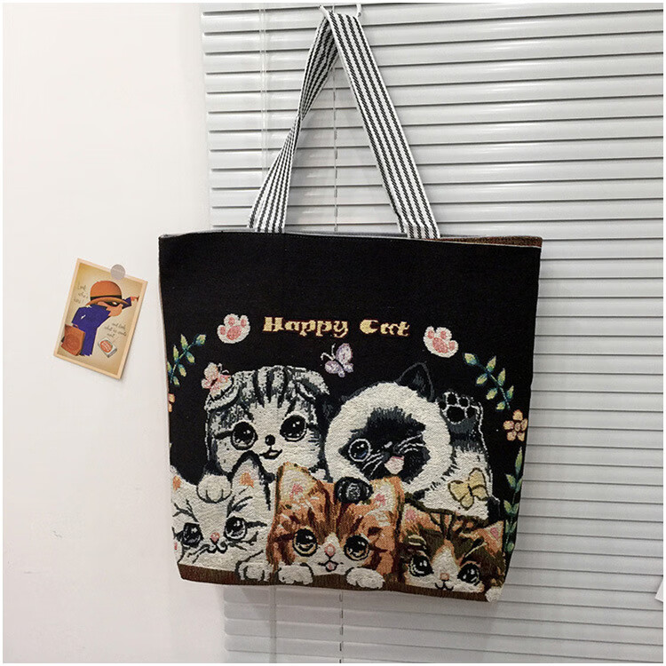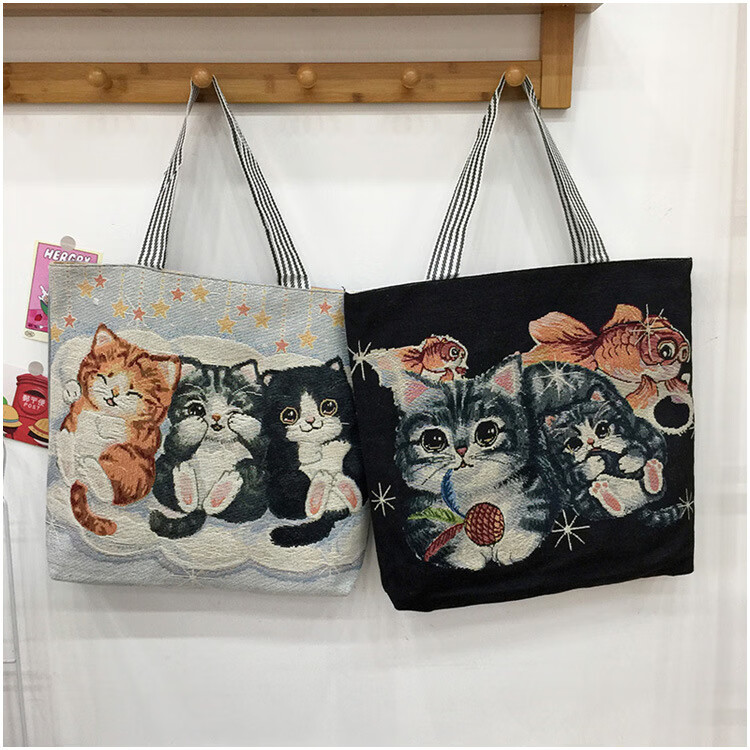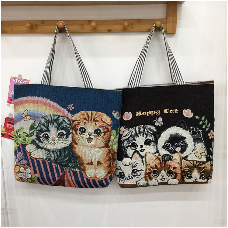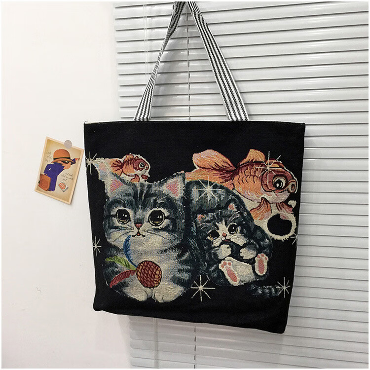【甄选百货】复古新绣花帆布包单肩包时尚女包可爱小猫简约大容量 001