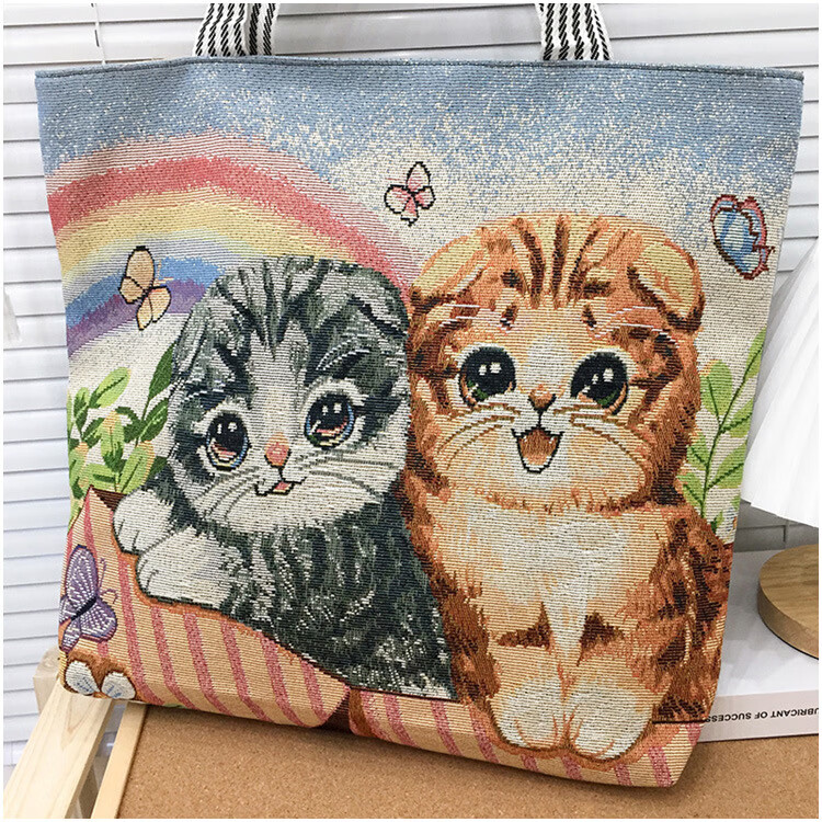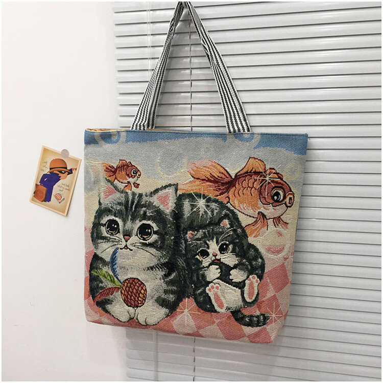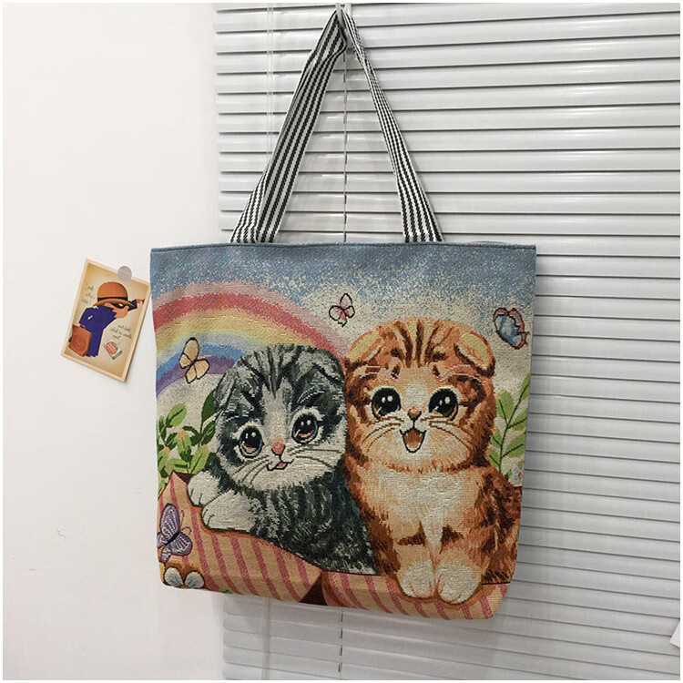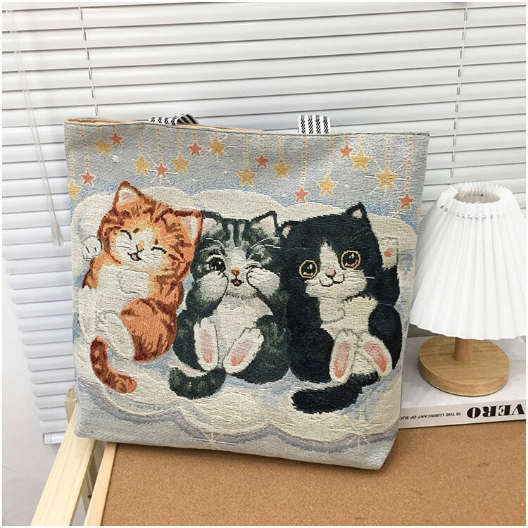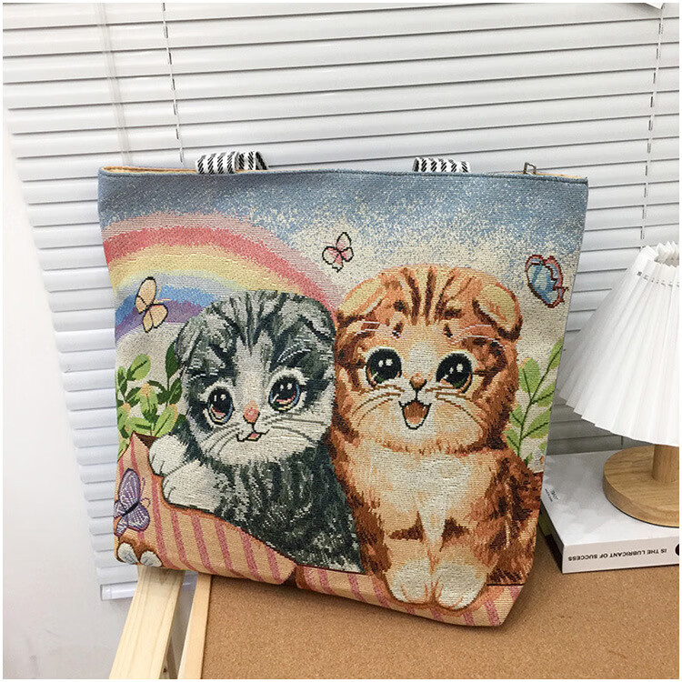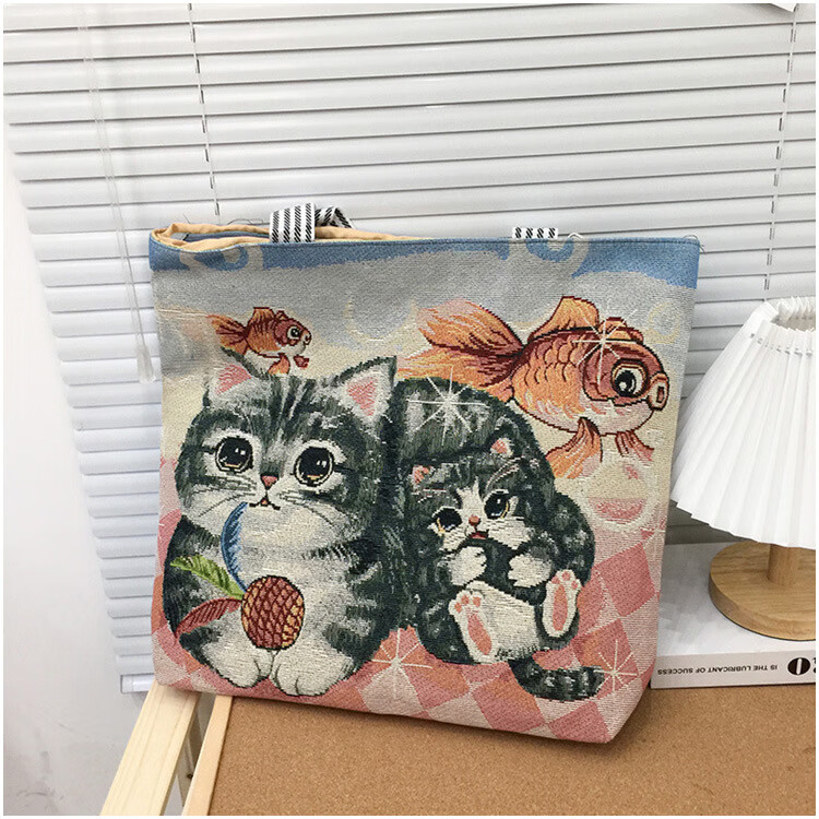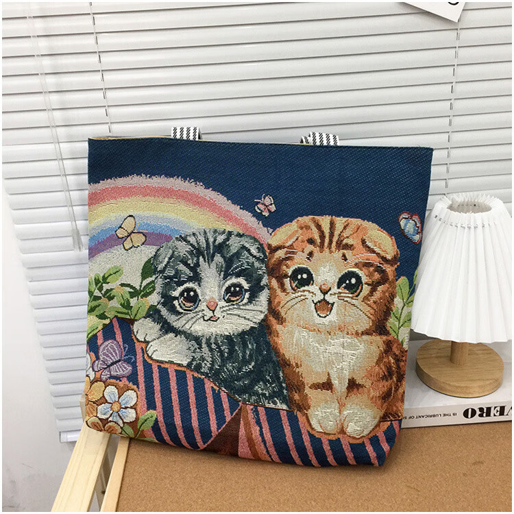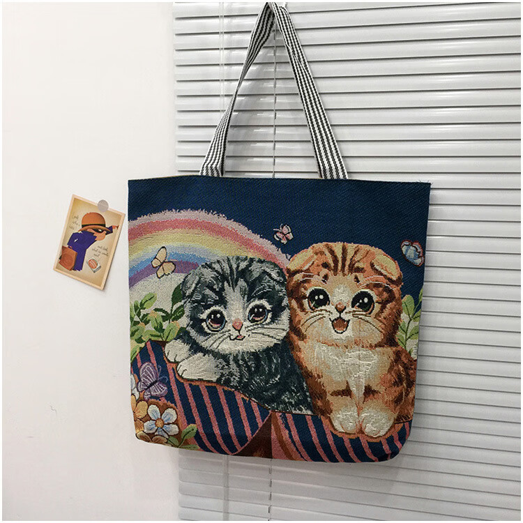 【甄选百货】复古新绣花帆布包单肩包时尚女包可爱小猫简约大容量 001