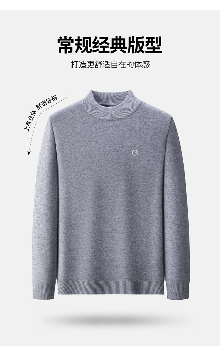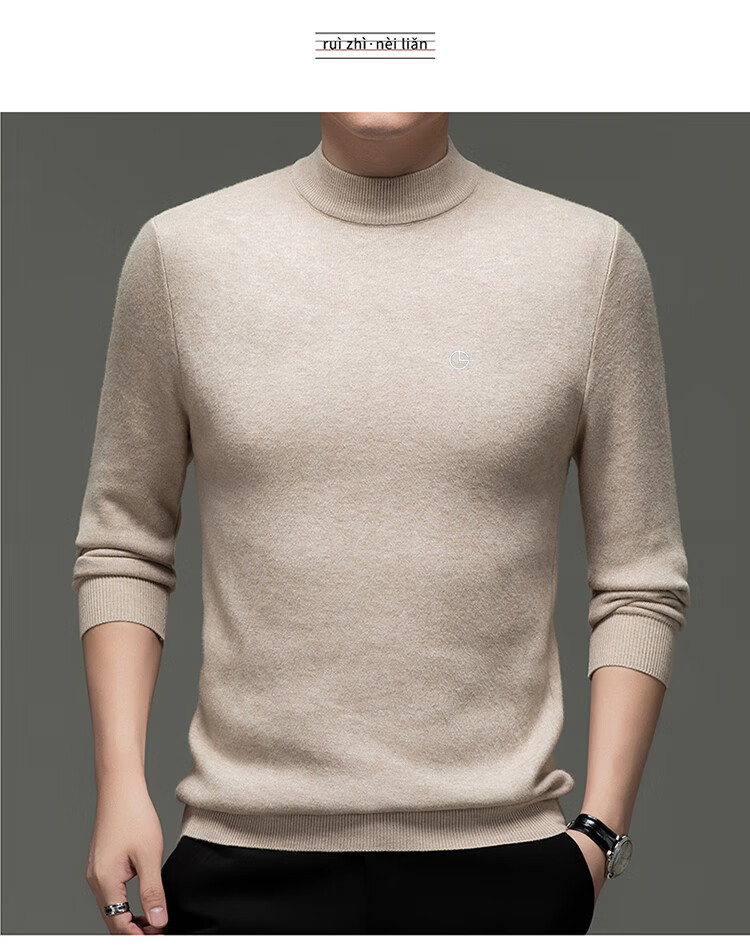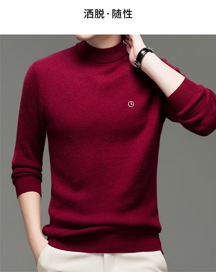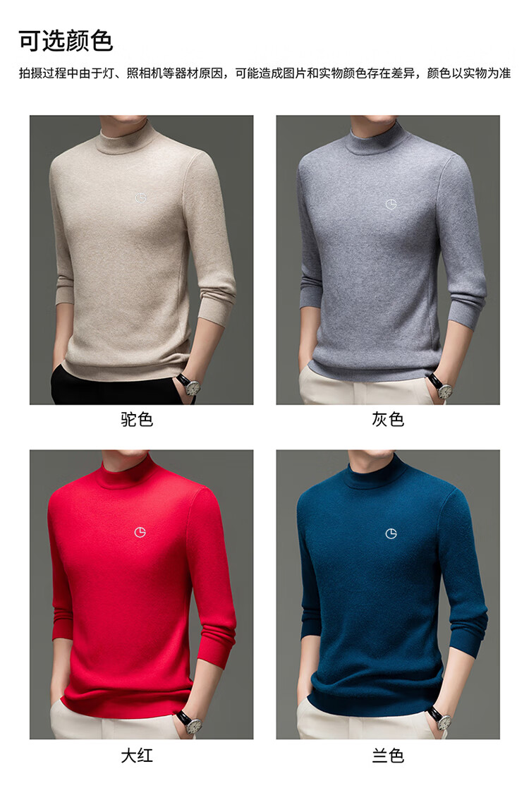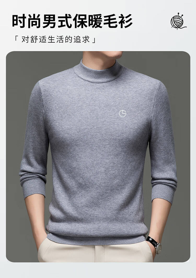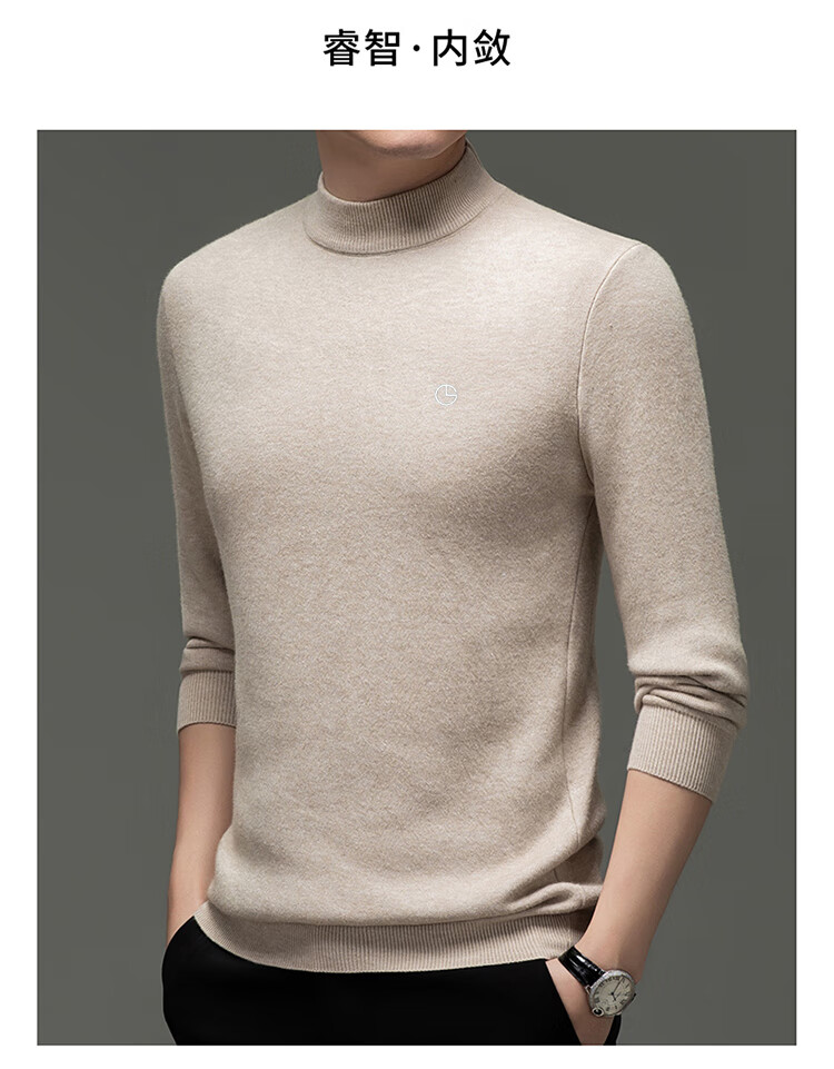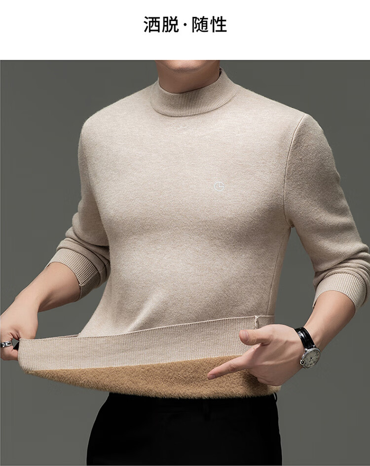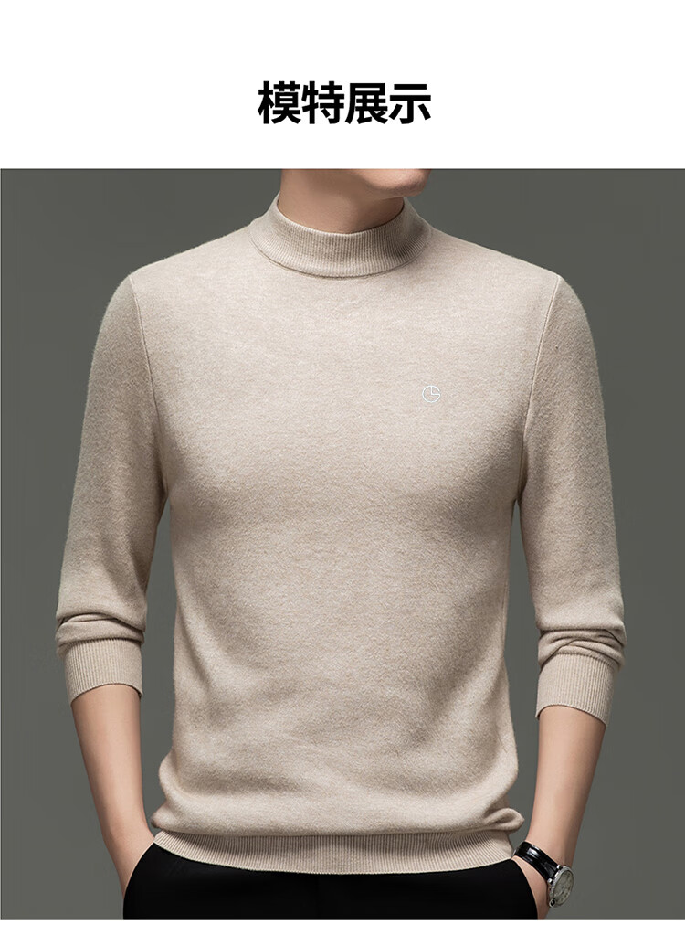 金利来羊毛衫男冬季新款半高领针织衫含羊毛打底衫保暖一体绒毛衣男装 驼色 L 推荐115-135斤