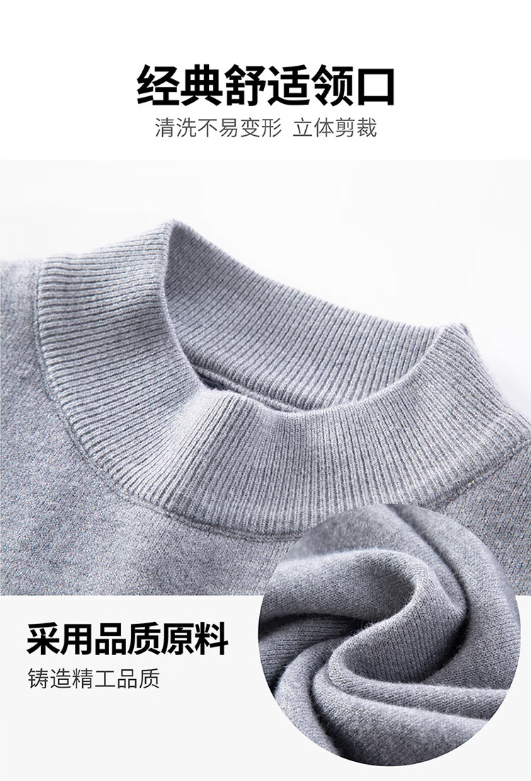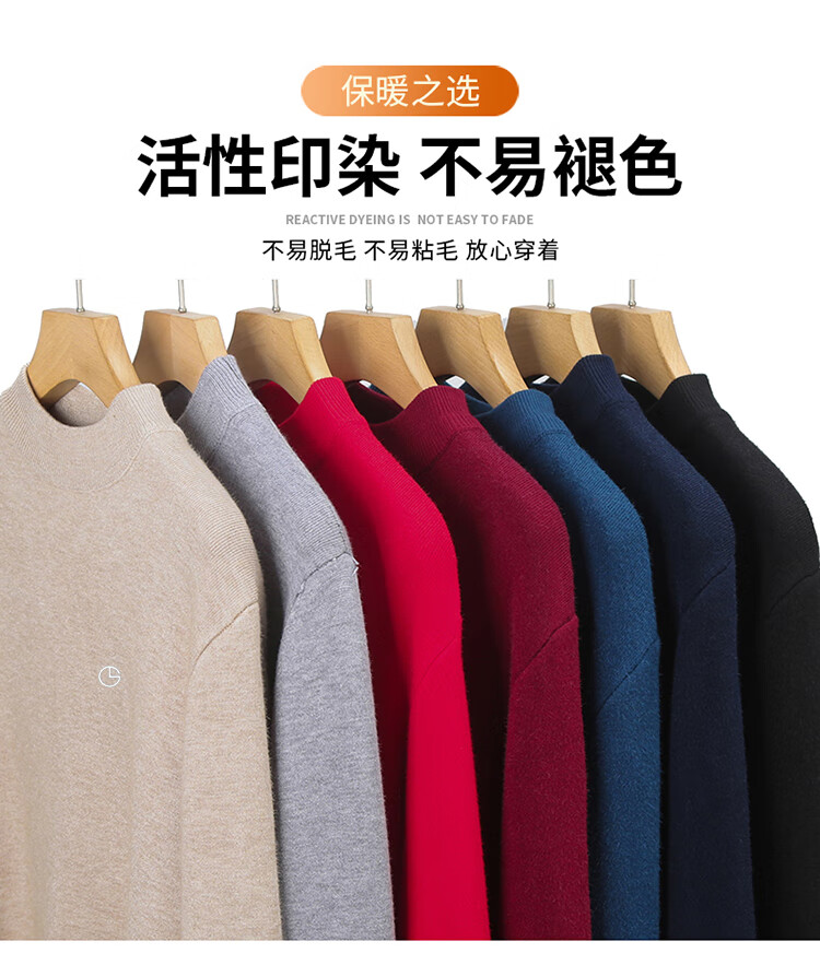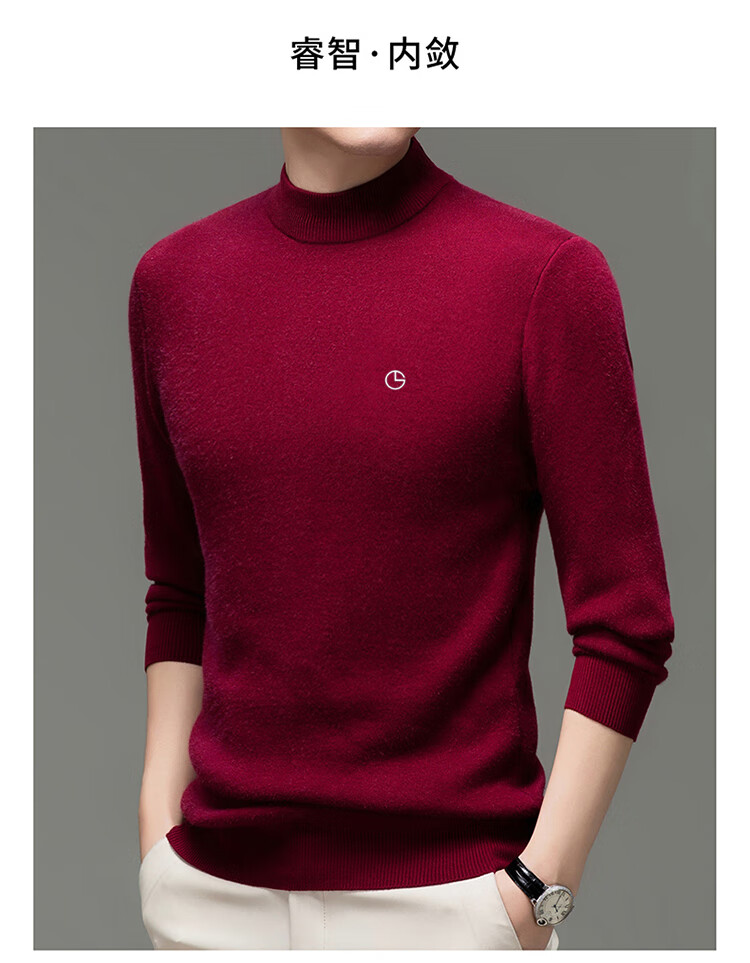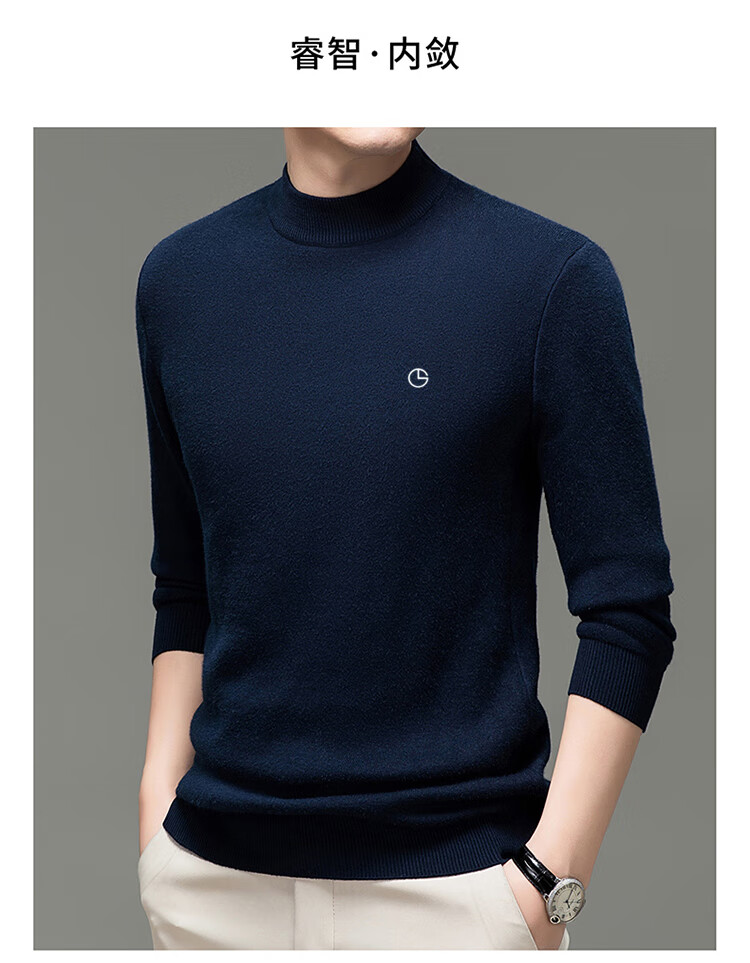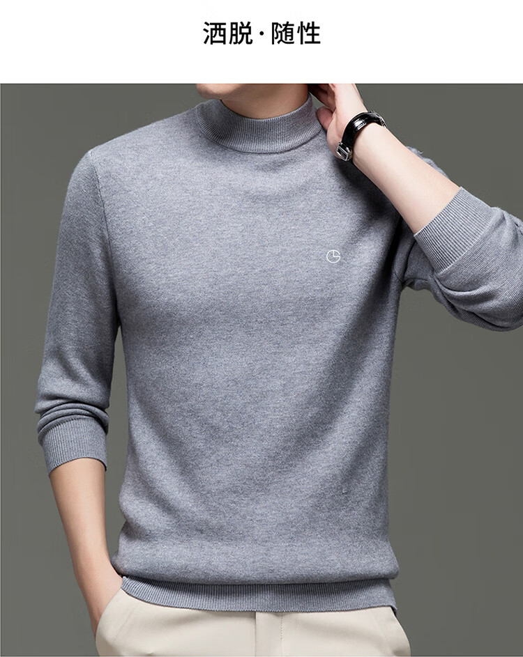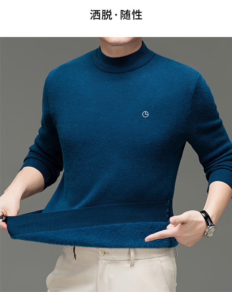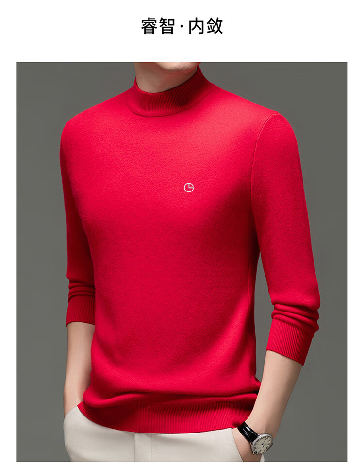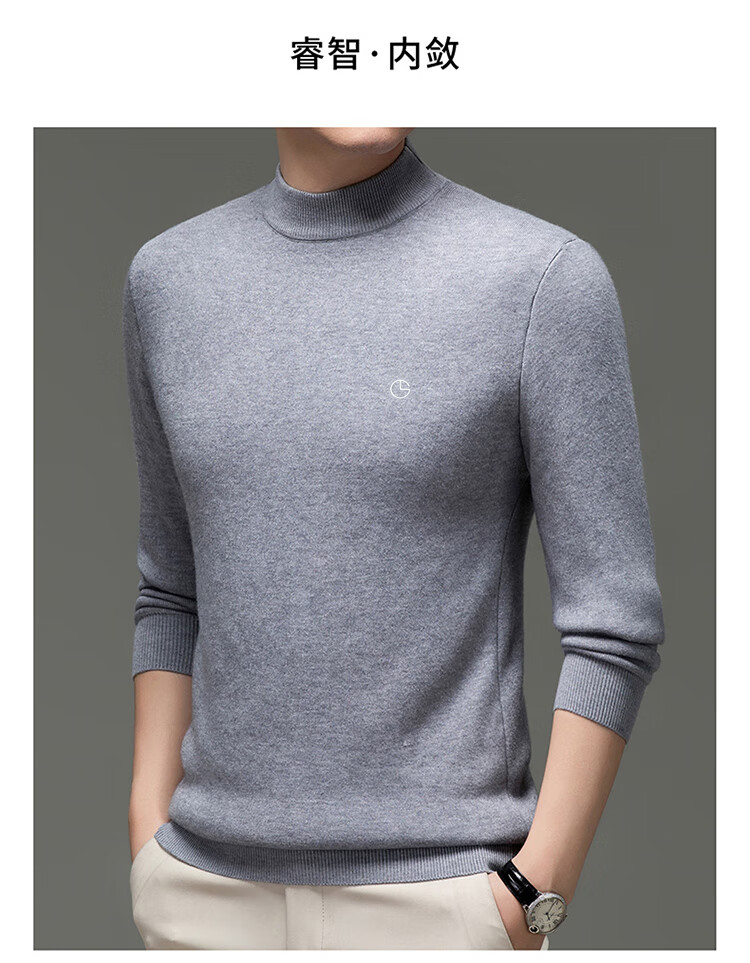 金利来羊毛衫男冬季新款半高领针织衫含羊毛打底衫保暖一体绒毛衣男装 驼色 L 推荐115-135斤