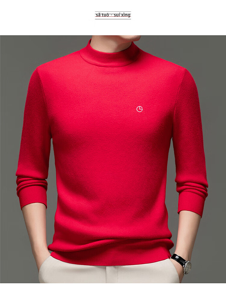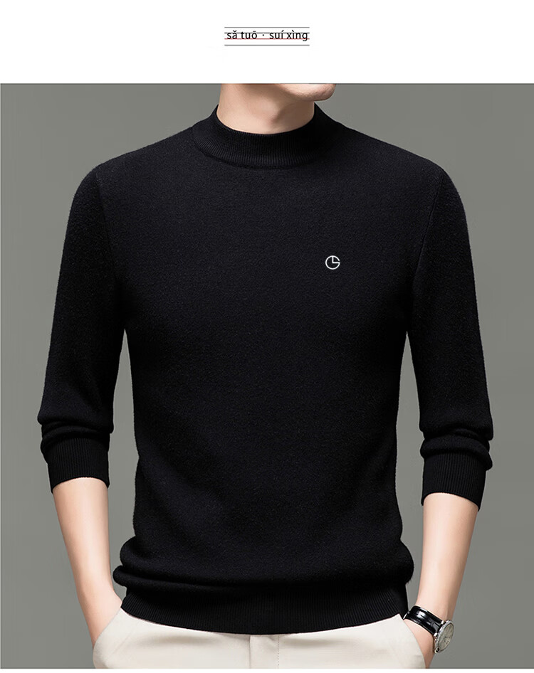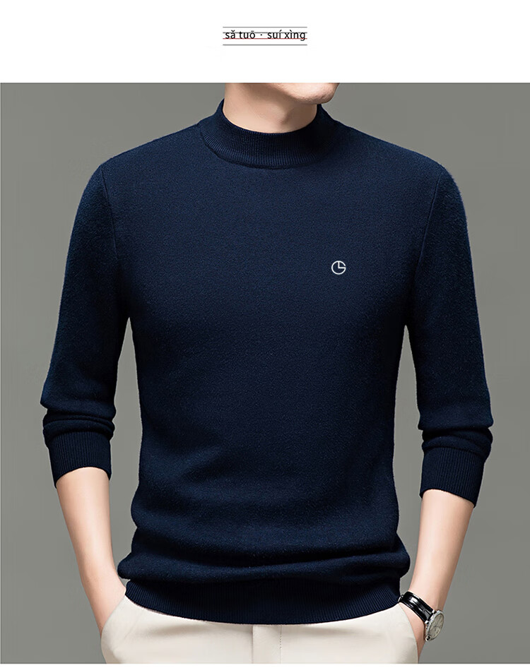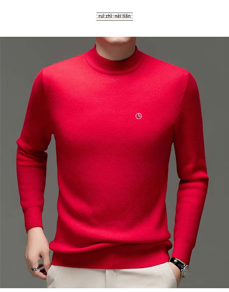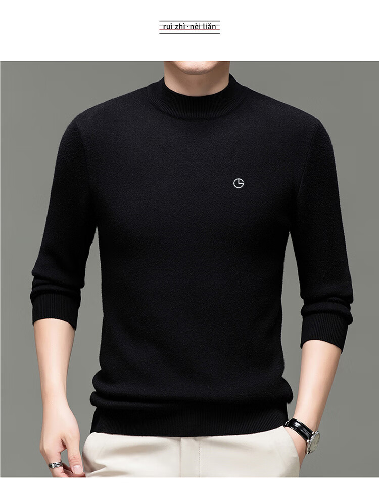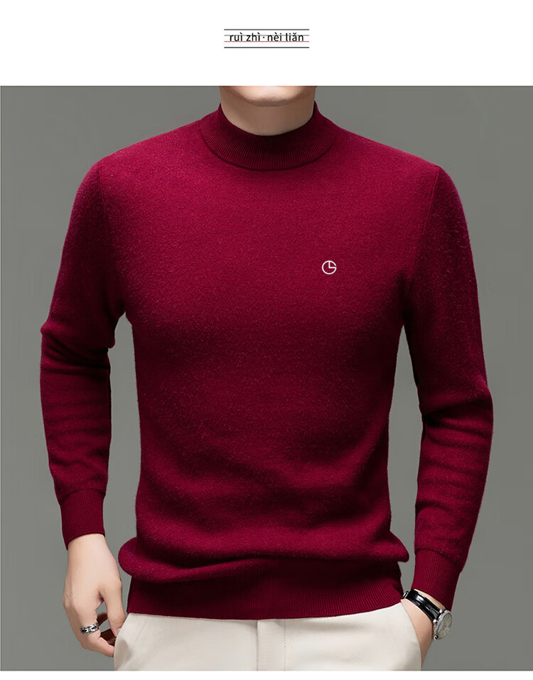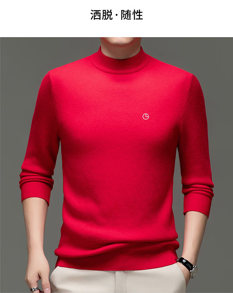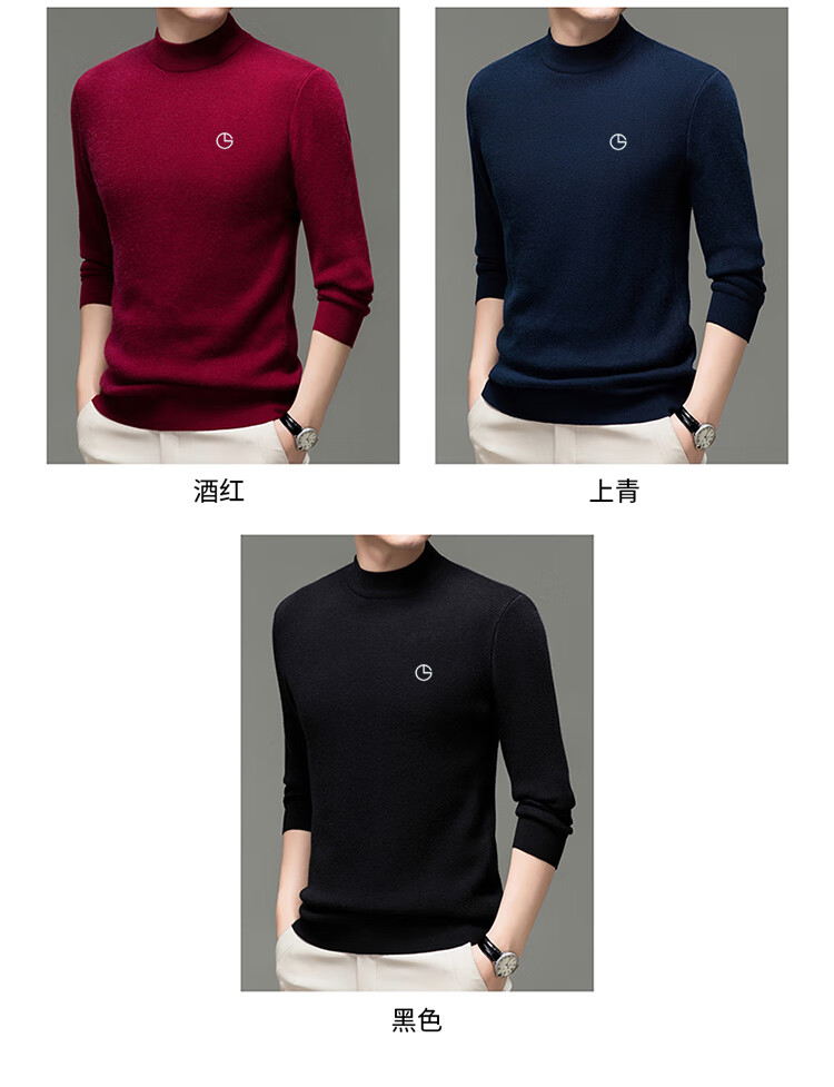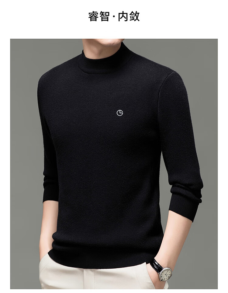 金利来羊毛衫男冬季新款半高领针织衫含羊毛打底衫保暖一体绒毛衣男装 驼色 L 推荐115-135斤