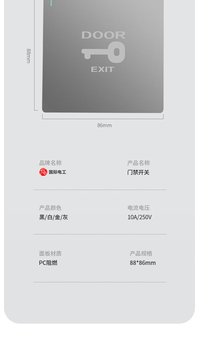 国际电工出入门禁开关暗装开门门控系统自动复位酒店宾馆叮咚门铃开关面板 【白色】门禁开关