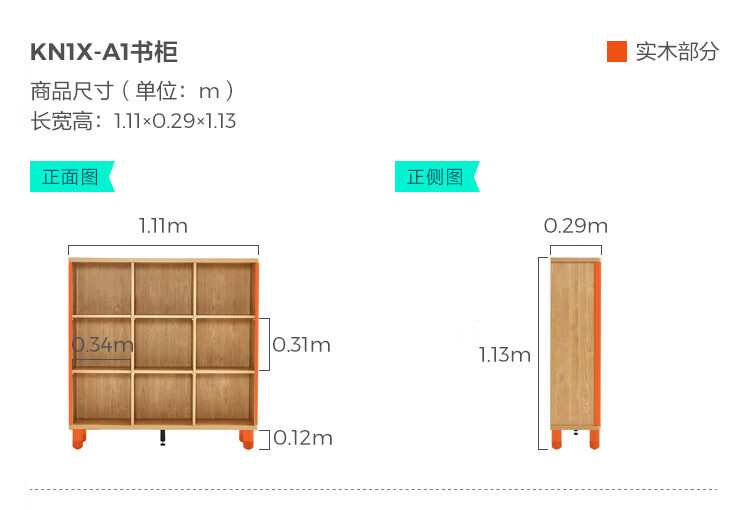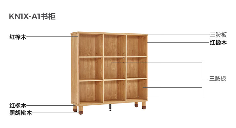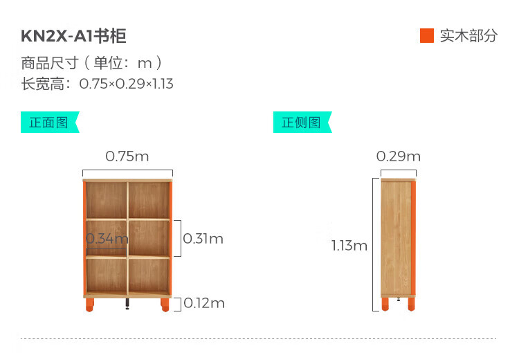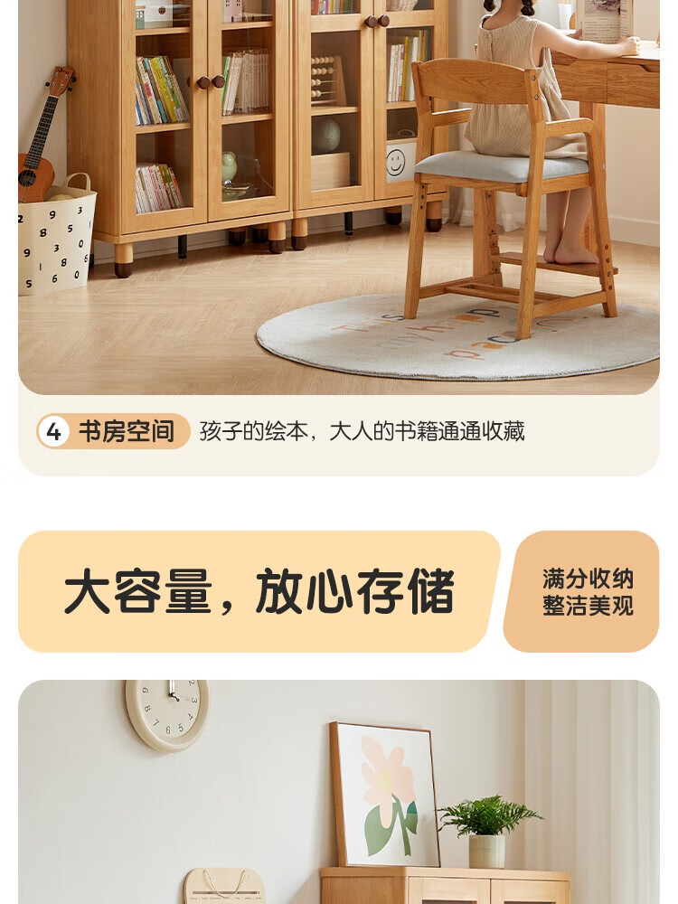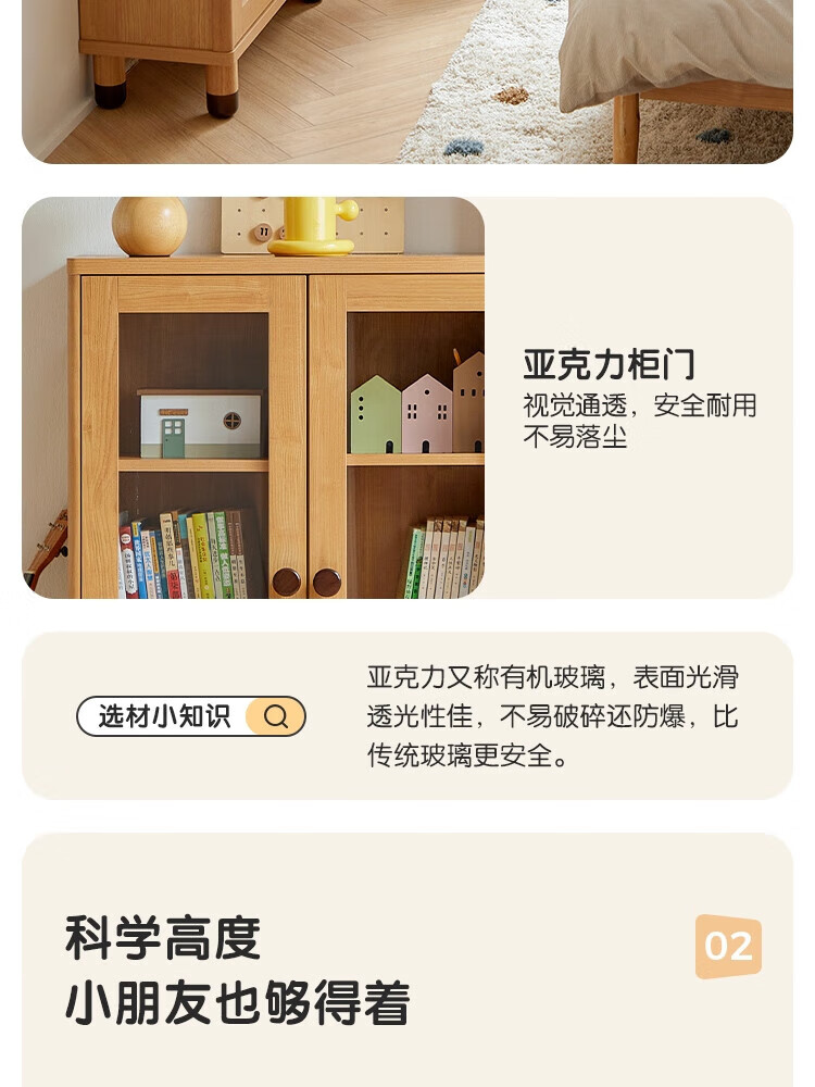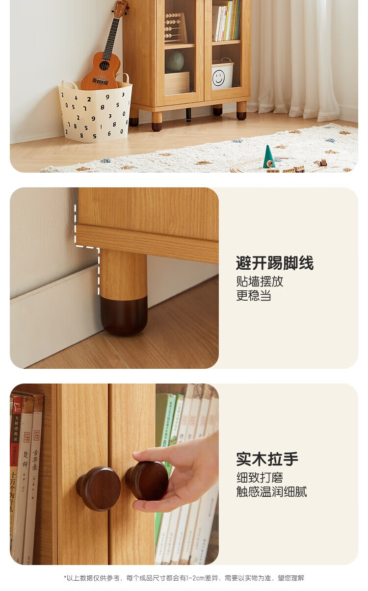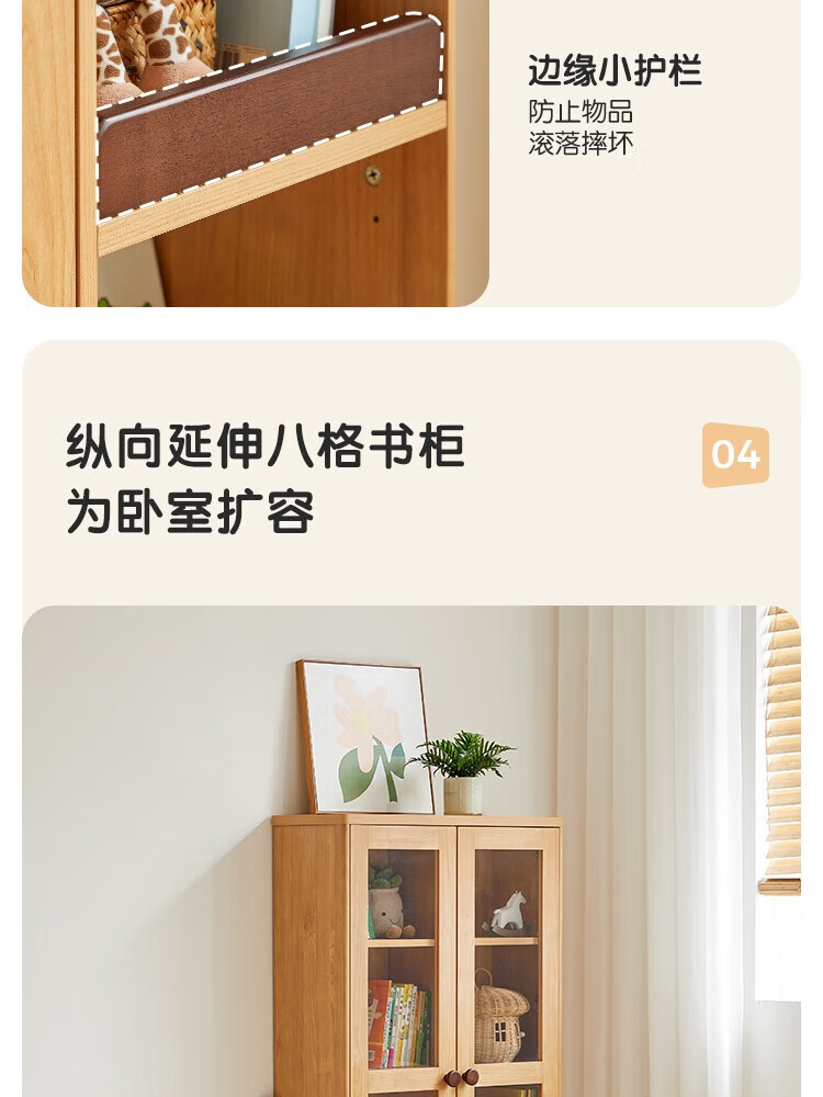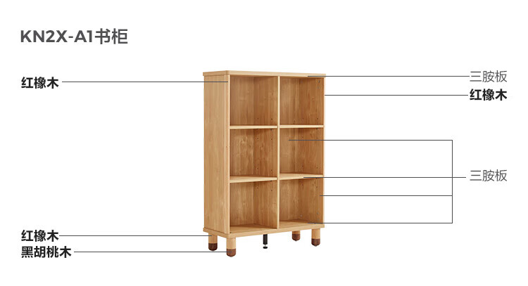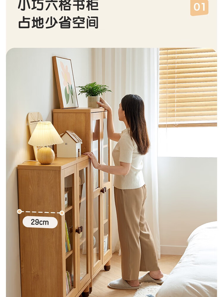 林氏家居儿童书柜实木脚书架客厅落地家用带门书橱立柜收纳储物柜LH277X1 【原木色】6格书柜*1