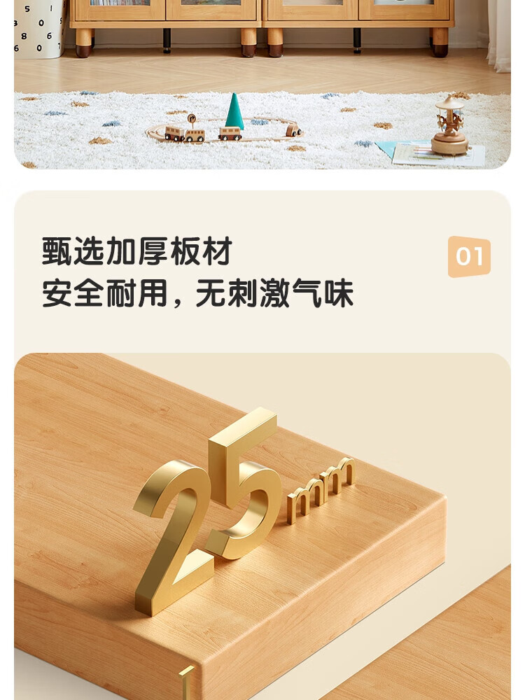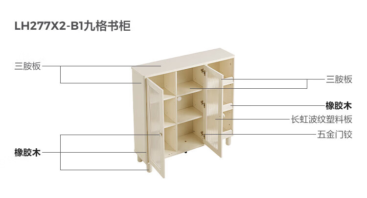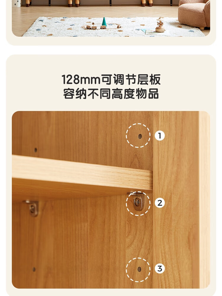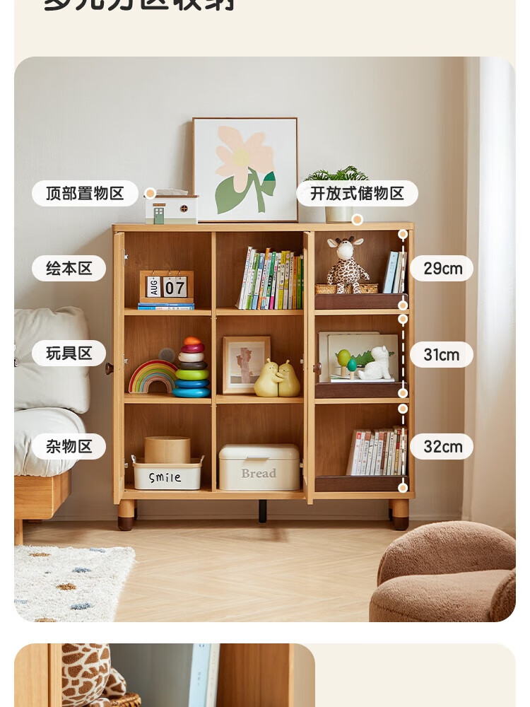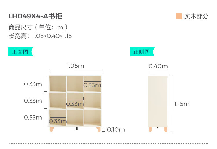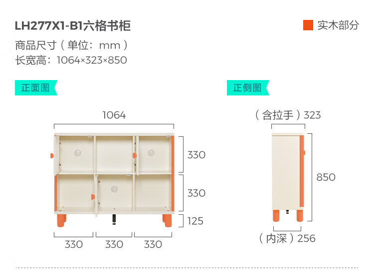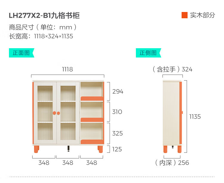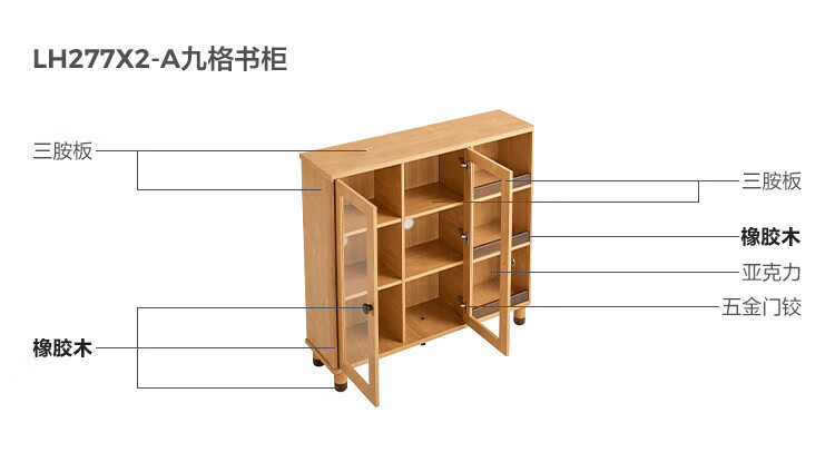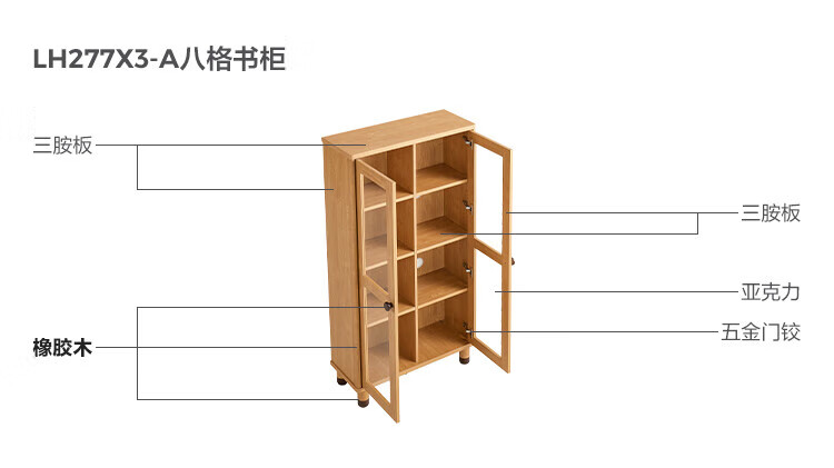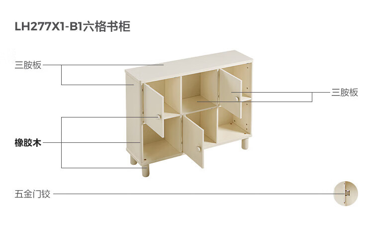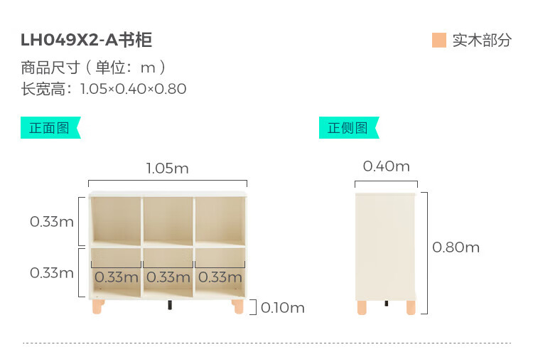 林氏家居儿童书柜实木脚书架客厅落地家用带门书橱立柜收纳储物柜LH277X1 【原木色】6格书柜*1