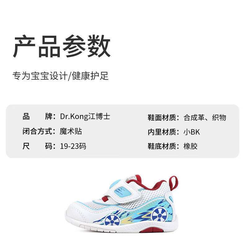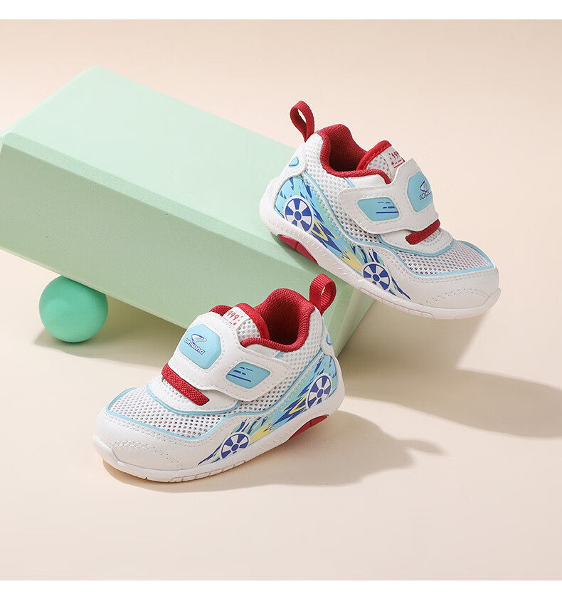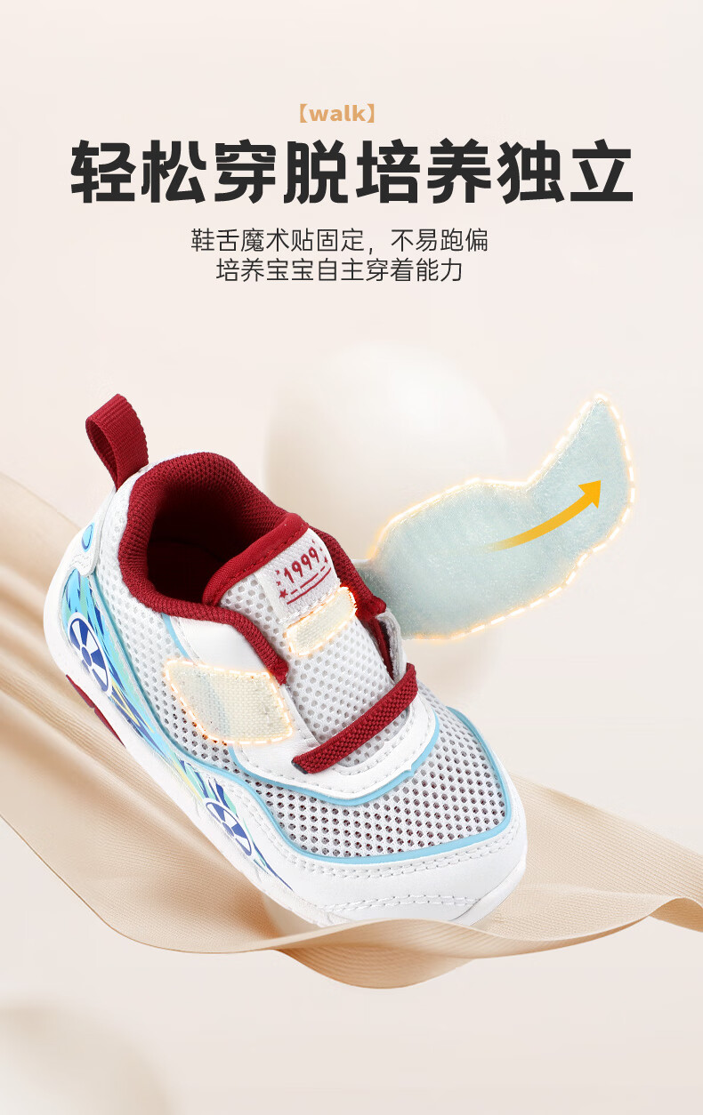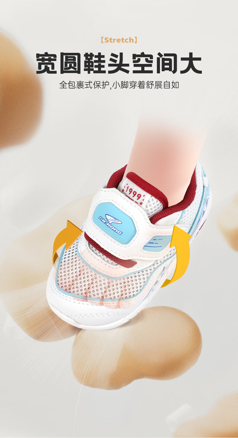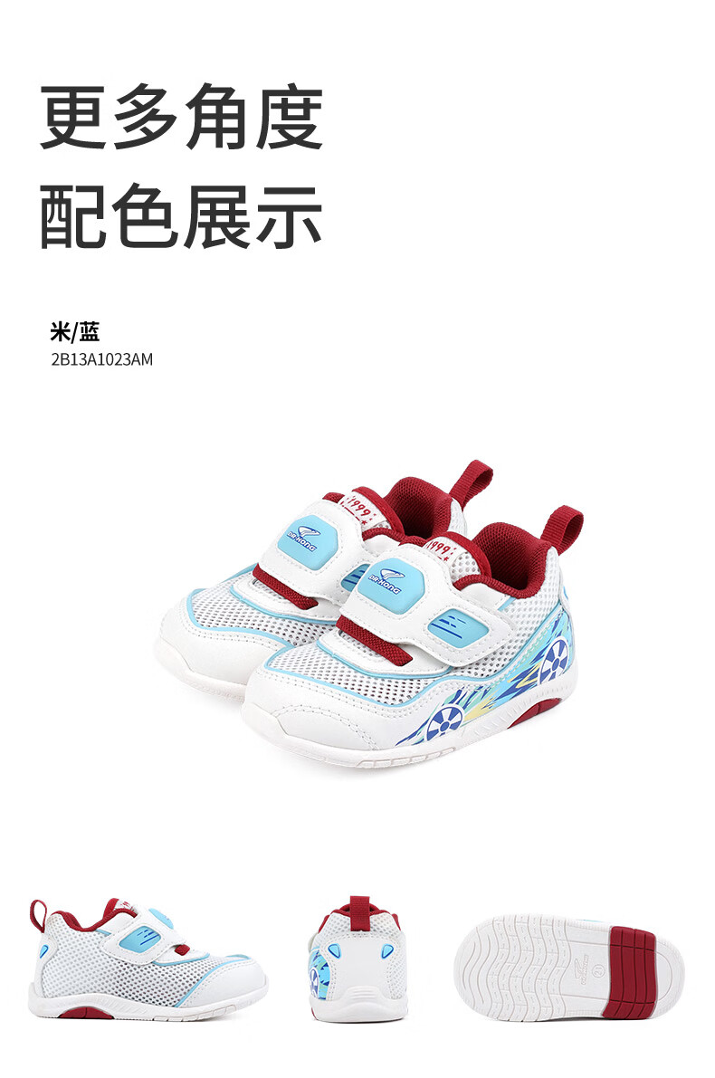 江博士春季男童网布透气宝宝步前鞋 潮流运动风童鞋 米/蓝 21 脚长约12.0-12.6