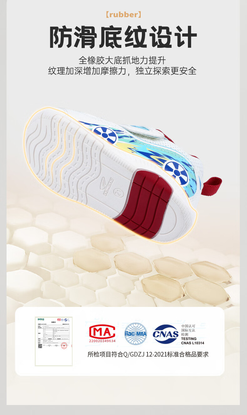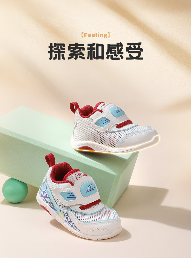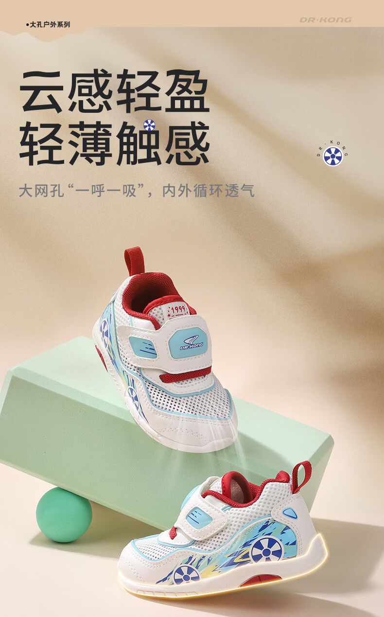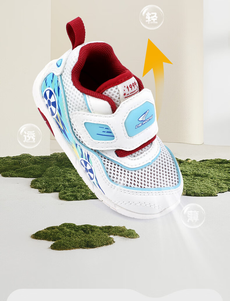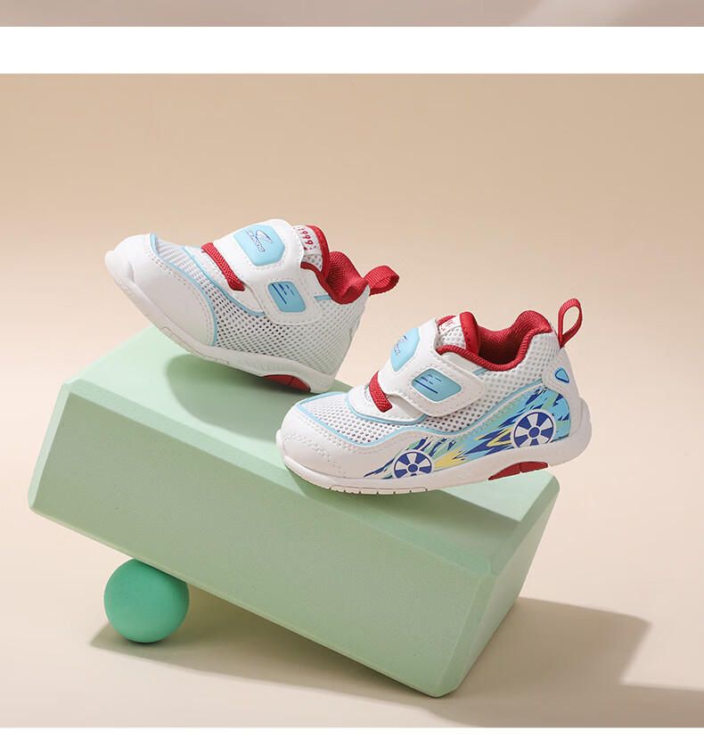 江博士春季男童网布透气宝宝步前鞋 潮流运动风童鞋 米/蓝 21 脚长约12.0-12.6