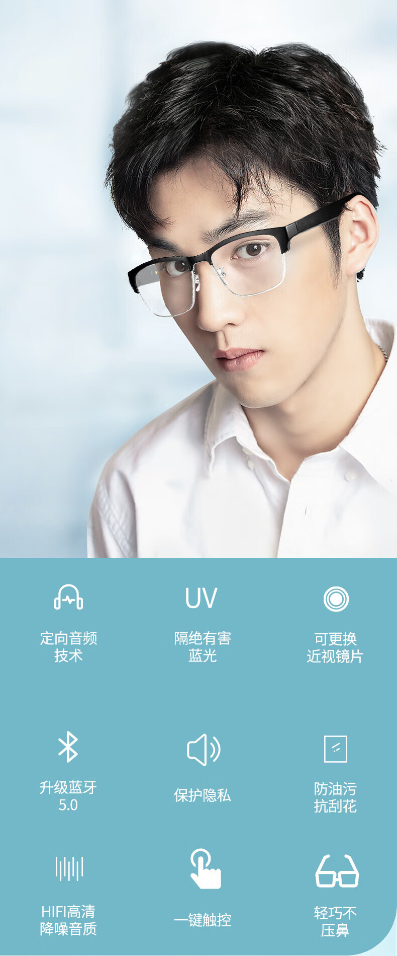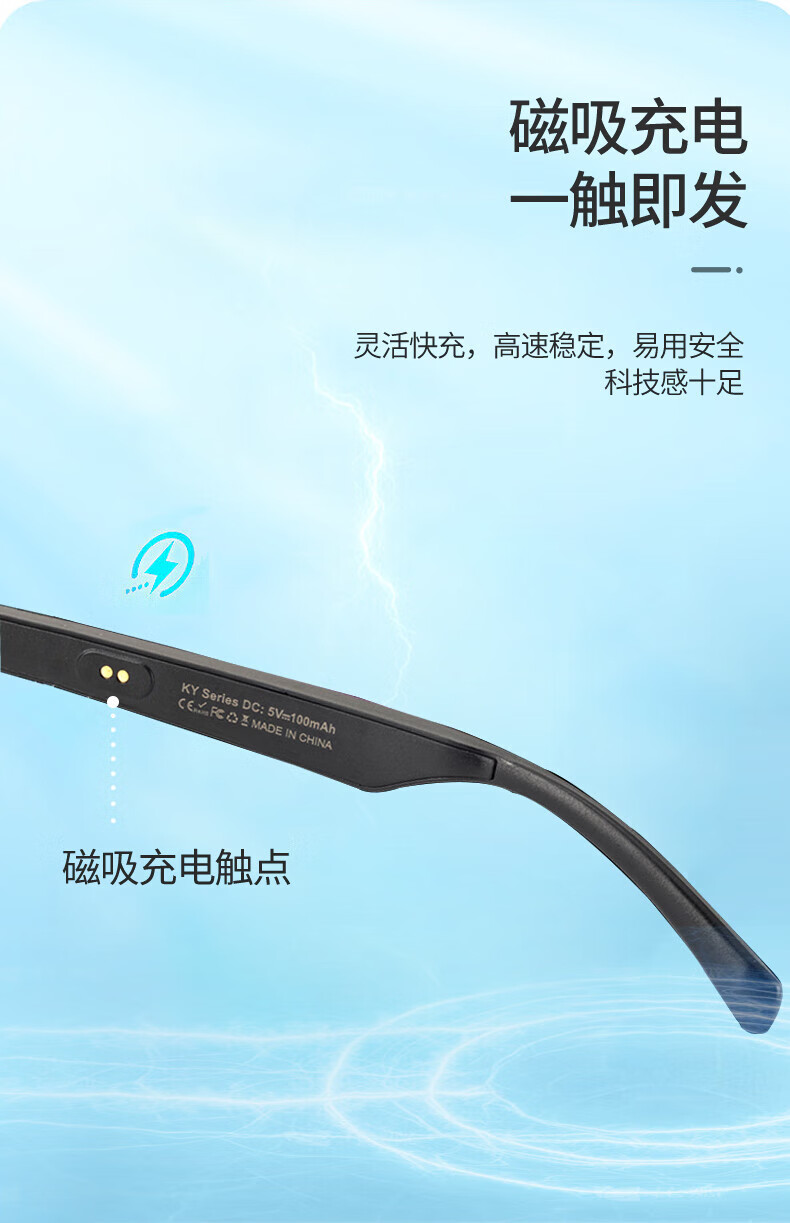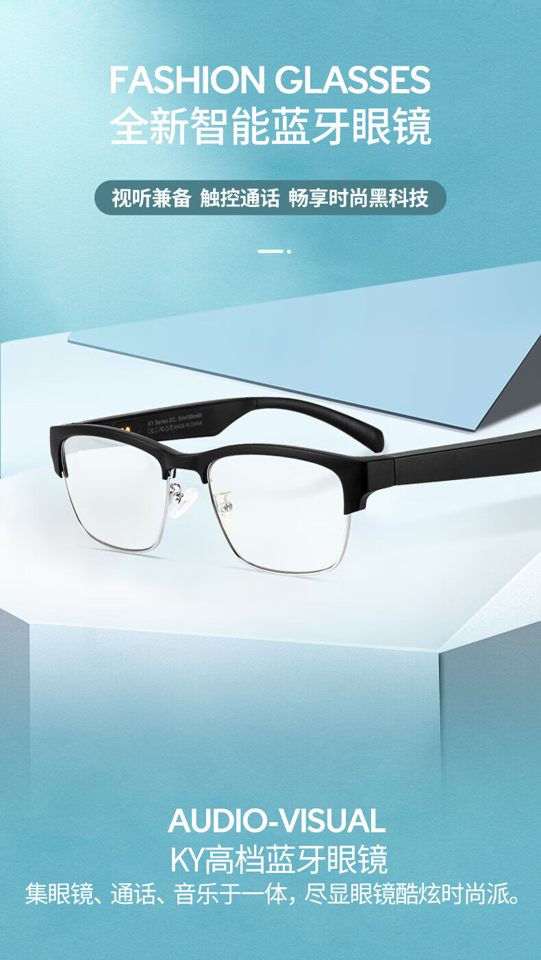 园世KY 智能蓝牙眼镜立体声无线运动音乐耳机防蓝光太阳墨镜近视眼镜开车通话开放双耳