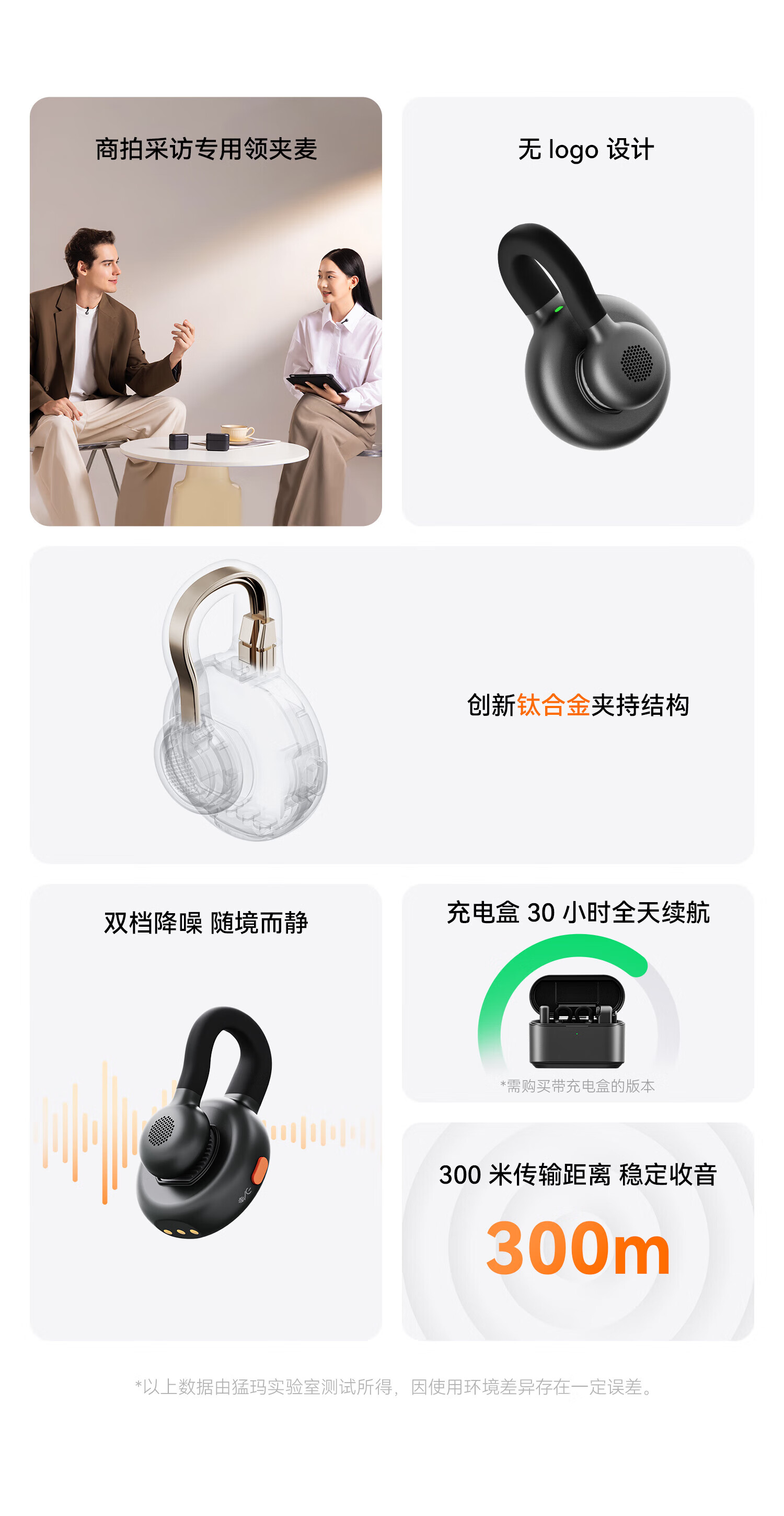 猛玛【政府补贴】LARK M2猛犸麦克风一拖二领夹麦克风无logo隐藏式麦克风无线麦克风主播专用收音麦m2 【Type-C版】一拖二带充电盒