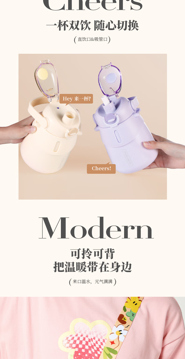皇家洛克 ROYALLOCKE咖啡杯便携316不锈钢保温杯女士高颜值不锈钢材质杯子原创IP卡通 【316不锈钢】粉色