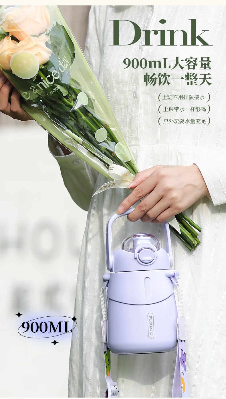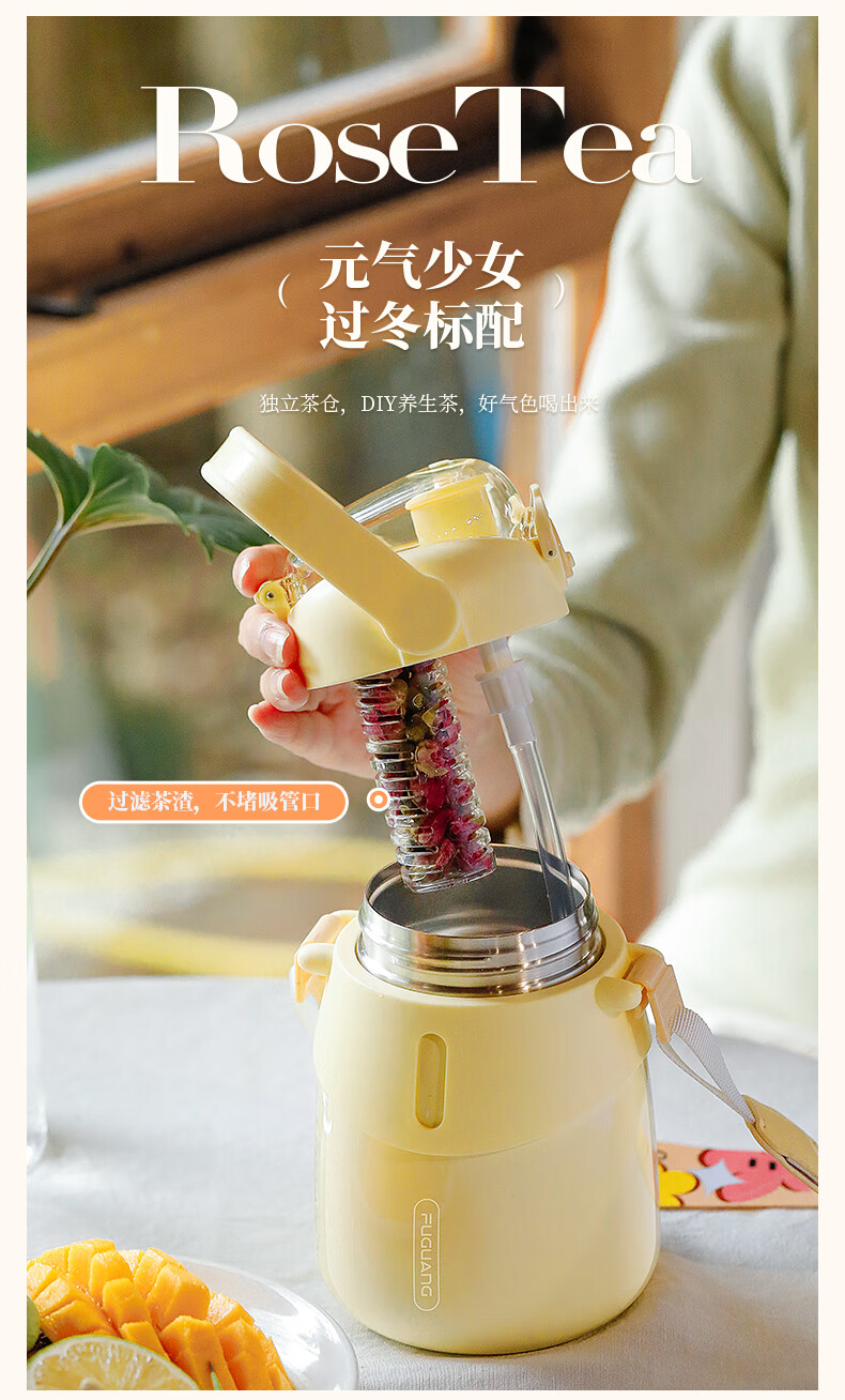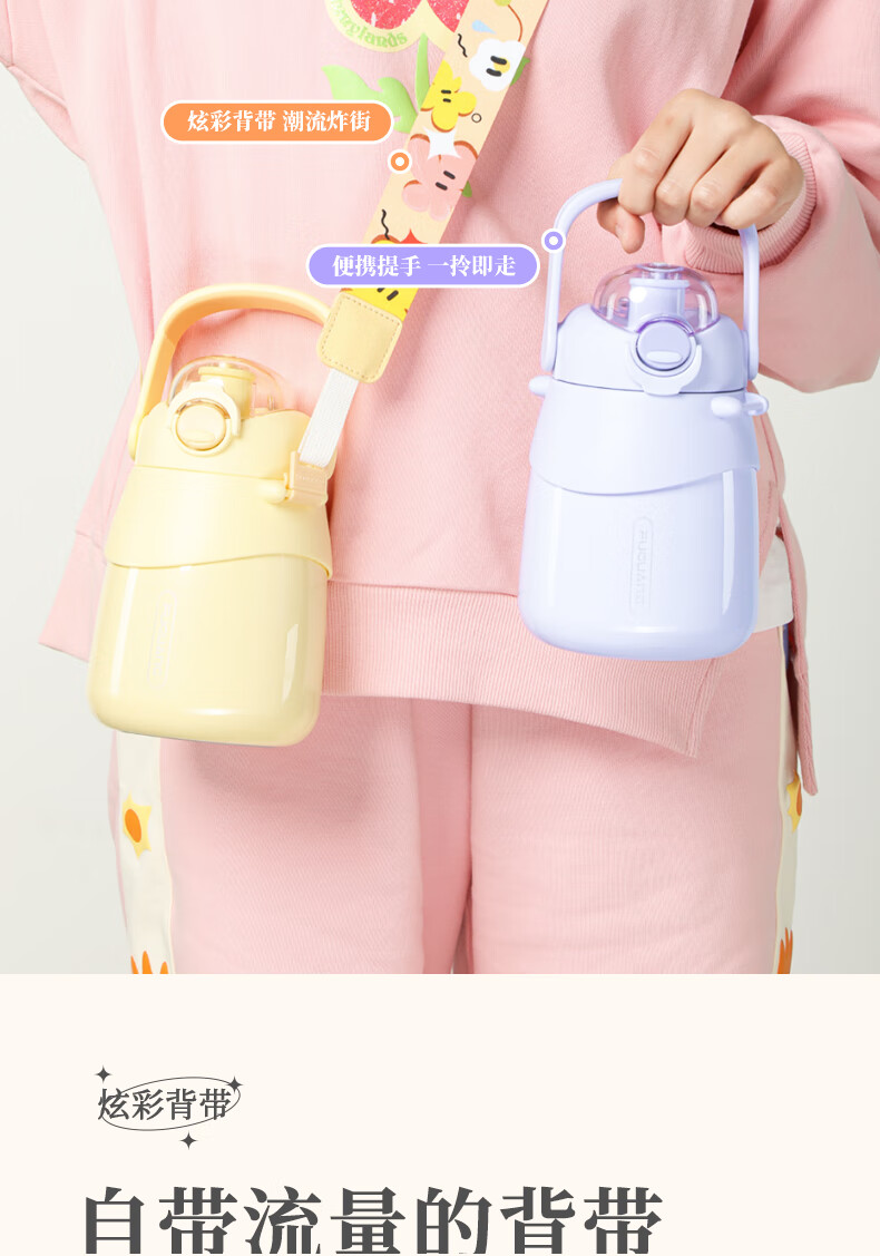 富光 清晨保温大肚杯女高颜值儿童学生大容量吸管水杯子网红胖胖水杯 黄色 900ml (抗菌内胆)