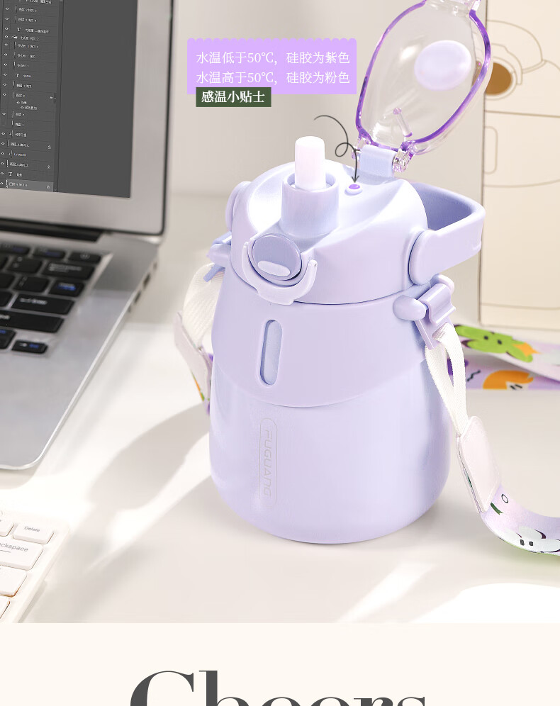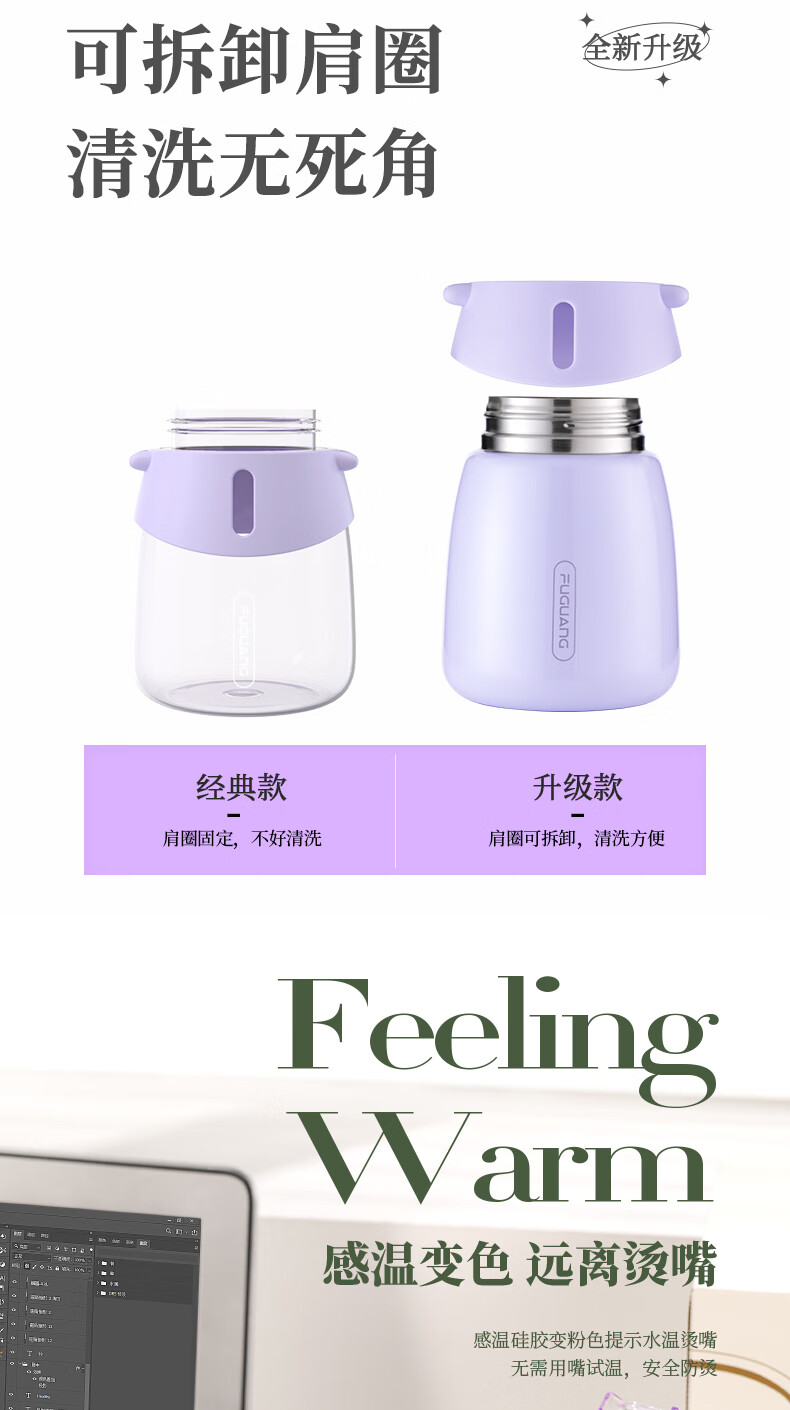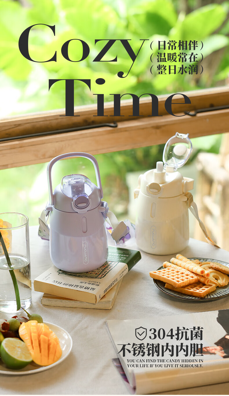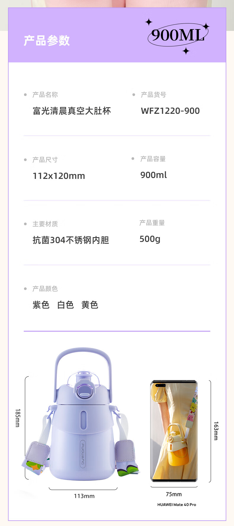 富光 清晨保温大肚杯女高颜值儿童学生大容量吸管水杯子网红胖胖水杯 黄色 900ml (抗菌内胆)