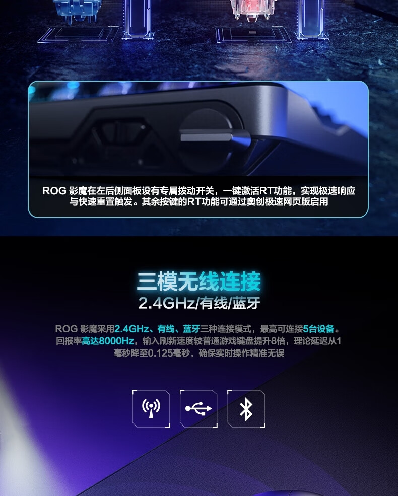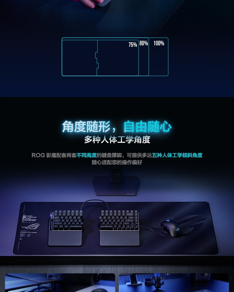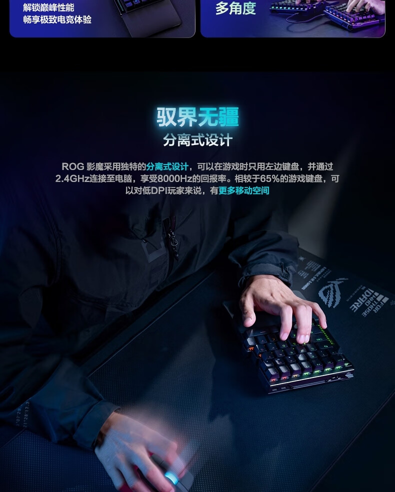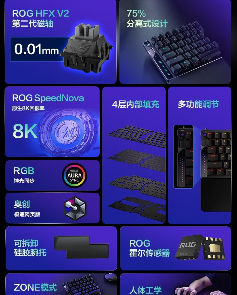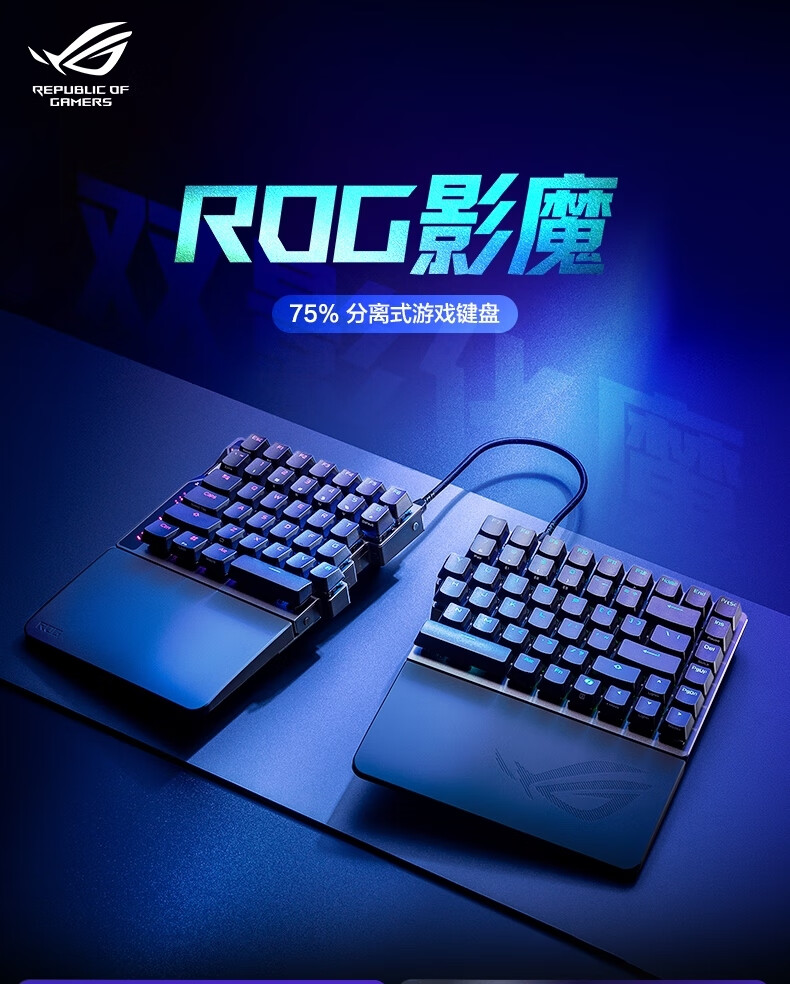 ROG影魔 75%分离式 磁轴键盘 HFX V2磁轴RT0.01电竞游戏无线键盘Gasket结构无线8K回报率无畏契约打瓦