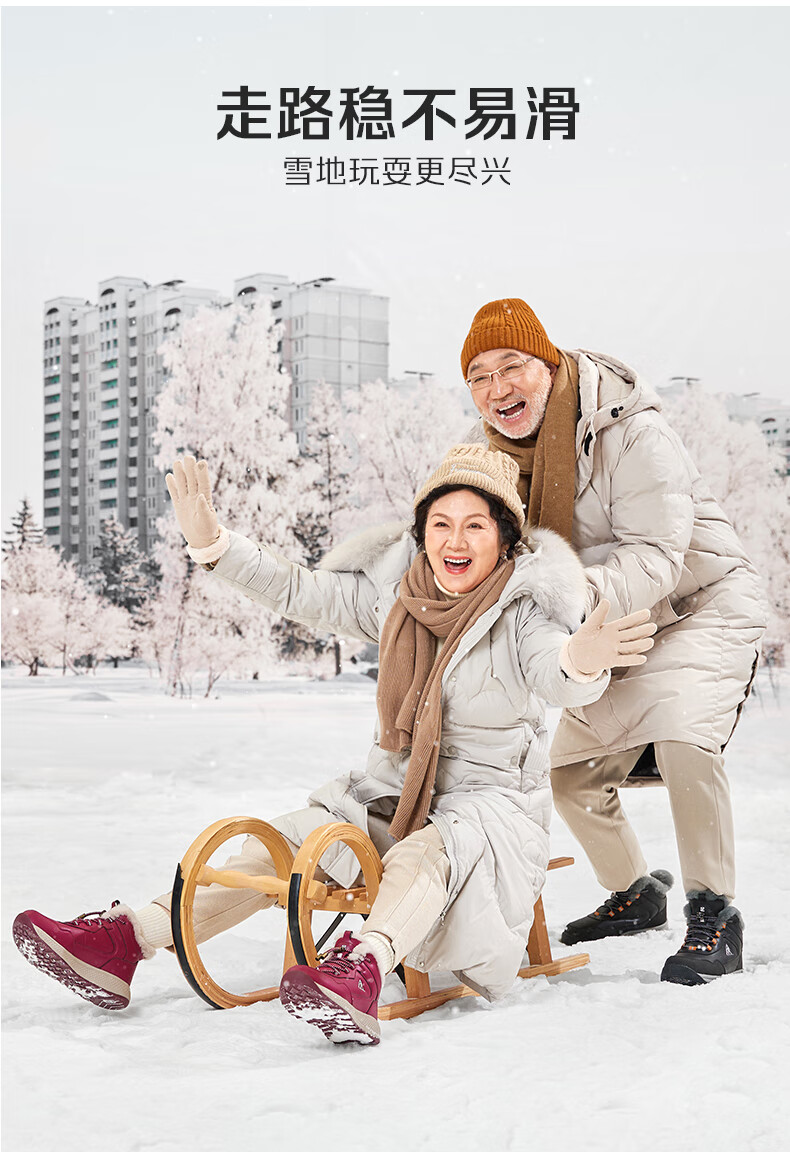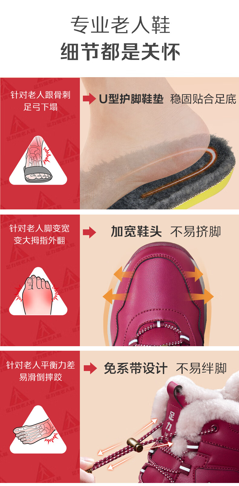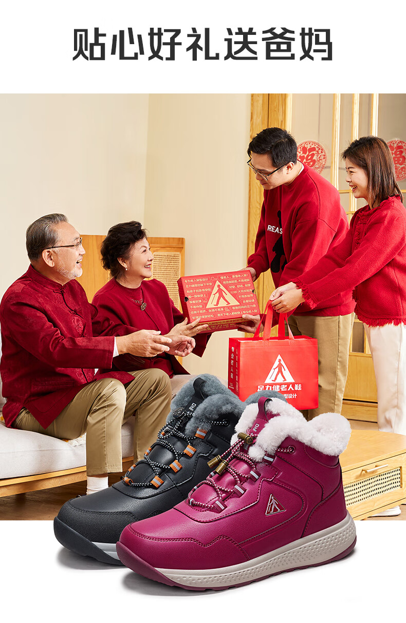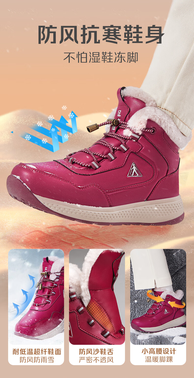 足力健老人鞋雪地靴高帮加厚棉鞋羊毛鞋2296303D 女/雅致红 38
