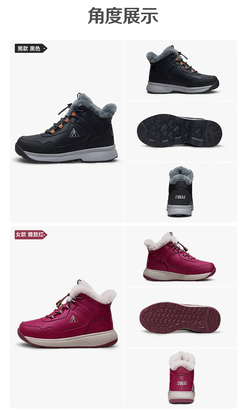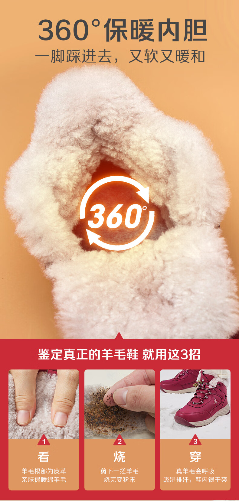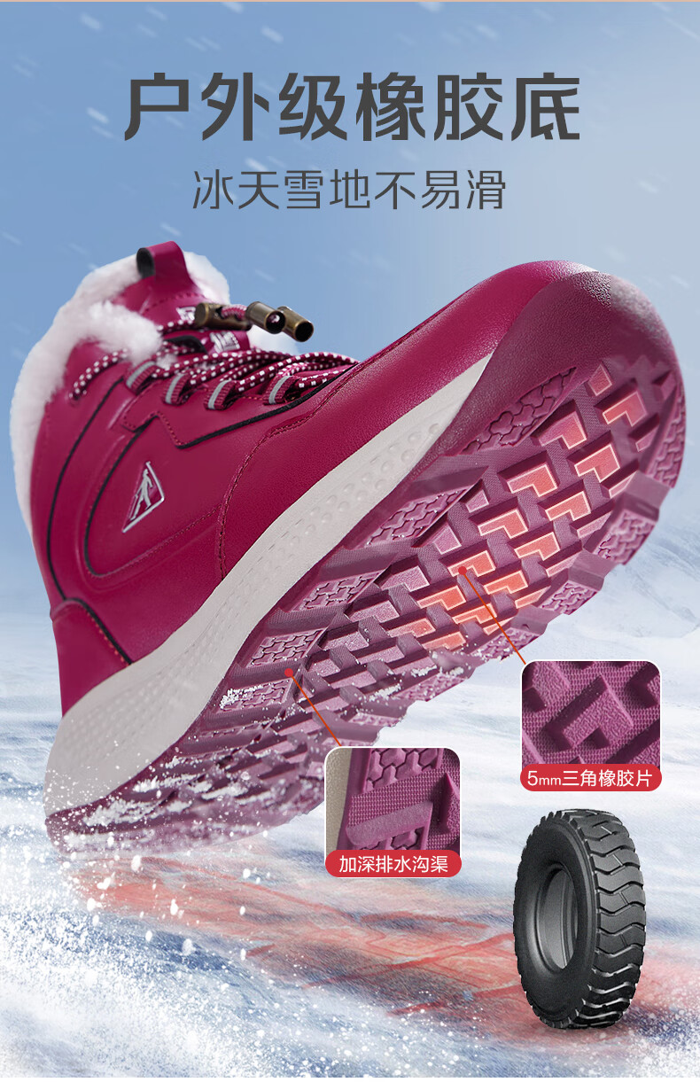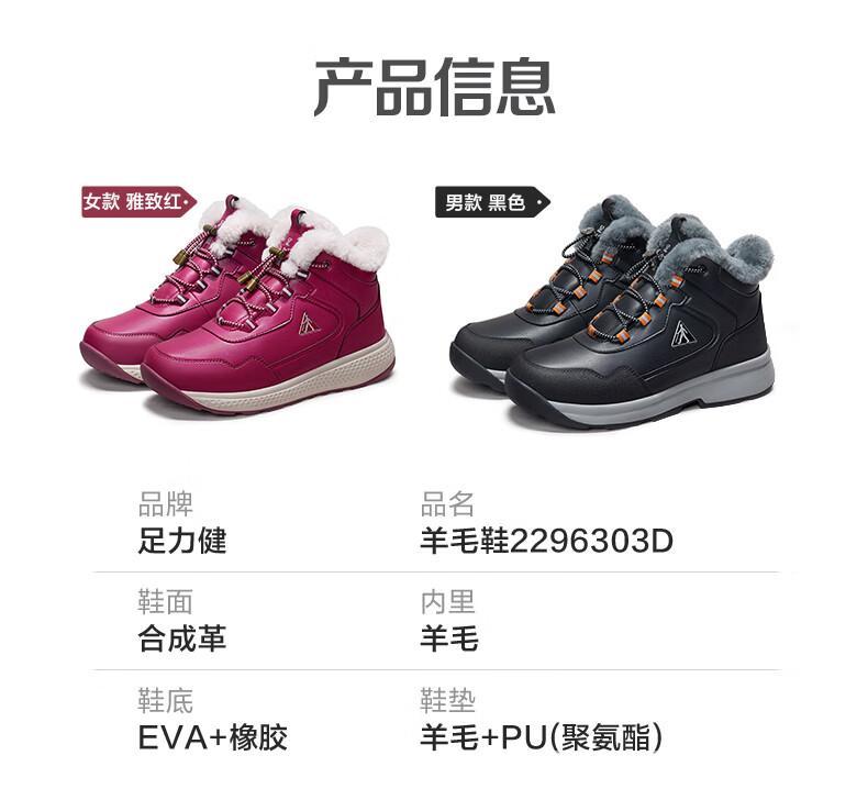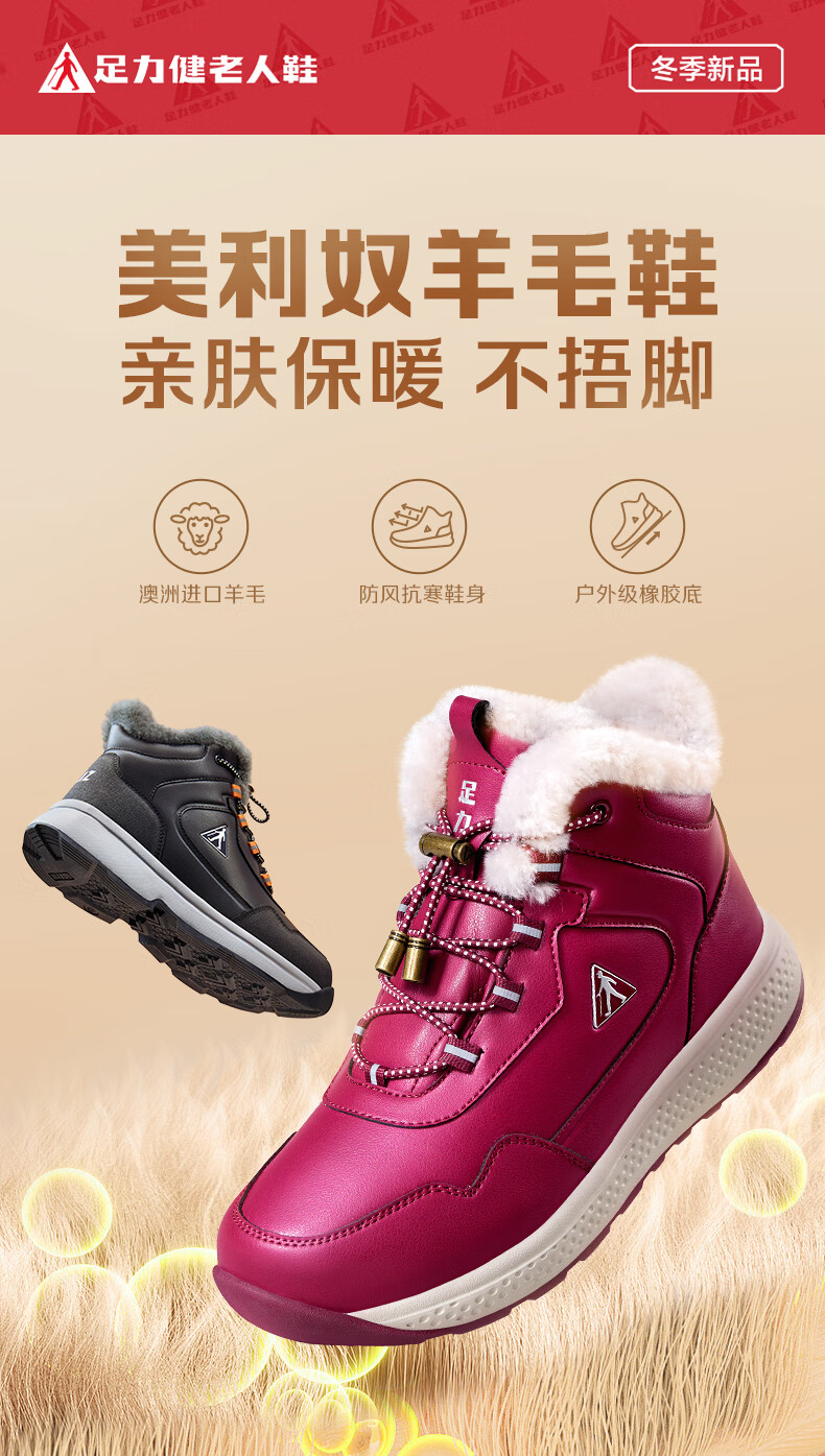 足力健老人鞋雪地靴高帮加厚棉鞋羊毛鞋2296303D 女/雅致红 38