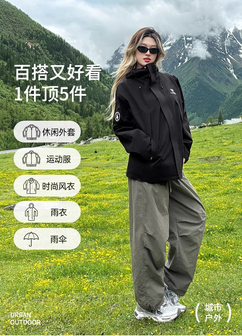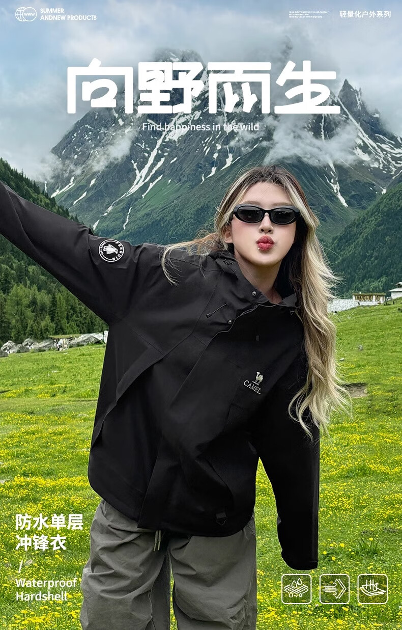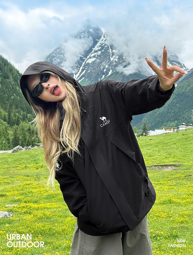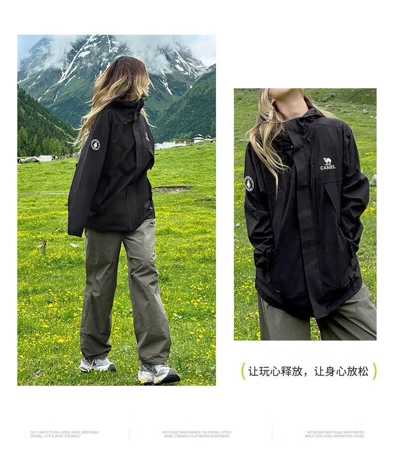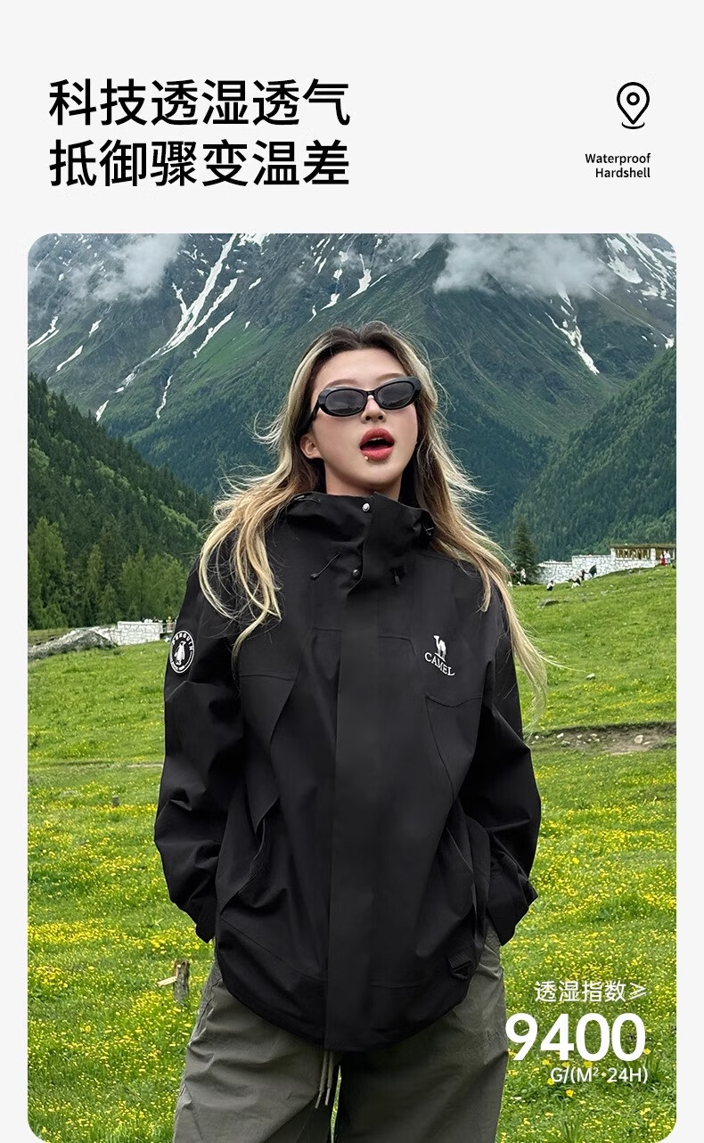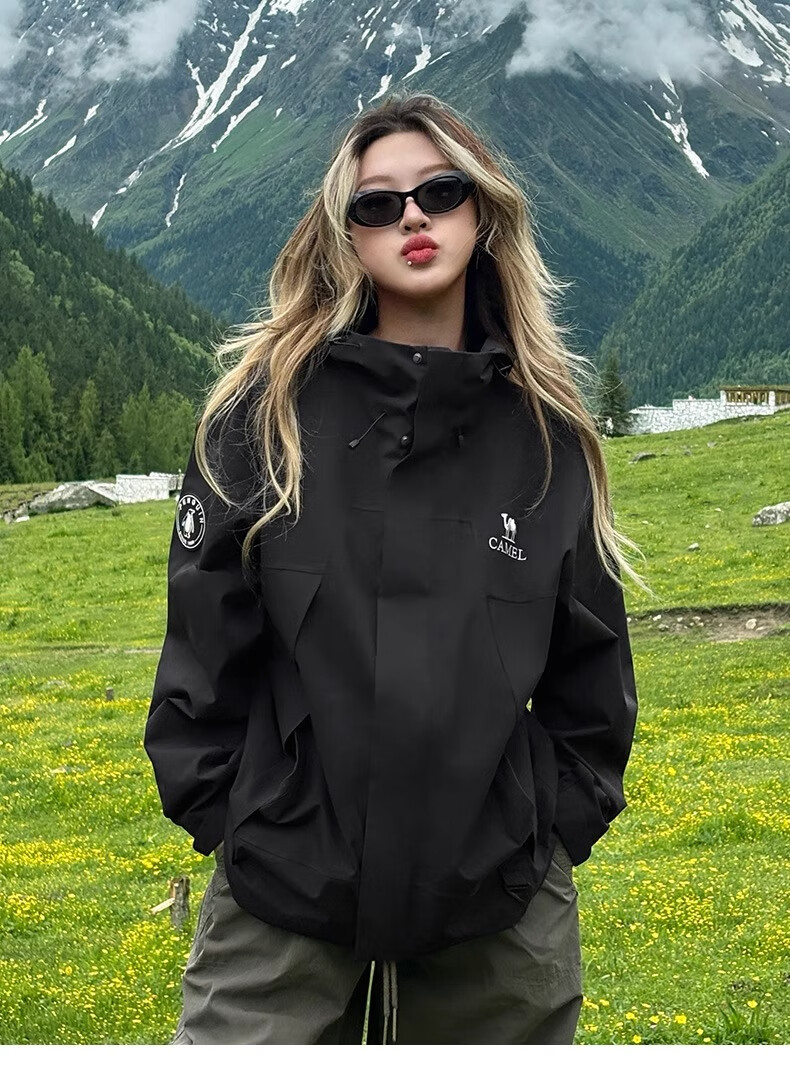 骆驼(CAMEL)女装冲锋衣春秋外套防水防风情侣同款夹克登山服