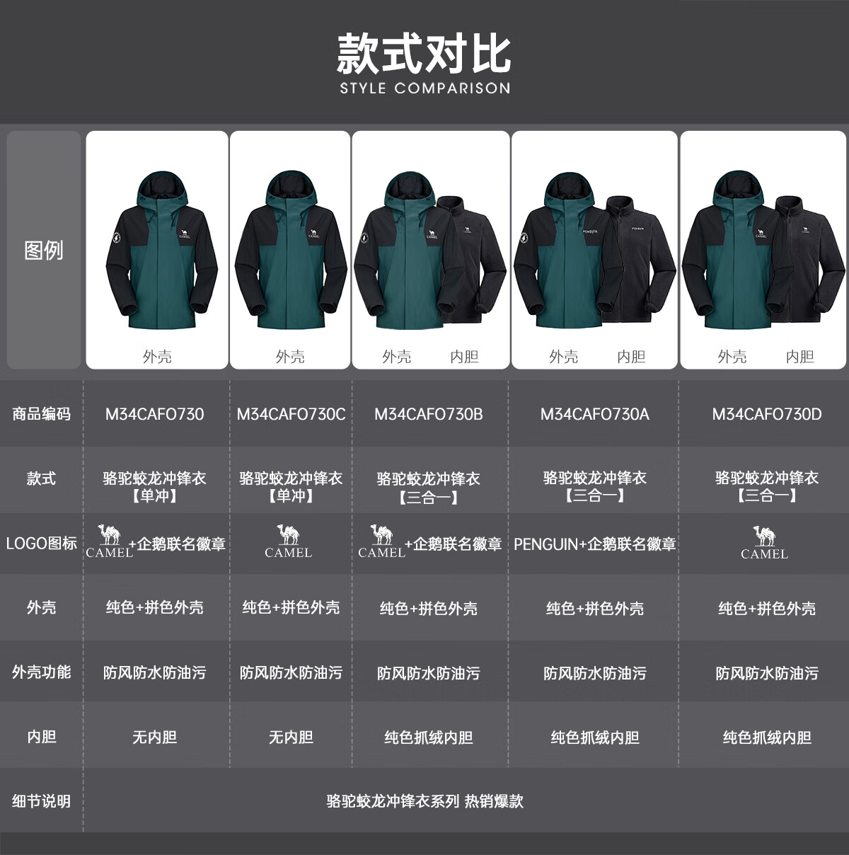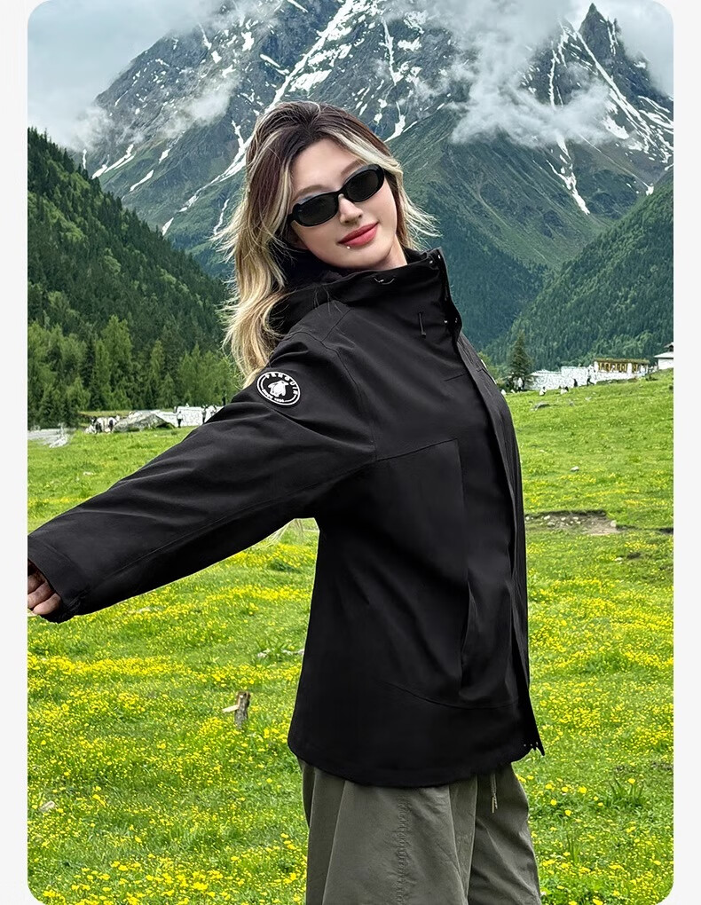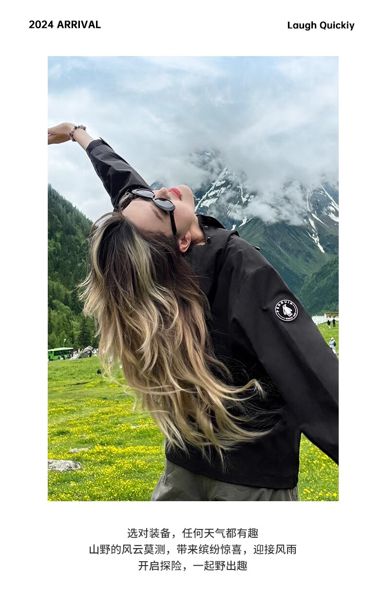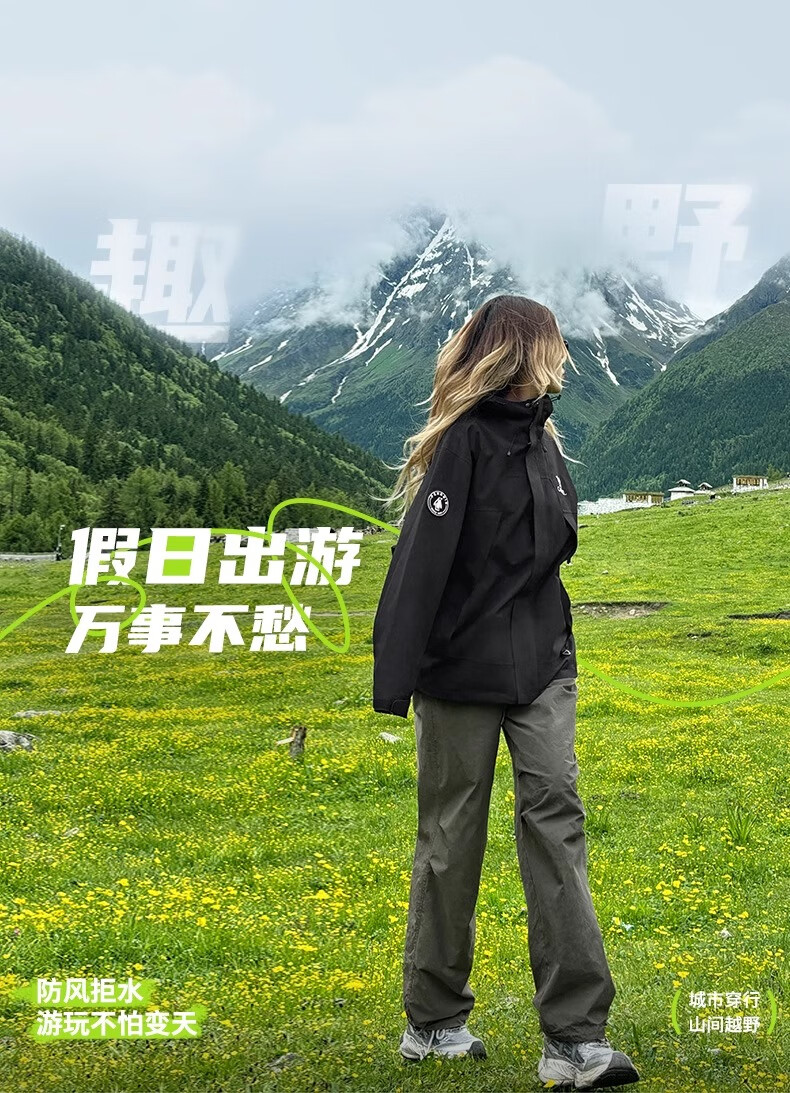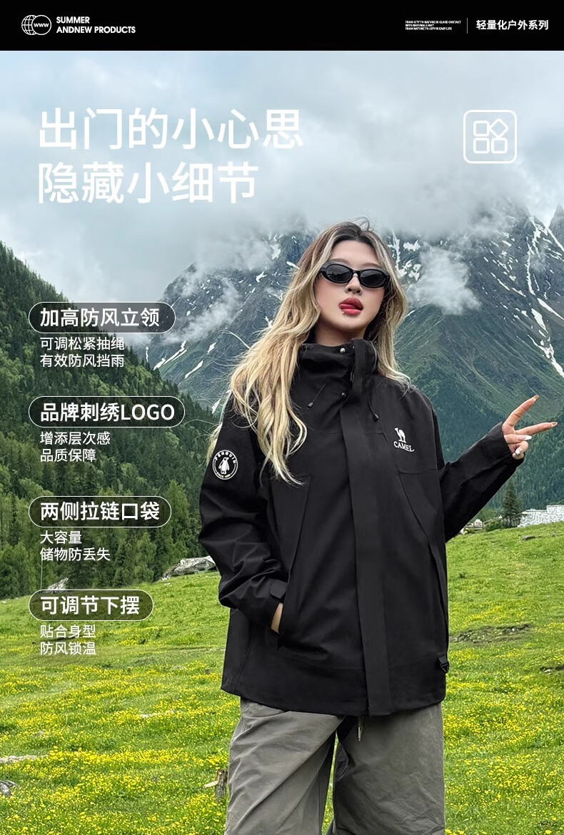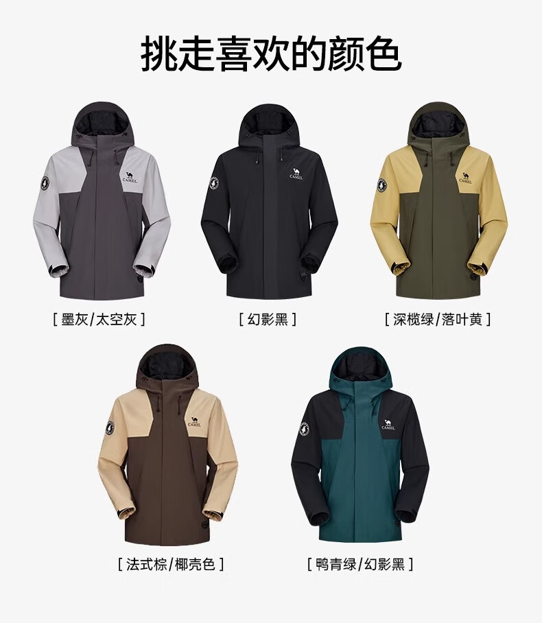 骆驼(CAMEL)女装冲锋衣春秋外套防水防风情侣同款夹克登山服