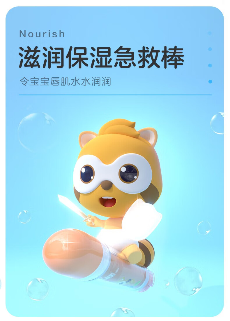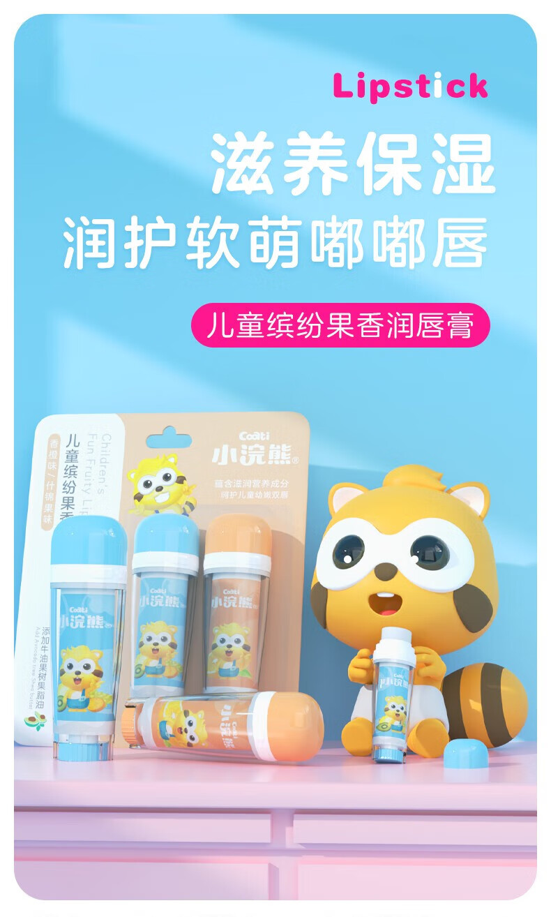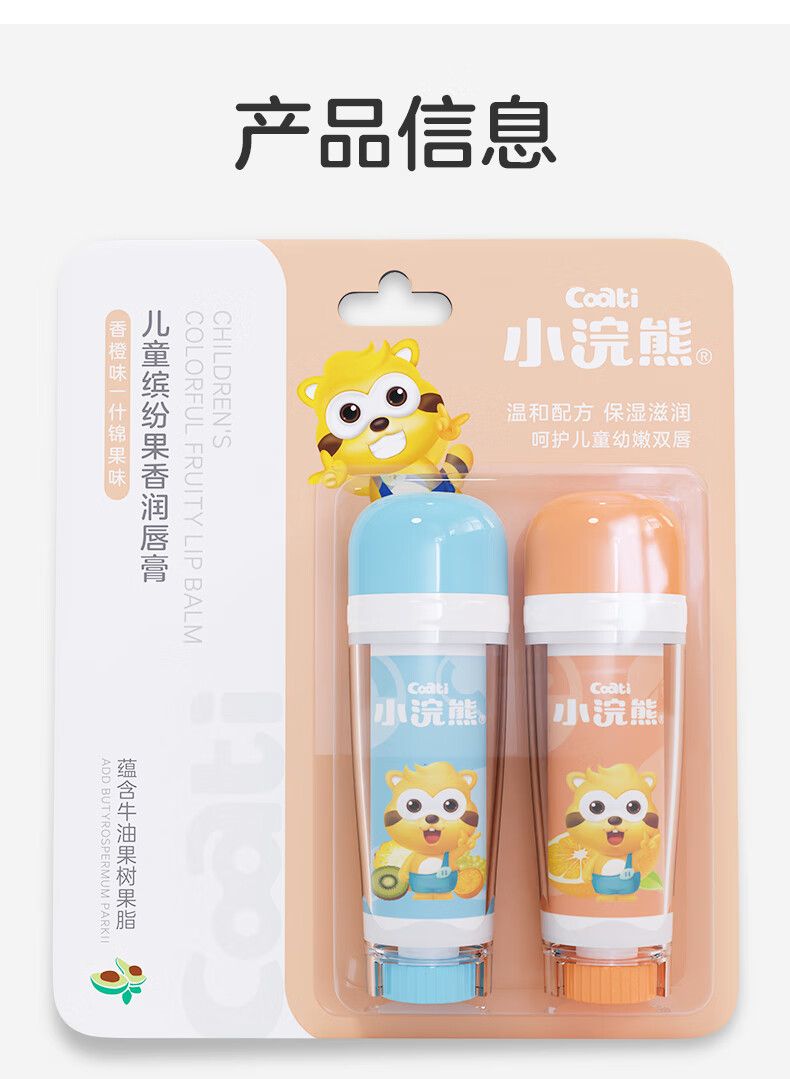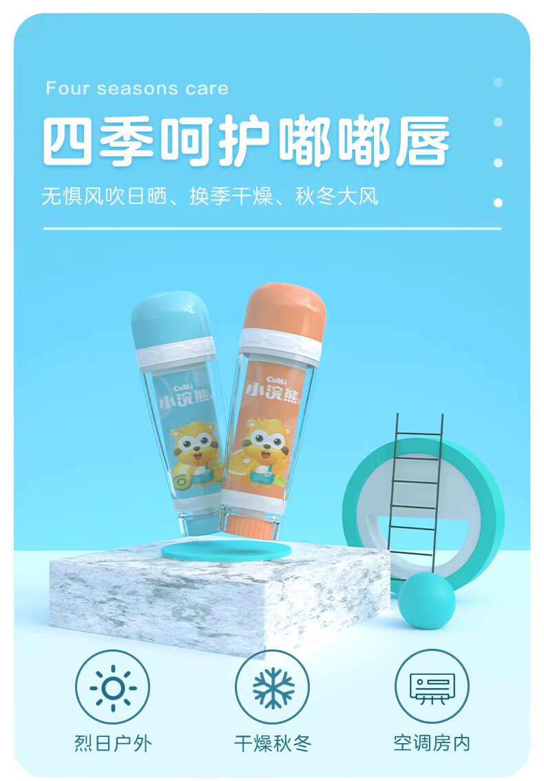 小浣熊婴儿护唇膏 儿童唇膏 宝宝润唇膏 持久保湿防干裂 儿童舒缓唇部特护膏4g*2支(蜜瓜+葡萄)