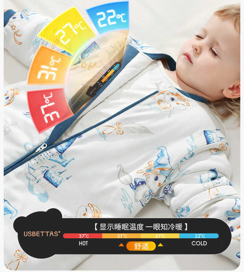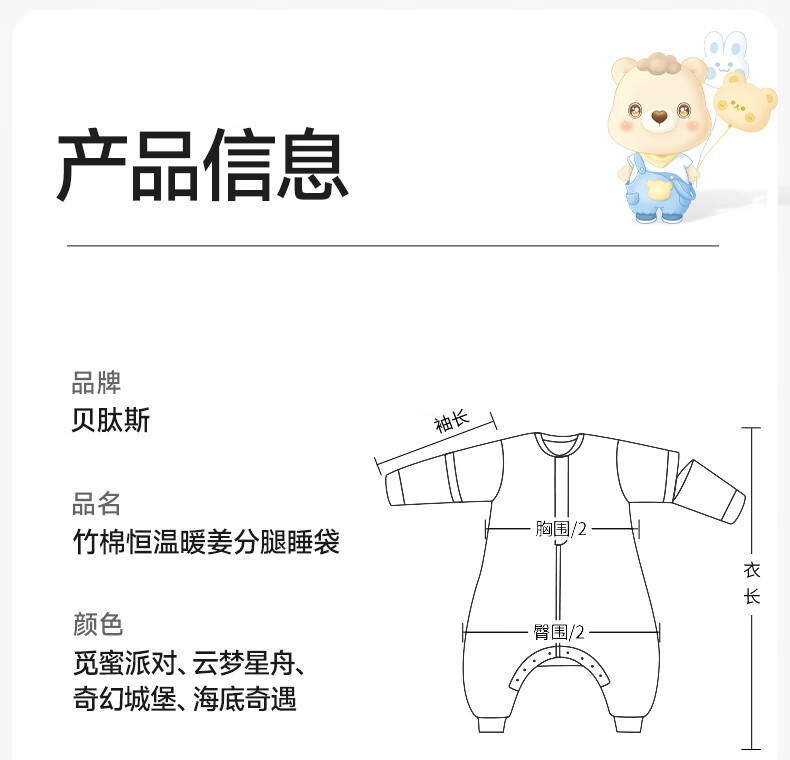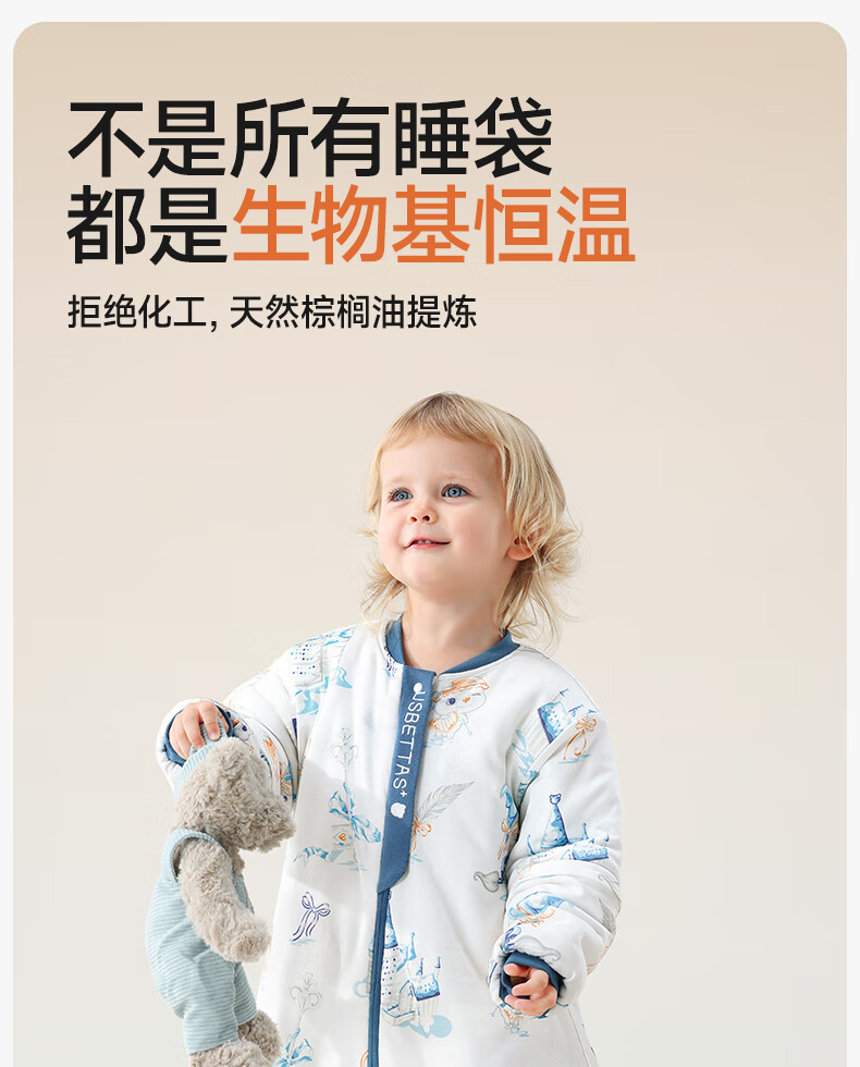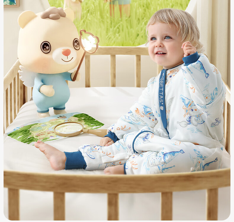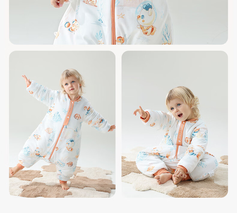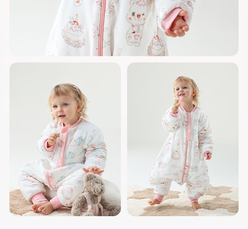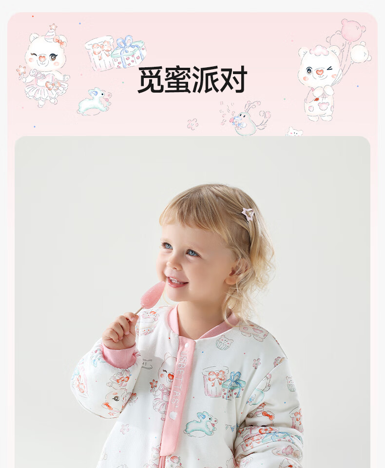 贝肽斯婴儿睡袋春秋款恒温分腿防惊跳儿童连体睡衣宝宝防踢被保暖睡袋 觅蜜派对【春秋双层 20-26℃】发热恒温 M码【适合身高80-95cm】年龄15个月-2岁