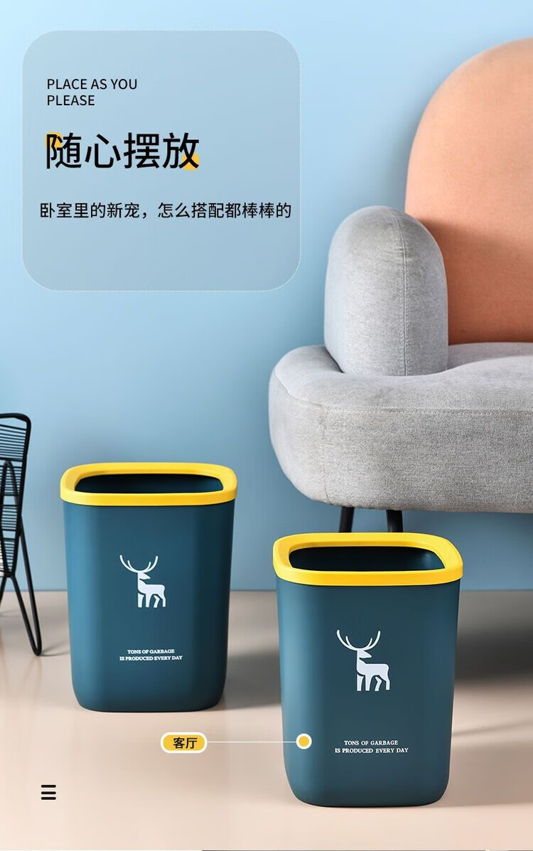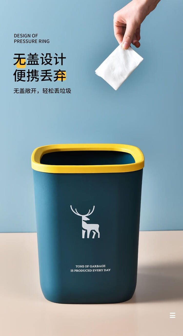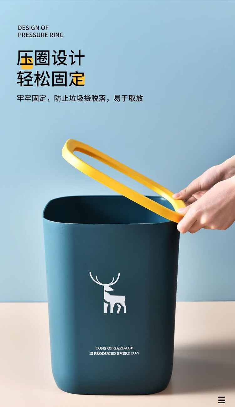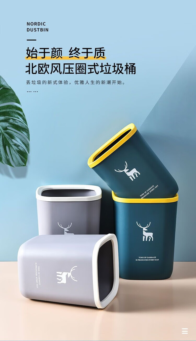 DEATKN带盖垃圾桶家用北欧风垃圾桶大容量超大号餐饮厨房卫生间压圈纸篓 一个装-压圈款 【加厚款16L】-北欧蓝+垃圾袋