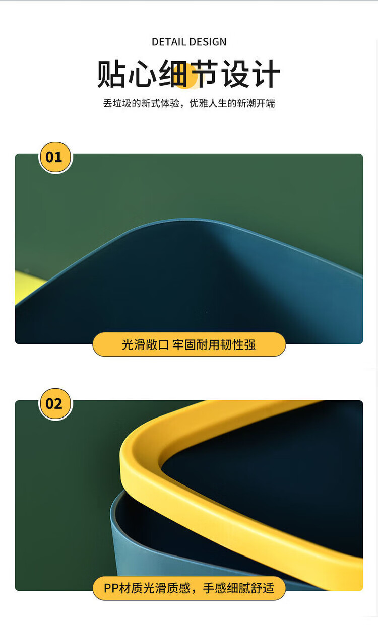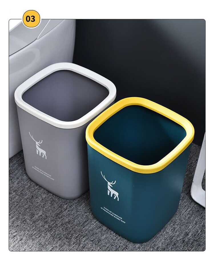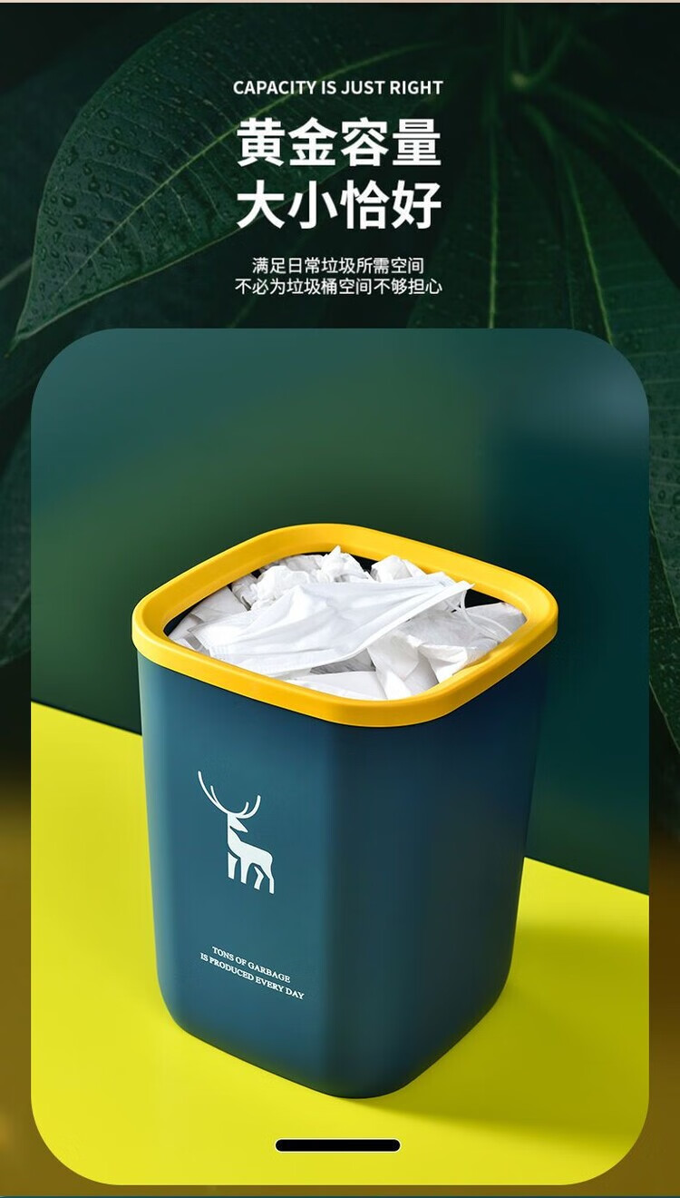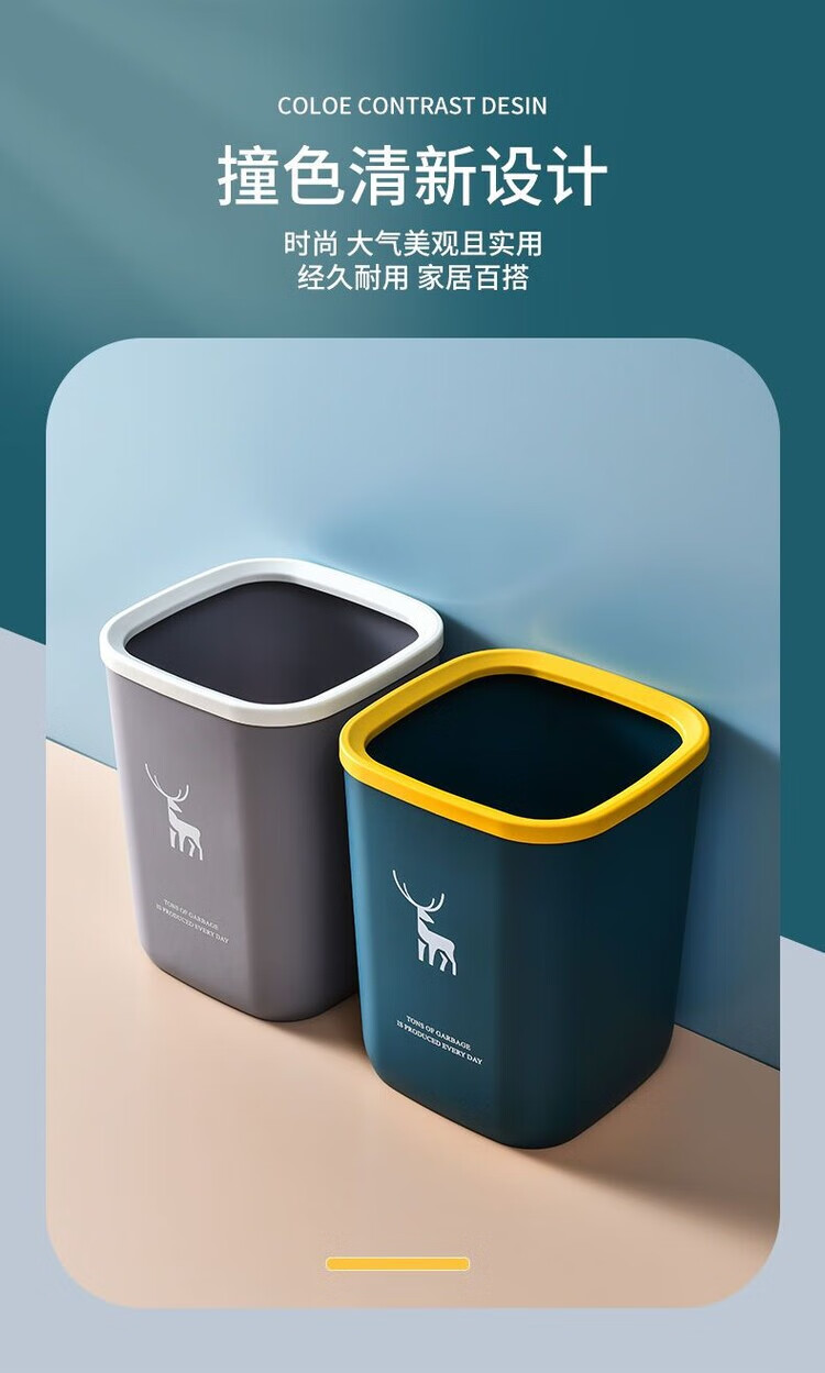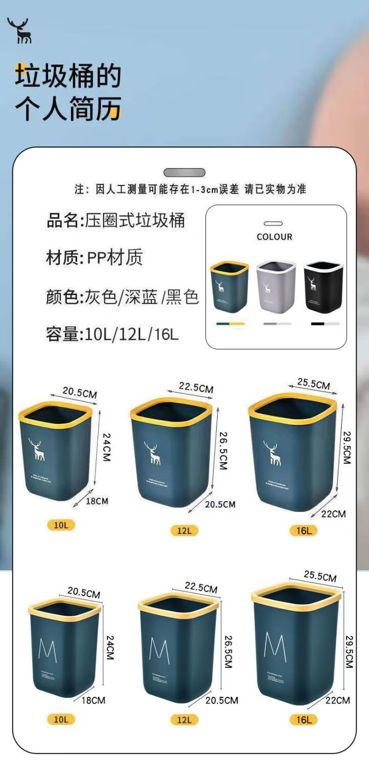 DEATKN带盖垃圾桶家用北欧风垃圾桶大容量超大号餐饮厨房卫生间压圈纸篓 一个装-压圈款 【加厚款16L】-北欧蓝+垃圾袋