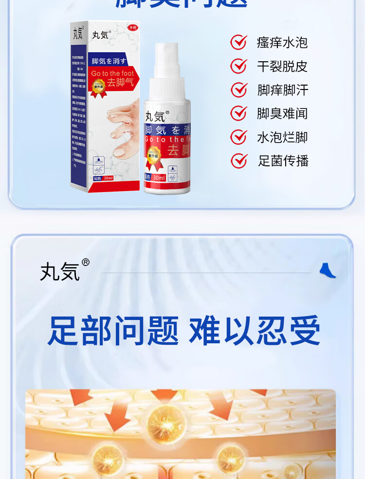 丸気日本脚气喷剂 脚气王烂脚丫汗脚臭脚痕痒足部护理真菌感染香港脚 【到手两瓶】去脚气喷剂-90%客户选择