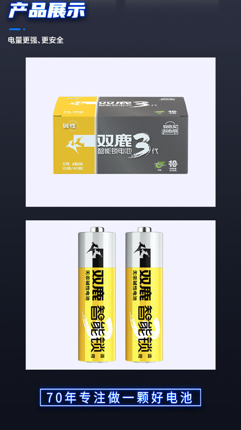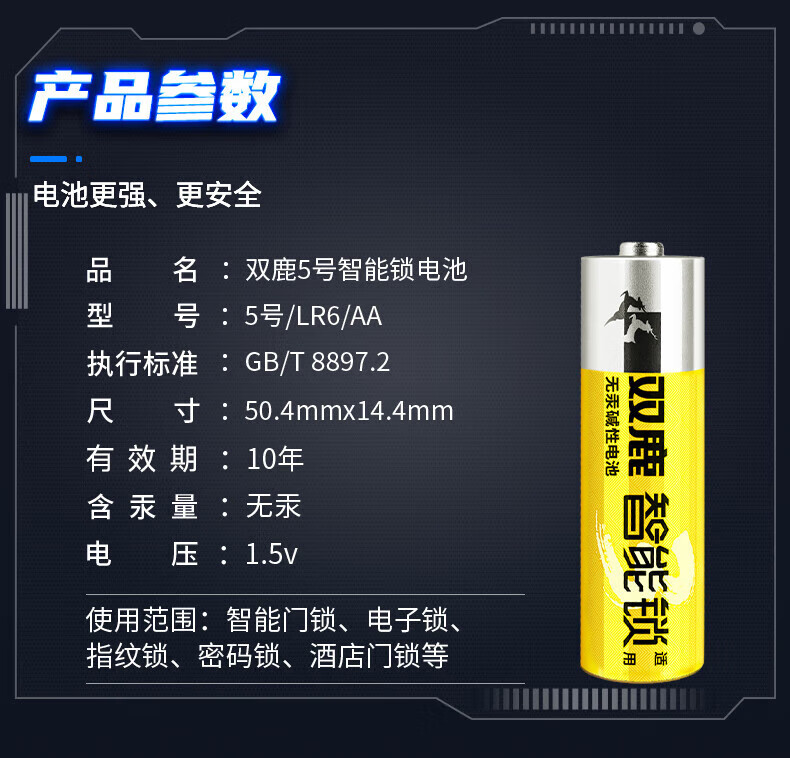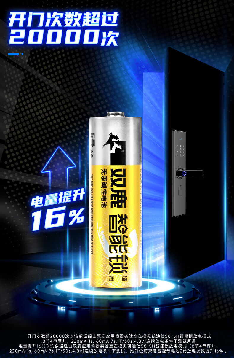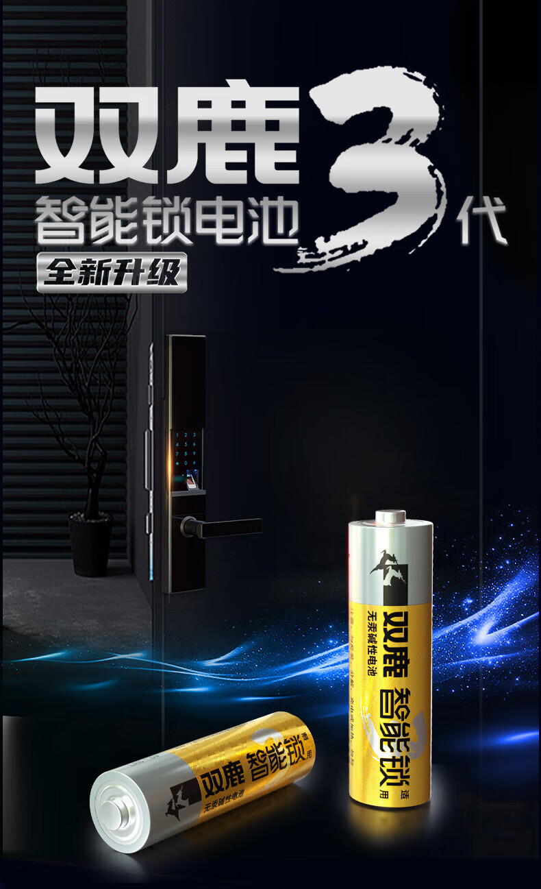双鹿智能锁电池碱性5号适用指纹锁电子门锁小米TCL德施曼PHILIPS鹿客VOC凯迪仕LR6/AA 双鹿智能锁专用电池5号电池4粒