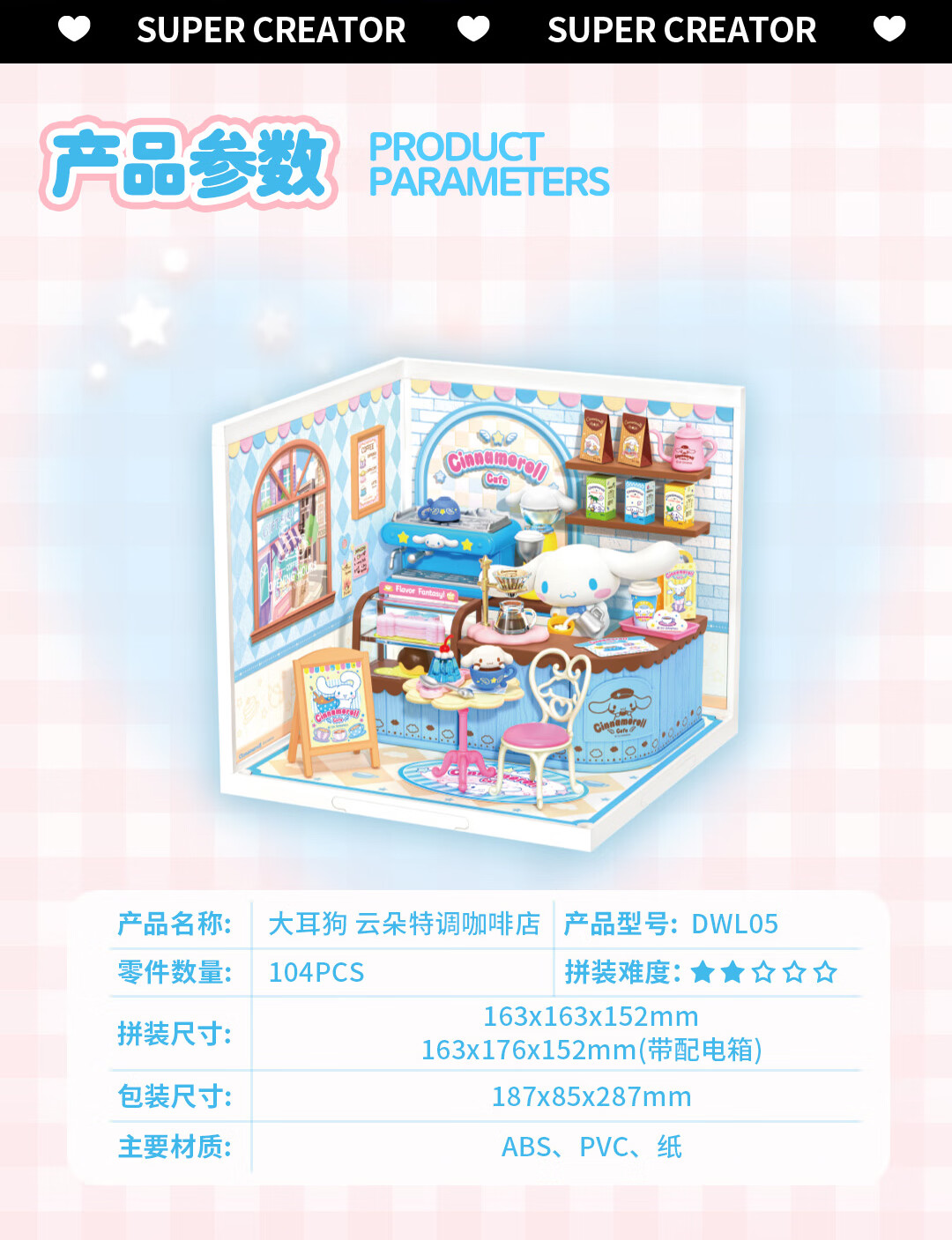 若来(Rolife)超级世界三丽鸥大耳狗咖啡diy手工小屋积木拼装玩具圣诞礼物女孩